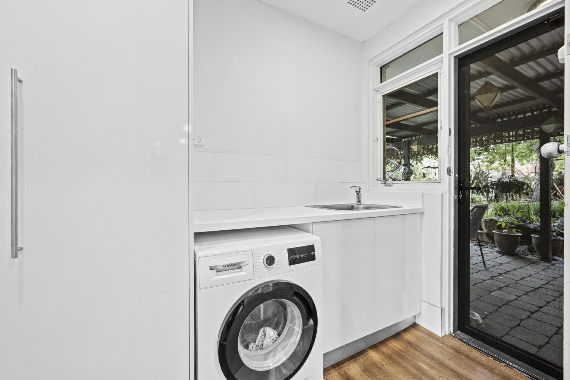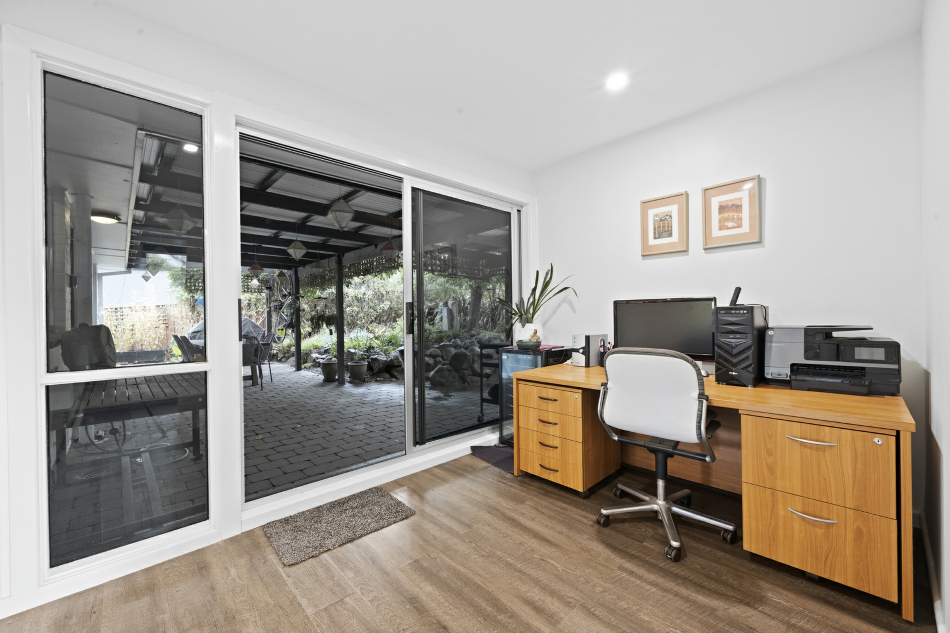 Outdoors is an entertaining oasis. A spacious, covered outdoor entertaining area is framed by beautiful, established yet easy care gardens, the perfect green backdrop for celebrations. Pathways lead you further into the garden, to flat grassed areas, another paved entertaining area and raised garden beds.