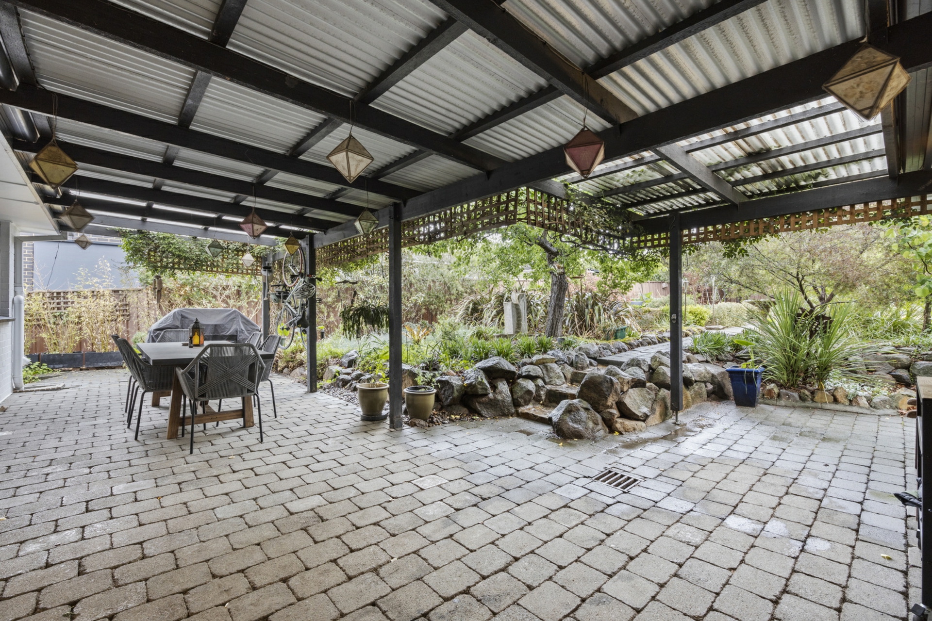 - Multiple outdoor entertaining areas amongst established gardens, grassed areas and raised garden beds