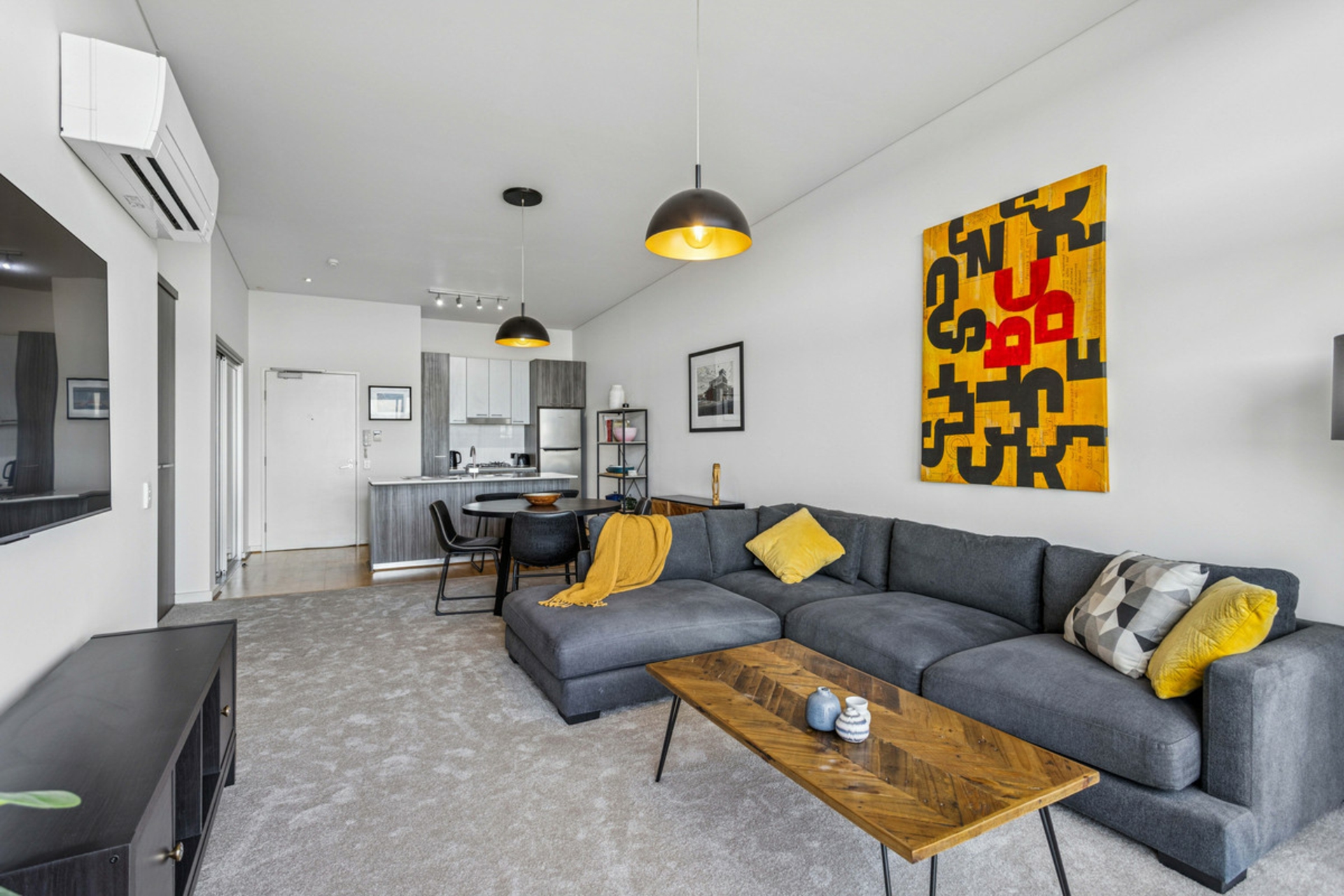The open-plan living space flows effortlessly to a private balcony, creating the perfect spot to unwind or entertain while taking in incredible views.