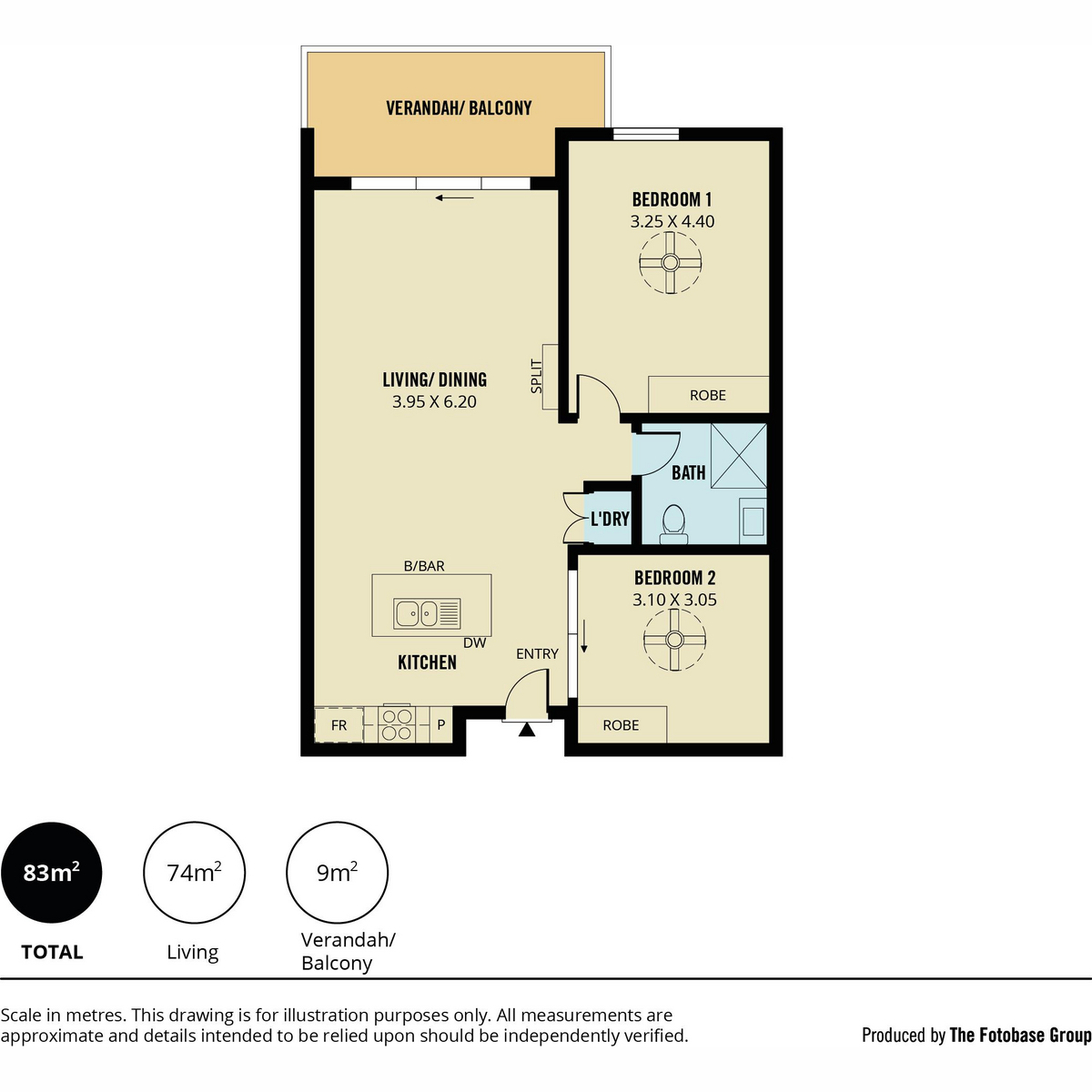 • Two bedrooms, both with built in wardrobes, master with ceiling fan