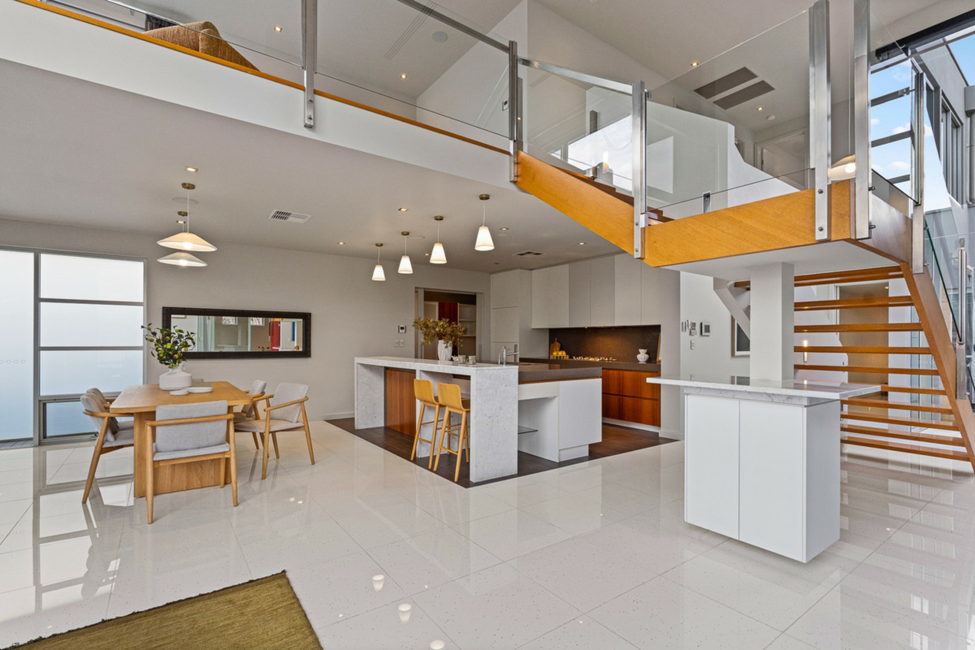 • Upper mezzanine entertaining also extends onto the balcony where you can enjoy a glass of wine or bubbles while soaking in the spectacular lake views and lights of Mawson Lakes by night