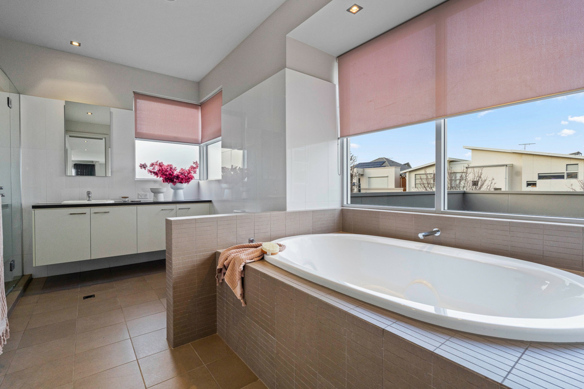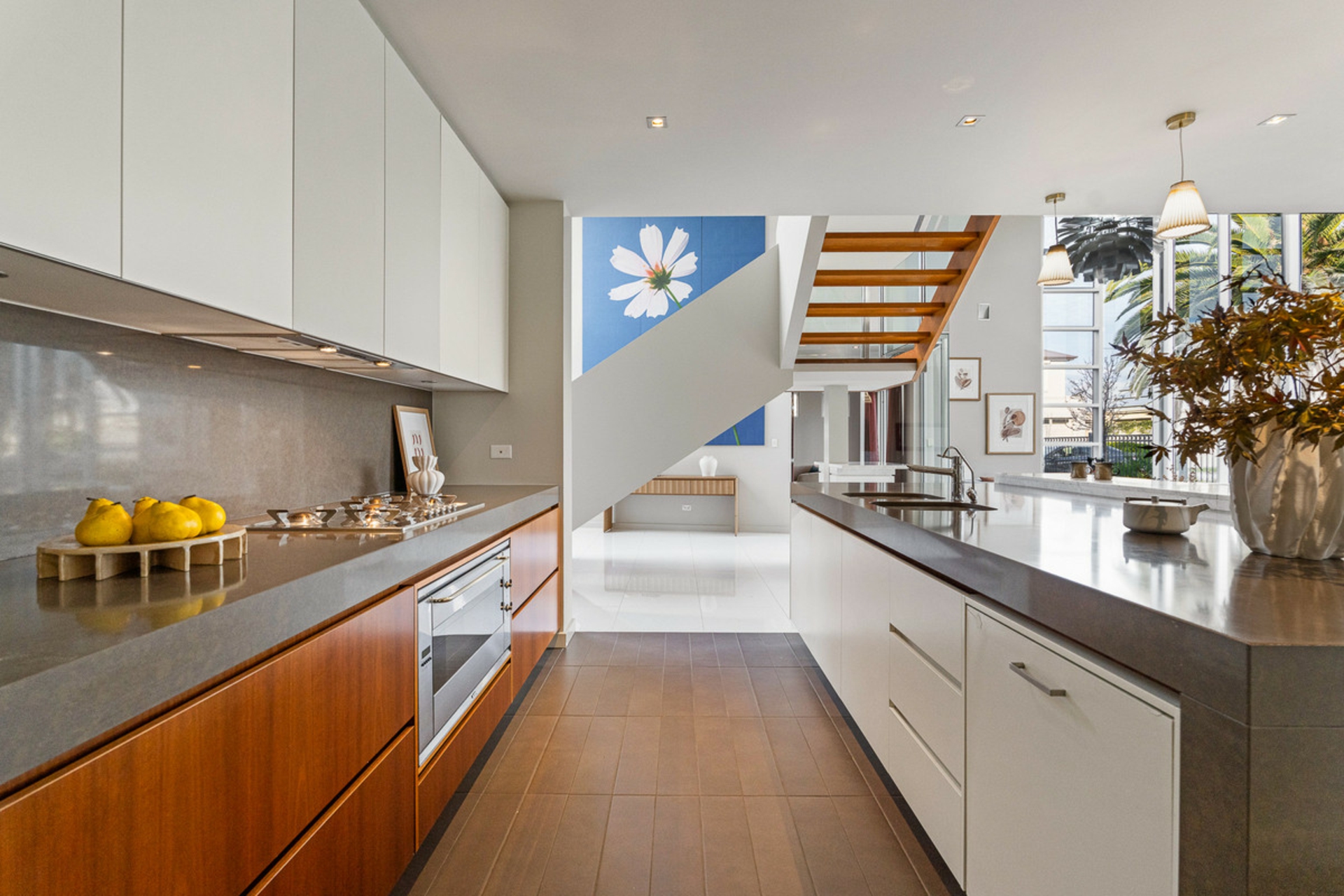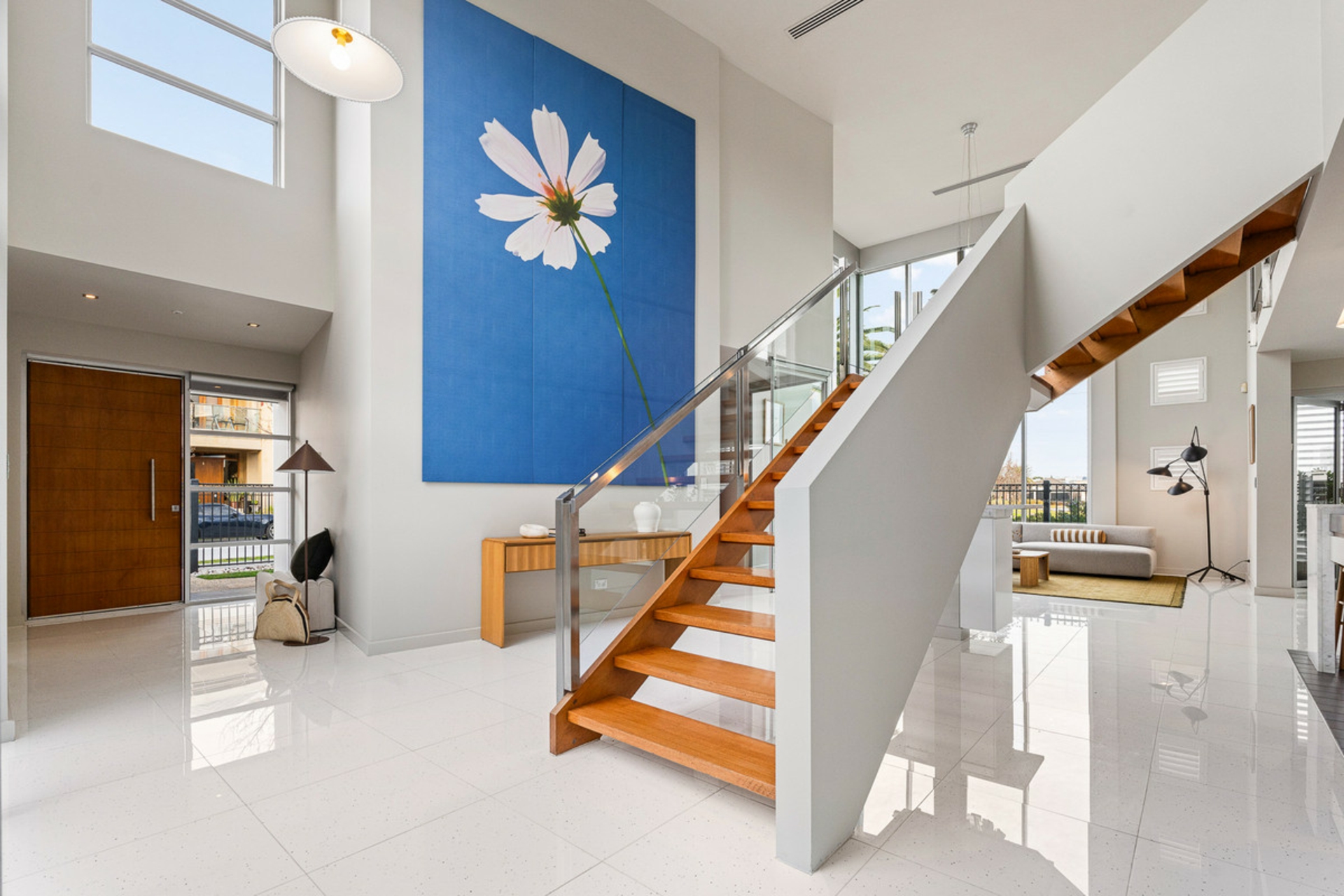 Natural light is in abundance thanks to the central internal courtyard, and double-height ceilings over the main living space. The central staircase links both open plan living rooms, and leads to two spacious double bedrooms upstairs, while the master bedroom is conveniently located on the ground floor with spacious walk-in robe and luxurious ensuite bathroom making this a home you can enjoy now and into the future.