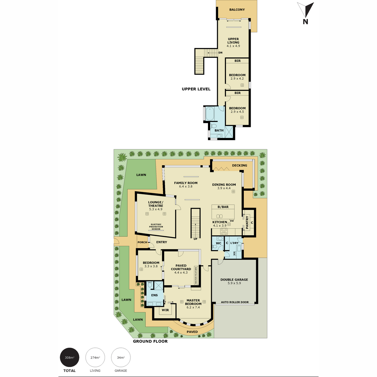 •Four bedrooms, master bedroom with walk in robe and luxurious ensuite overlooking the central courtyard
