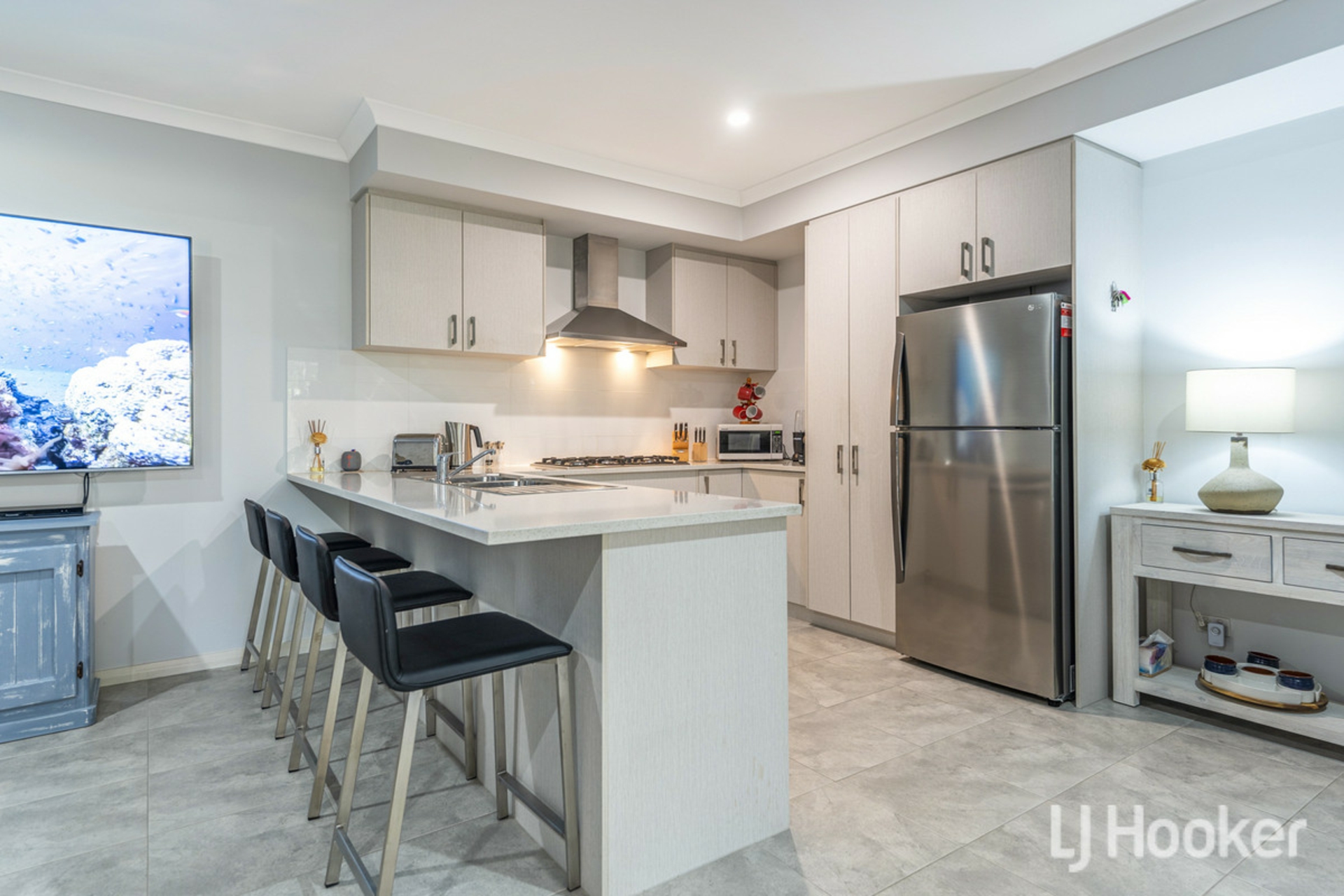 Boasting a modern kitchen with stone benchtops, big fridge cavity, dishwasher and double pantry, all open plan to living & dining areas with view of the golf course whilst you are cooking.