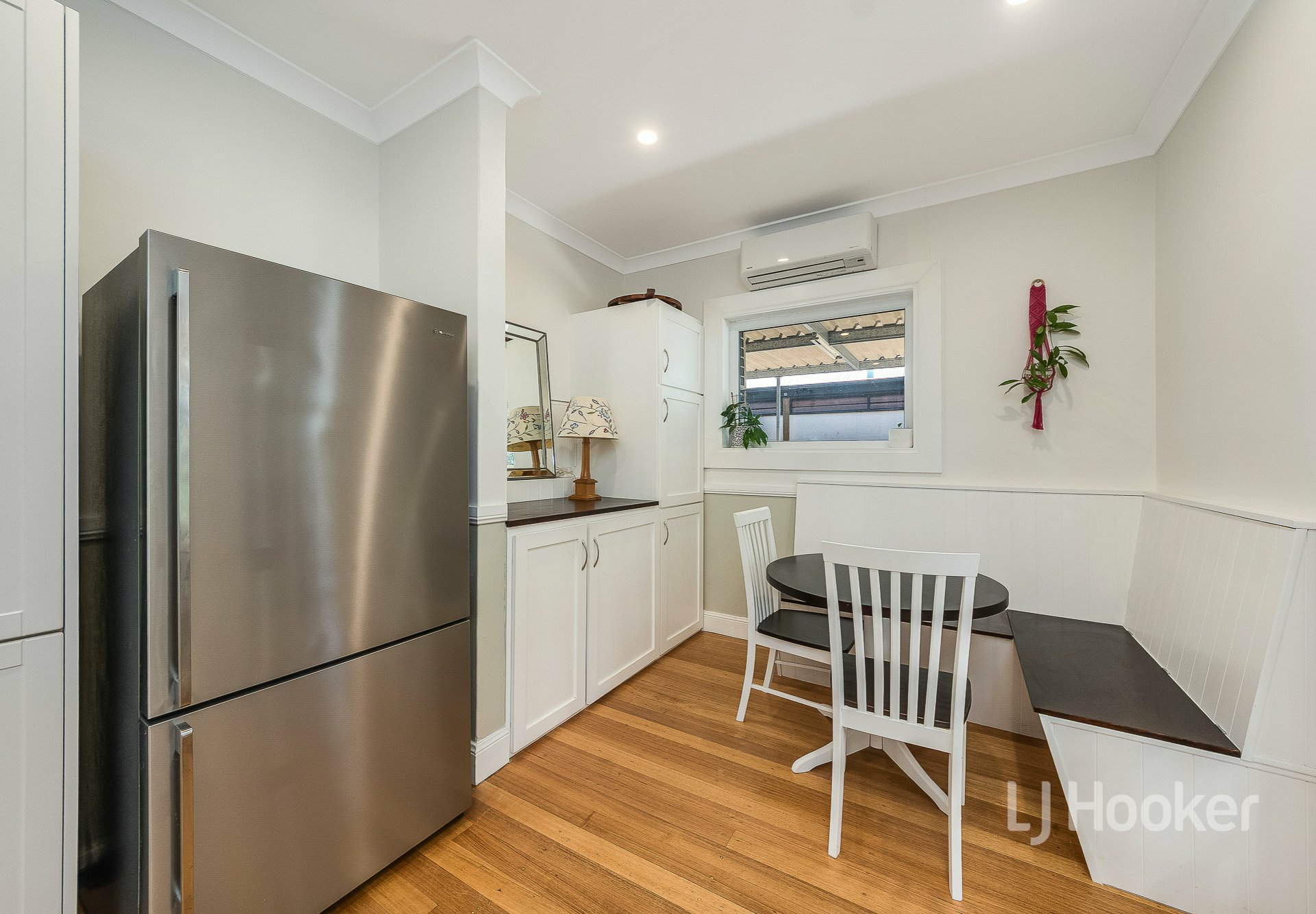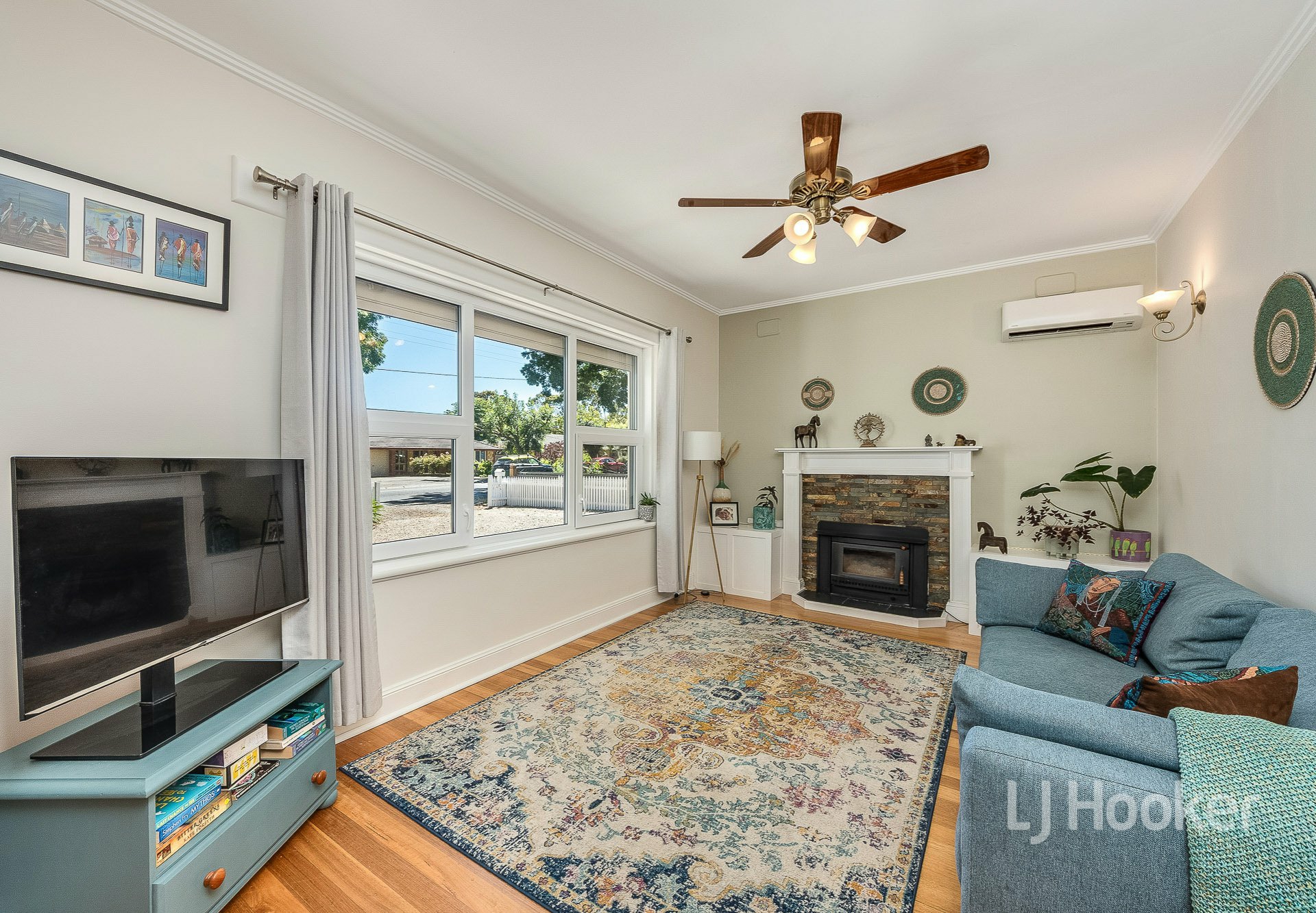 Upon entering the home, you're greeted with high ceilings and polished timber floors, flowing into the formal lounge. With a cosy combustion heater, double glazed windows and reverse cycle air-conditioner, this makes for the perfect all year-round living space, a quiet spot to watch the world go by.