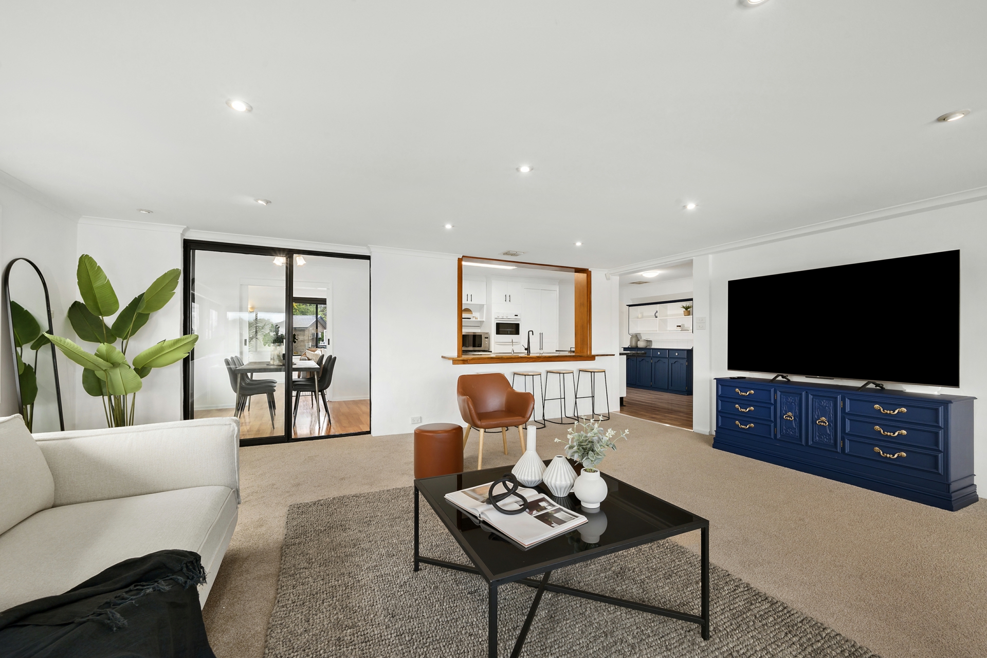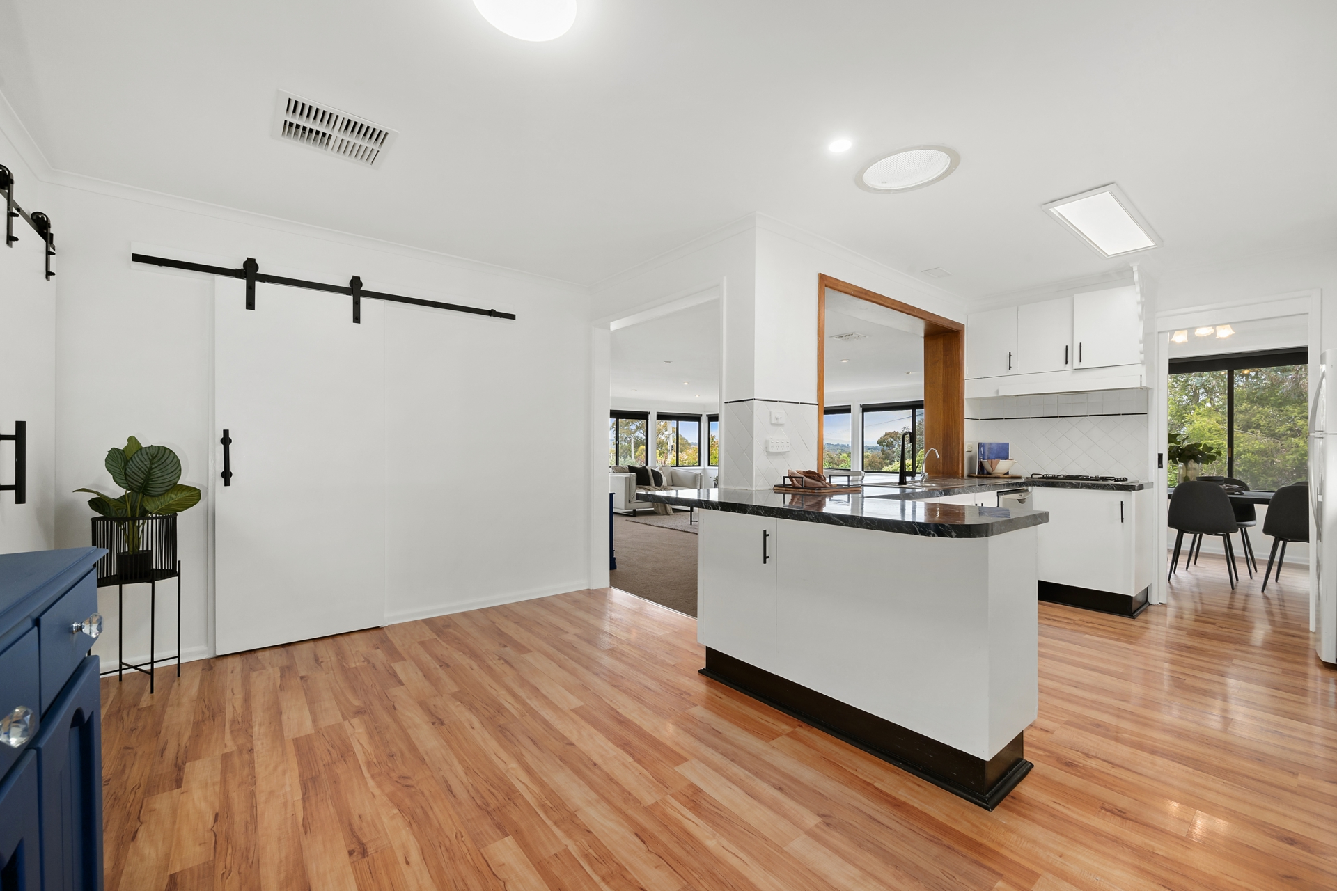 -Open plan kitchen and dining area