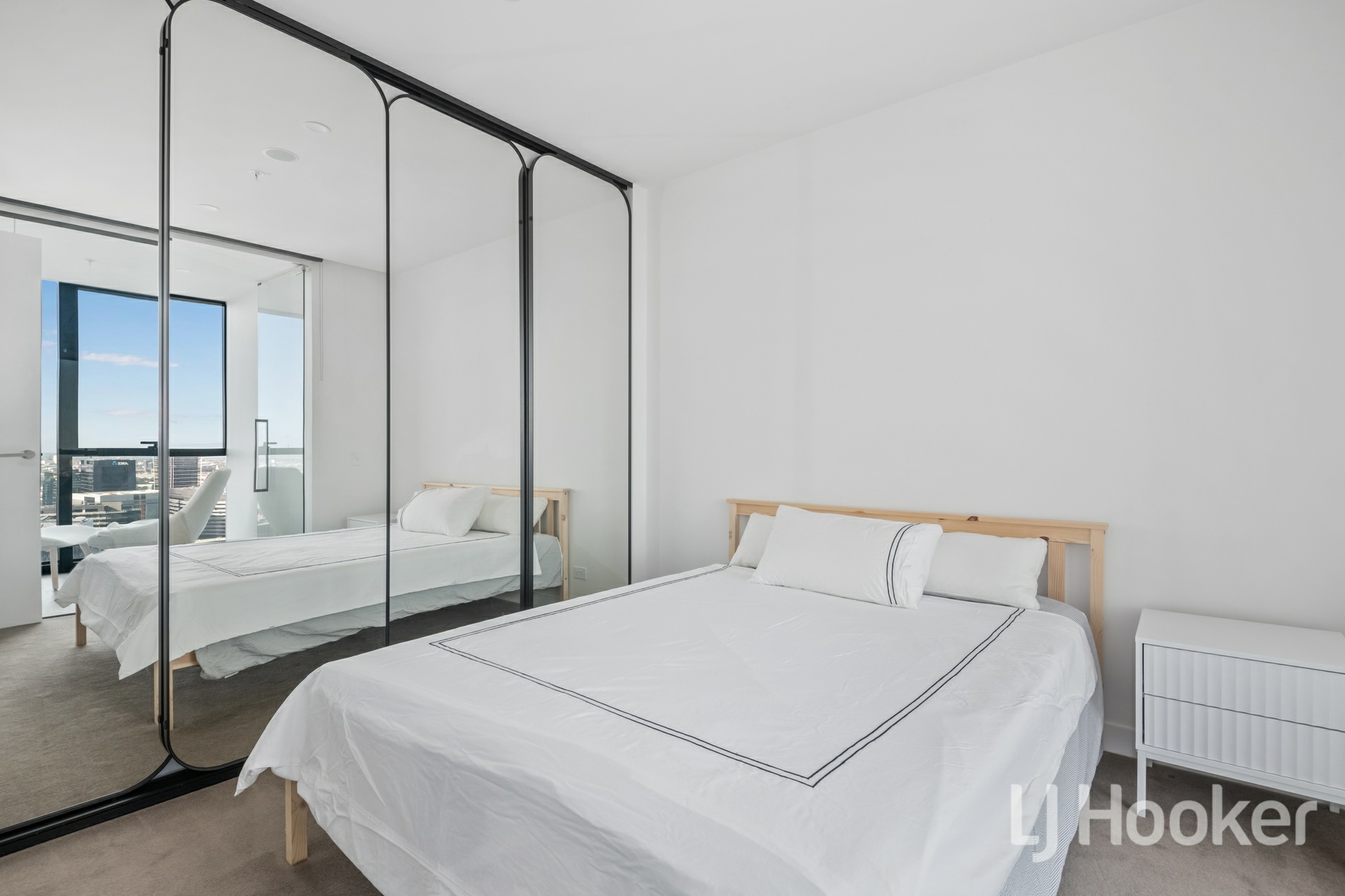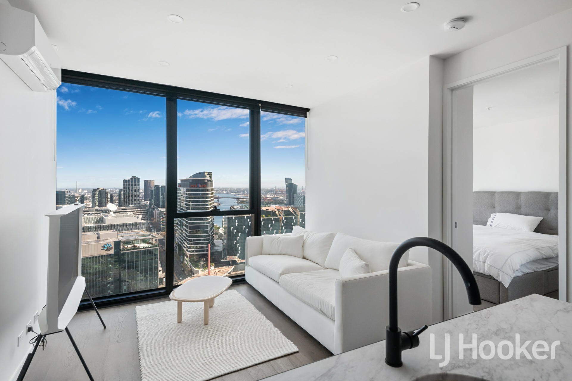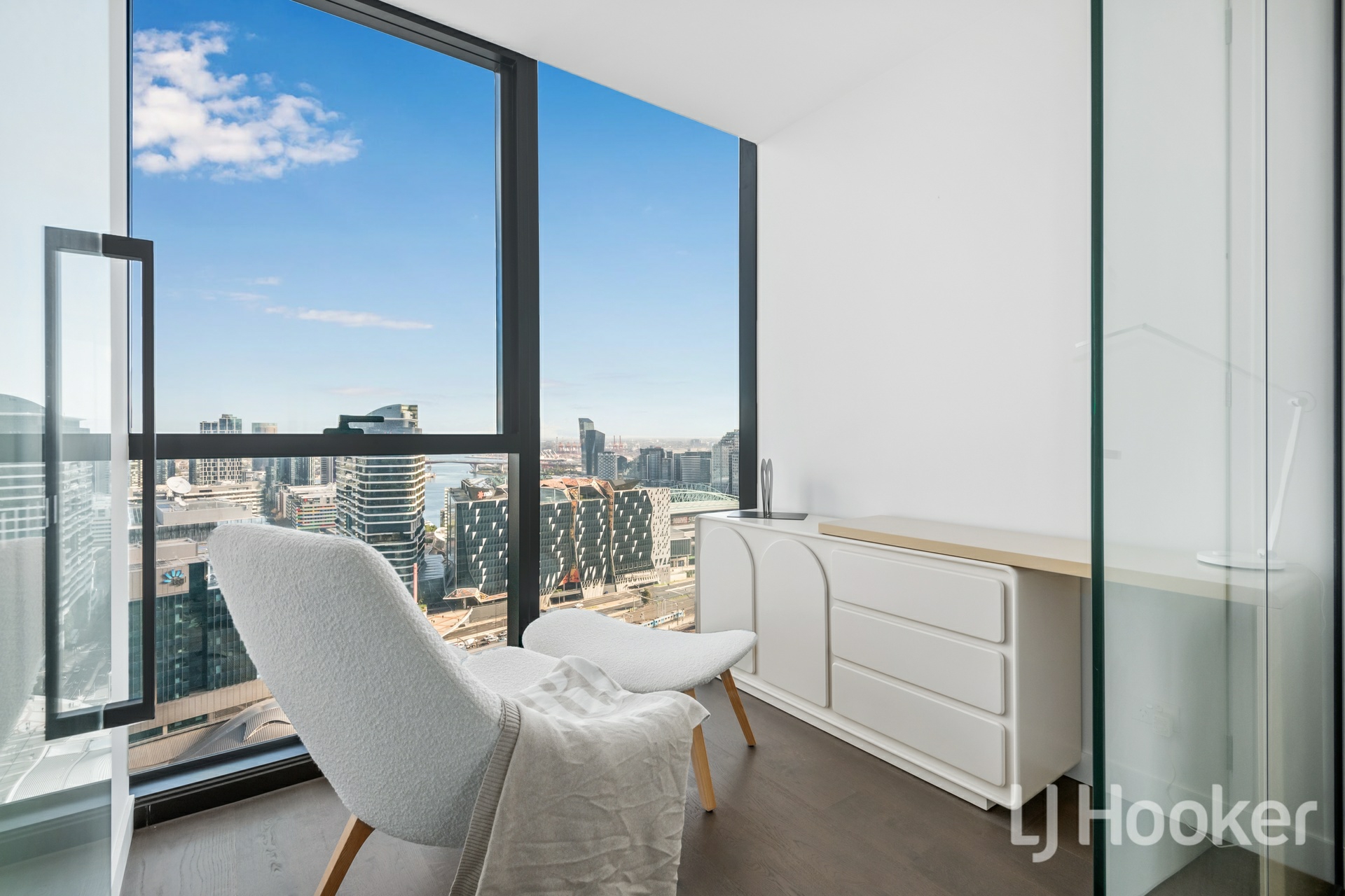 World-class luxury is effortlessly on show throughout this 'Premier Tower' apartment, soaring high on the 28th floor and embracing breathtaking views of the city and bay along with first-class finishes and resort-style building amenities. Capturing the beautiful curvature of the building's design, you'll experience a light-filled environment with floor-to-ceiling windows enhancing the apartment's ambiance and offering a wonderful highlight in the open-plan living and dining domain. A cutting-edge kitchen rests effortlessly alongside and is ready for your culinary creations, complete with waterfall stone benches, premium appliances including a dishwasher, concealed fridge space, and a breakfast bench. Carpet offers a comforting touch in the two bedrooms, each with mirrored built-in robes, and one accompanied by a large study area where you can soak up the views while working from home. Designer details and contemporary black accents enhance the bathroom featuring a rainfall effect shower and in-wall cistern toilet, supplemented by a Euro laundry, split system heating/air conditioning, and video intercom entry. Adding a resort-style ambiance, the apartment is topped off by the building amenities, including a ground floor residents' lounge, pool, spa, sauna, steam room, gym, 12-person cinema, games room, training and yoga studio, BBQ entertaining deck with CBD views, and private kitchen, dining, and lounge areas. Stepping outside, you'll find yourself across from Southern Cross Station, a short walk from Marvel Stadium, Docklands Promenade, Flagstaff Gardens, Bourke St Mall, Melbourne Central, restaurants, and Queen Victoria Market.