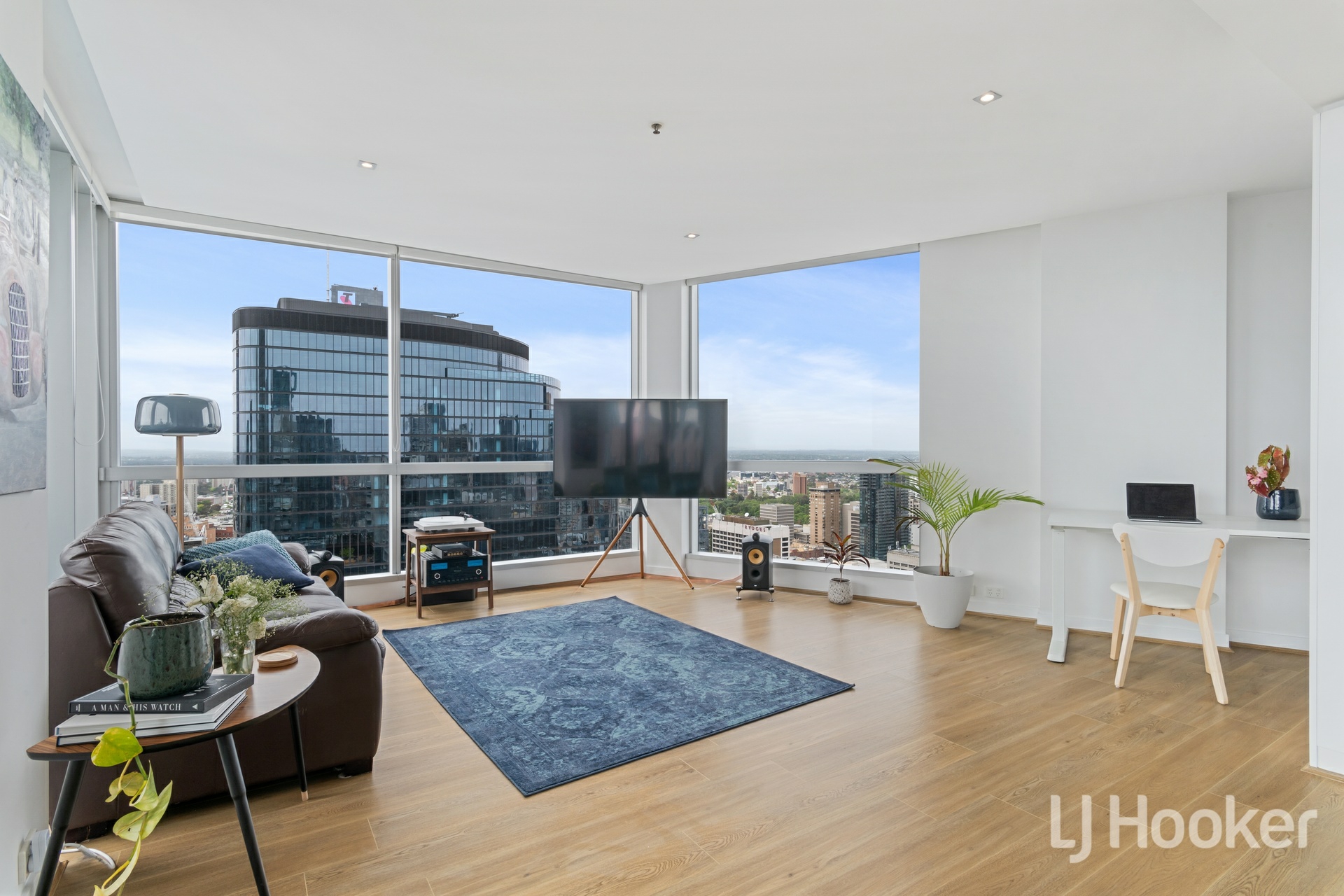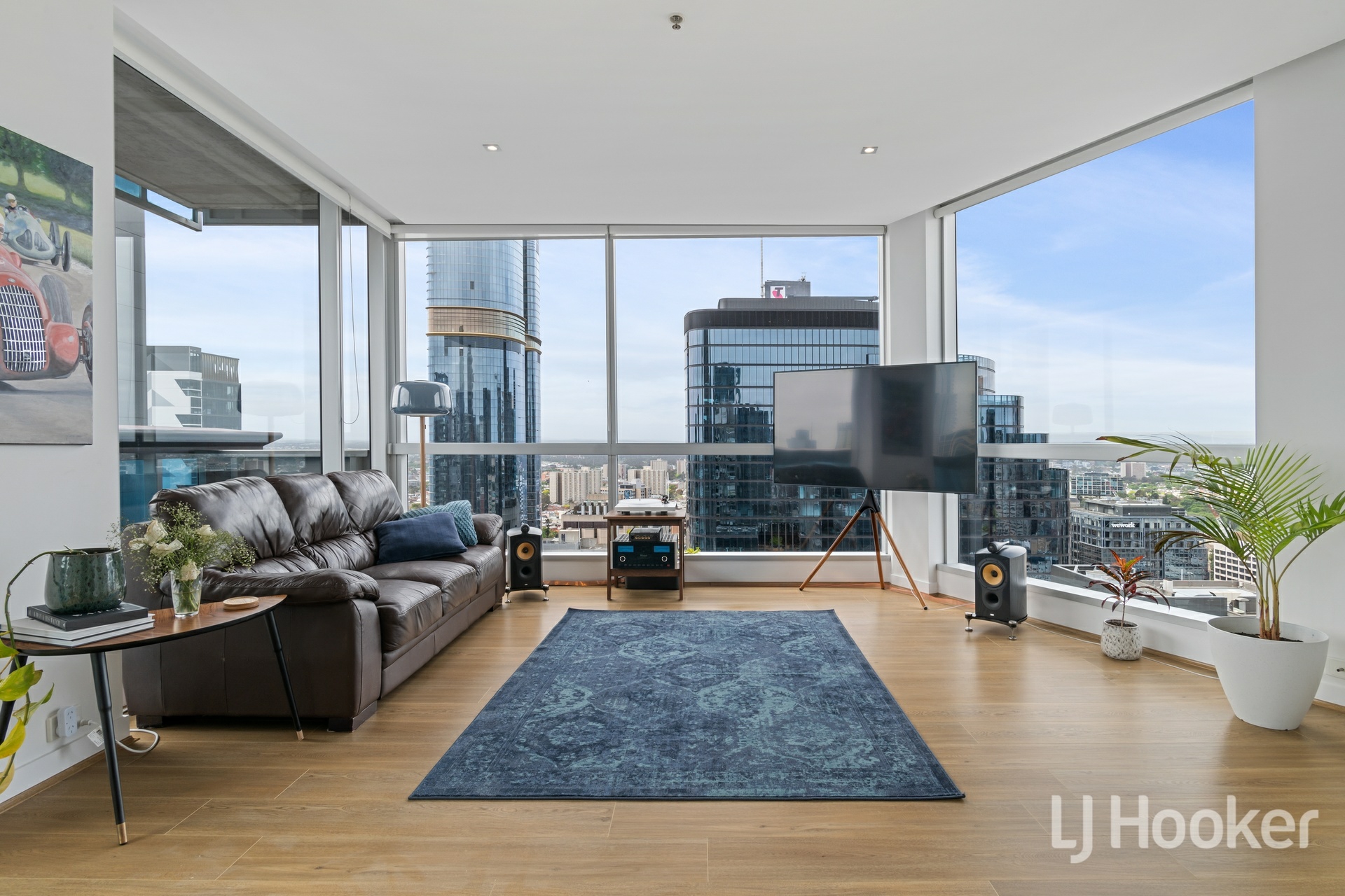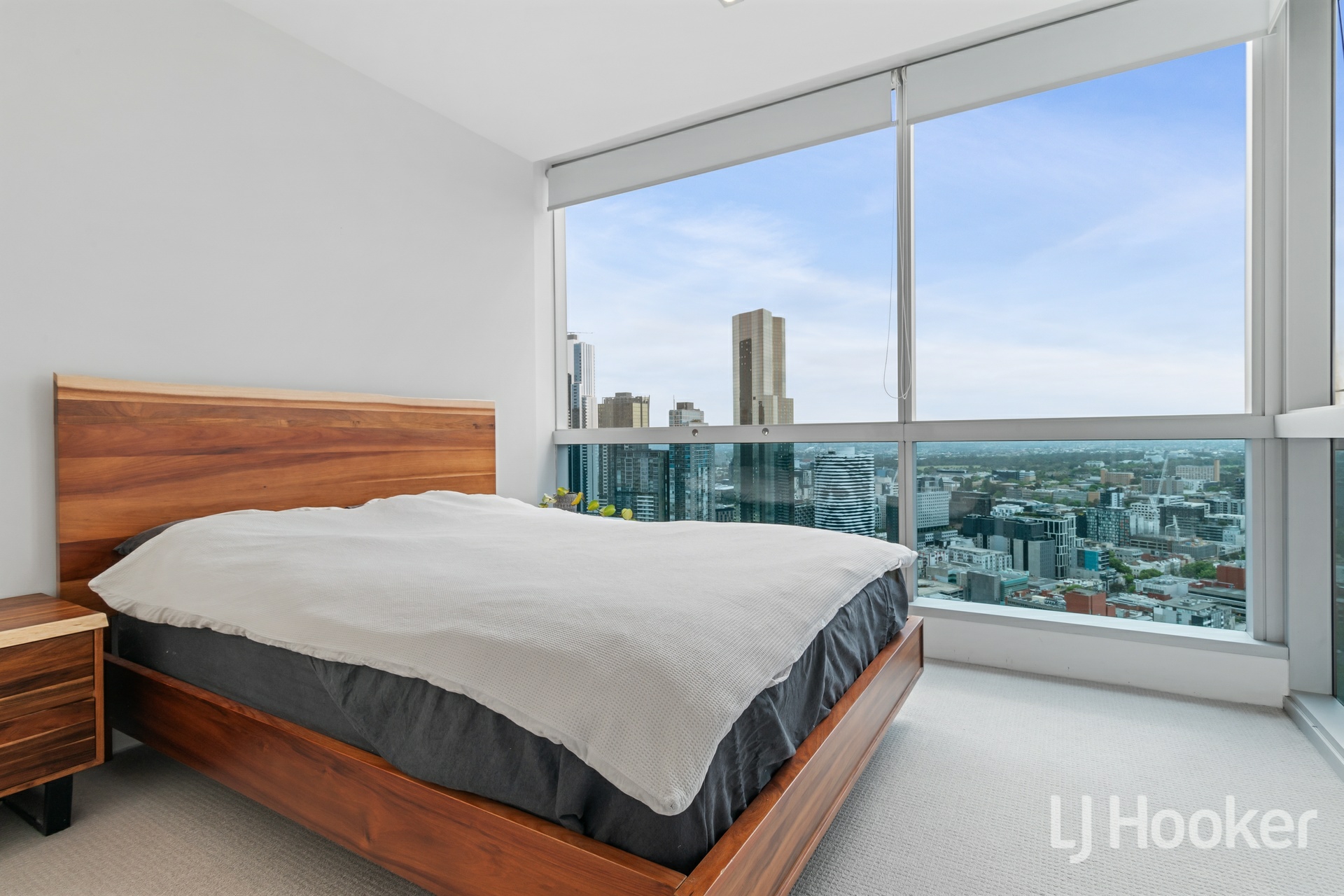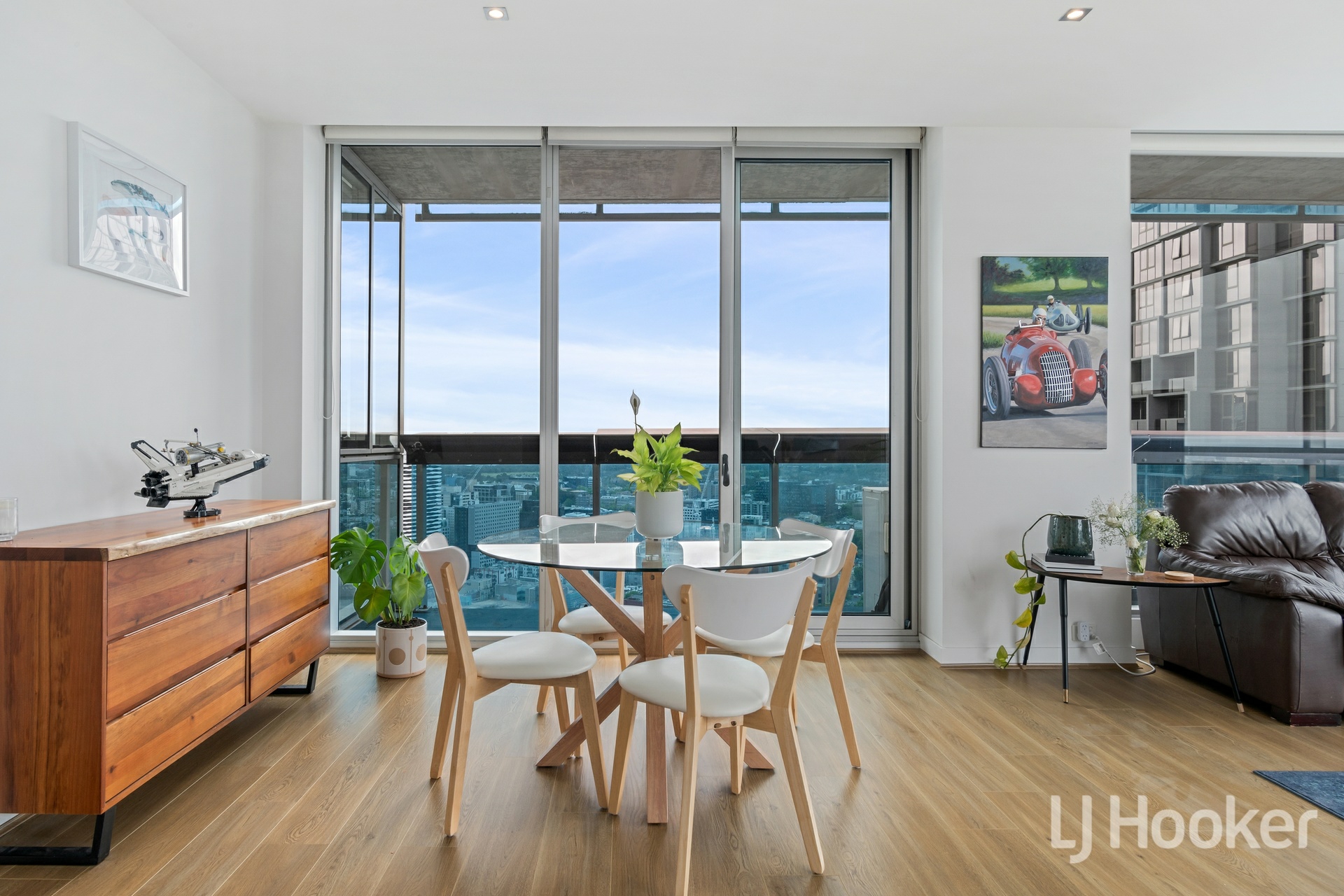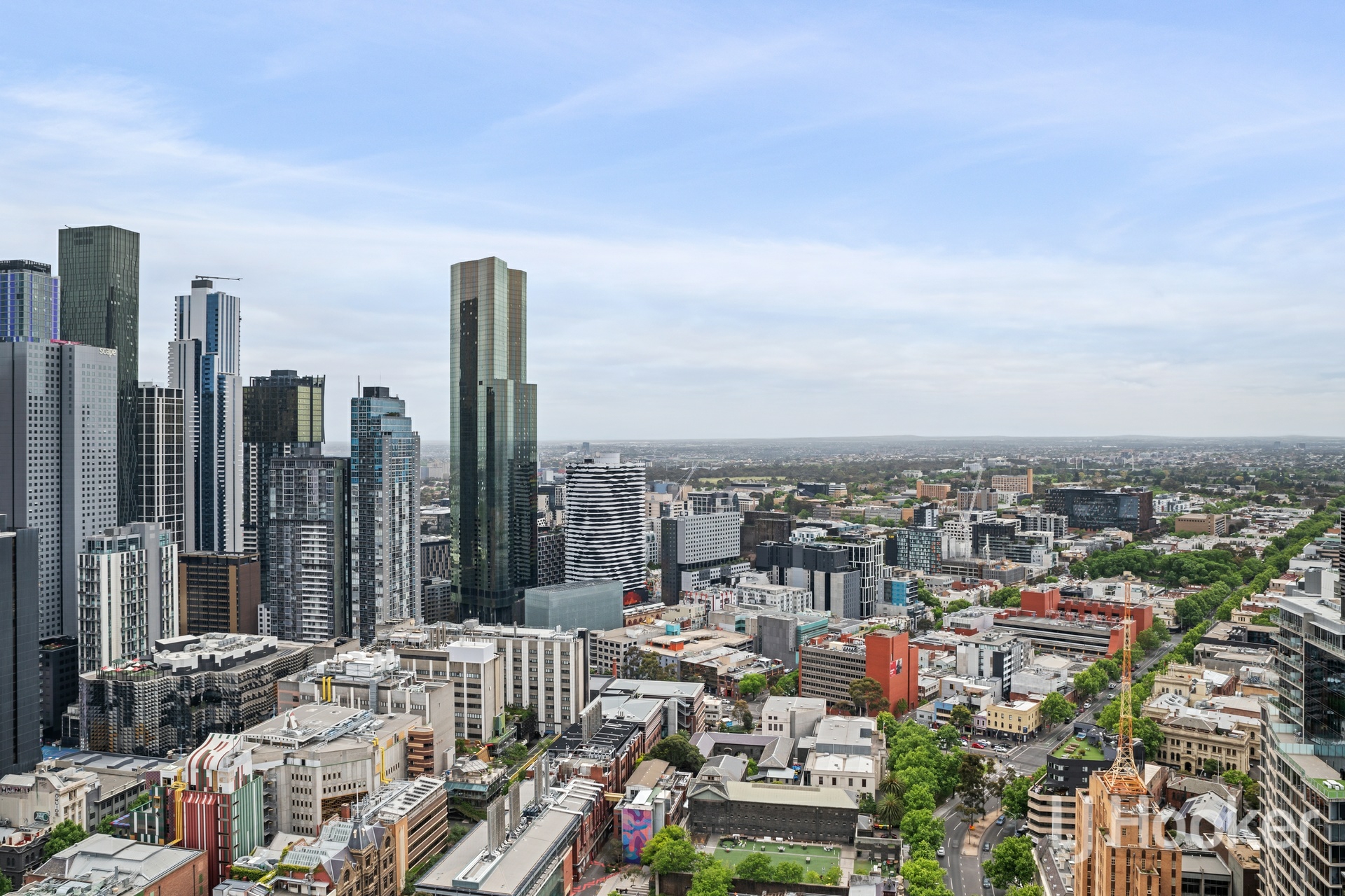 A breathtaking illustration of sky-high luxury, this stunning 2 bedroom sub-penthouse apartment captures an awe-inspiring 270 degree panorama sweeping across magnificent Melbourne. Positioned to perfection 43 floors high in a commanding corner setting, explore your central city neighbourhood with an effortless stroll to four levels of Queen Victoria Square shopping, Melbourne Central rail and retail, RMIT, Chinatown restaurants and so much more! Encased in floor-to-ceiling glass, spacious open-plan living and dining enjoys a lavish feeling of lightness, space and depth while also revealing stunning vistas to the north, east and south touching on the city skyline, the Royal Botanic Gardens, the Shrine of Remembrance and the blue-water beauty of Port Phillip Bay. The luxury living extends outdoors on an undercover north-facing balcony effortlessly attracting the all-day warmth of northern sunlight. This is where the home truly comes to life with the opportunity to relax beside a cafe-style bench overlooking the neighbourhood with uninterrupted views towards the Great Dividing Range. Always well-appointed and freshly painted throughout, a marble-finished kitchen boasts a breakfast bar and stainless-steel Blanco appliances plus a dishwasher. Both robed bedrooms are generously sized and naturally lit, serviced by a fully tiled bathroom with marble detailing. Exemplary special features include a handy study nook with a stunning outlook, an inviting hallway entrance, a large concealed laundry with a trough and shelving, sleek new floorboards, ducted heating and cooling throughout, roller blinds, recessed down-lighting, video intercom, reinforced storage cage and secure car parking. Residents of the QV1 building are graced with resort-style access to a pool and top-floor gym. • Photo identification will be required upon entering the property. Please contact our agent for your personal tour of this home today.