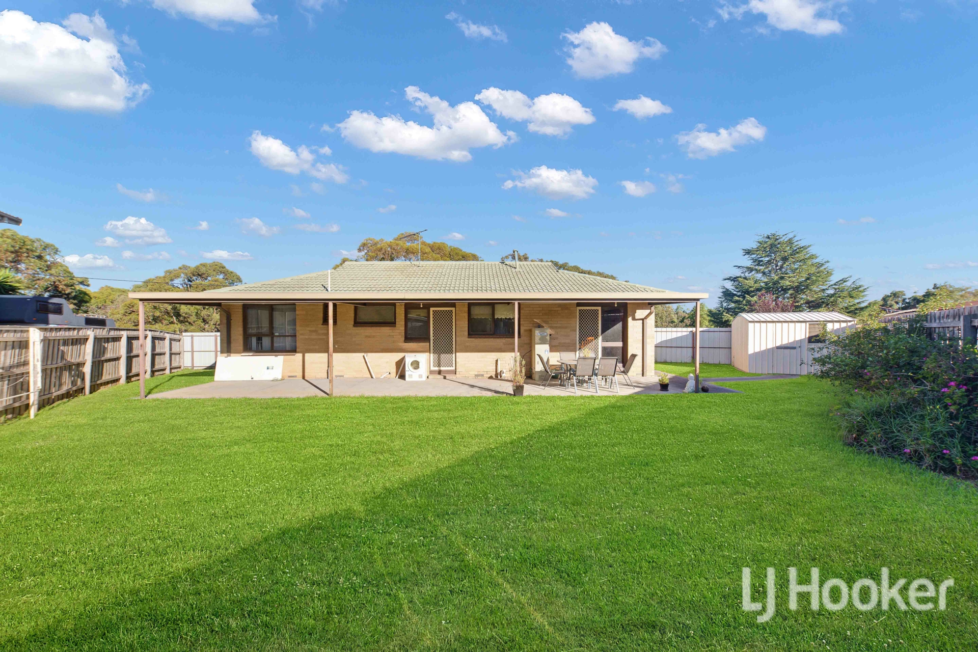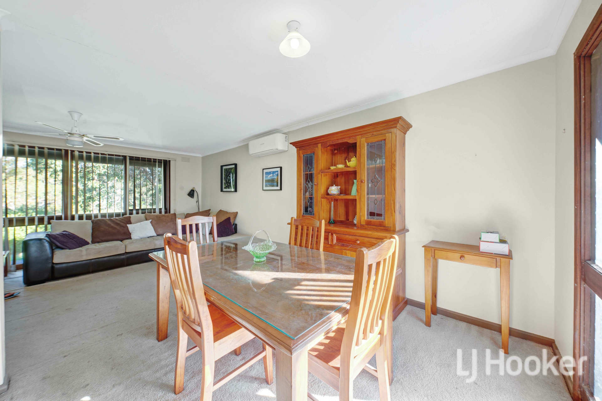 The home comprises three well-sized bedrooms, serviced by a central bathroom. Inside, a light-filled living area flows into the adjoining dining space, creating a functional hub for everyday living.