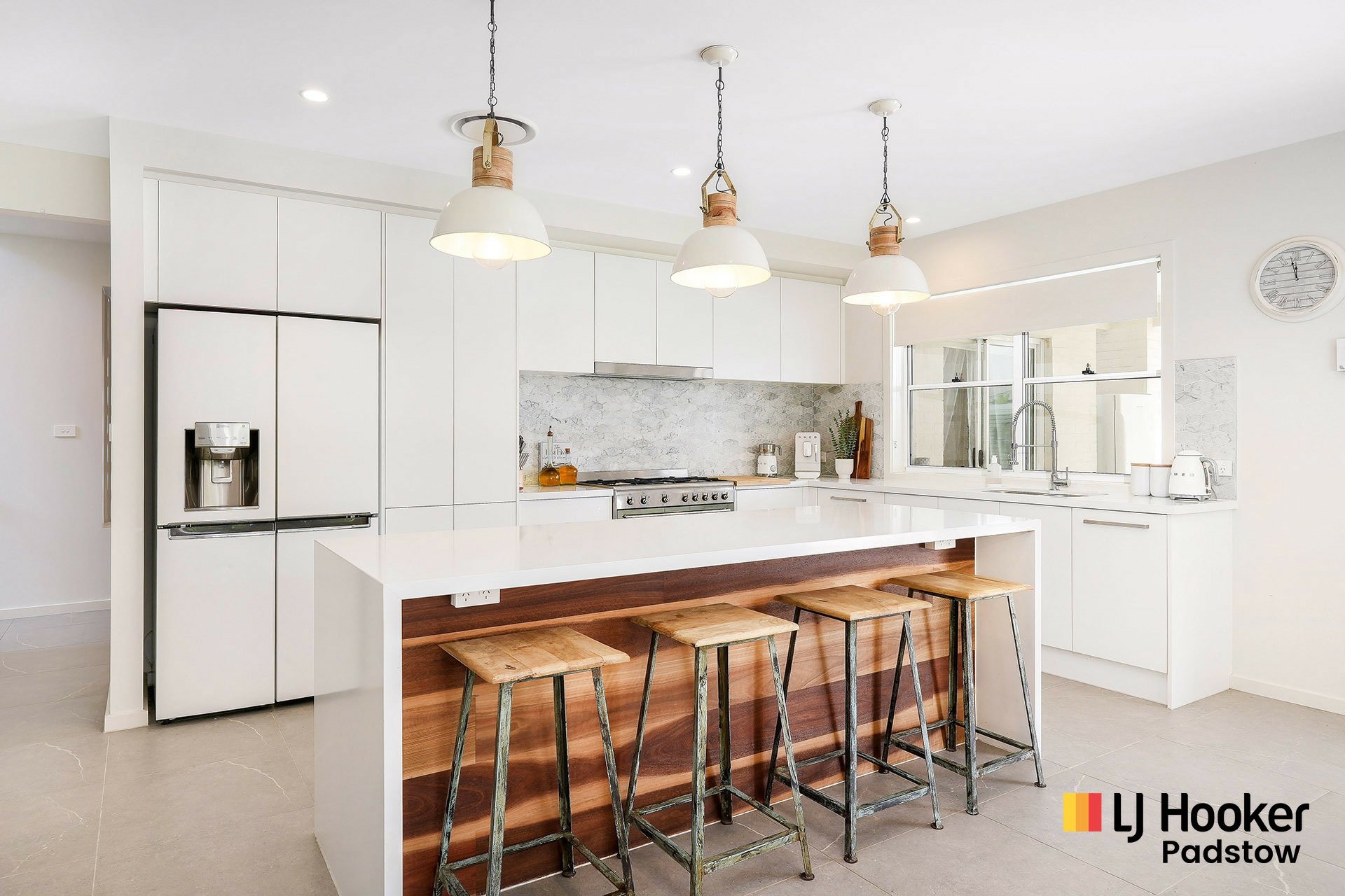 - Kitchen with Smeg appliances, gas cooking and breakfast bar w/ servery windows