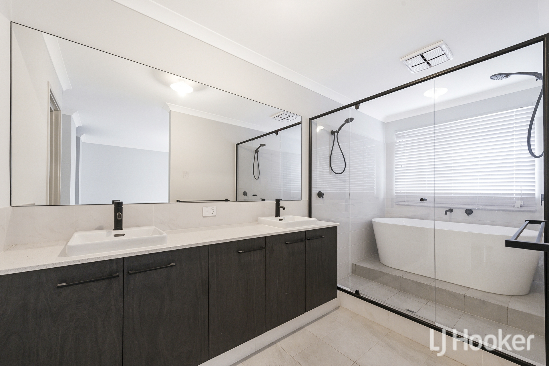Further along the hallway, a huge walk in linen press offers exceptional storage. The master suite is truly impressive expansive enough to accommodate two large beds, complemented by a generous walk in robe and a luxurious ensuite. Here you'll find a stone topped vanity with abundant cabinetry, twin sinks, twin showers behind a glass panel, a second bathtub and a separate WC.