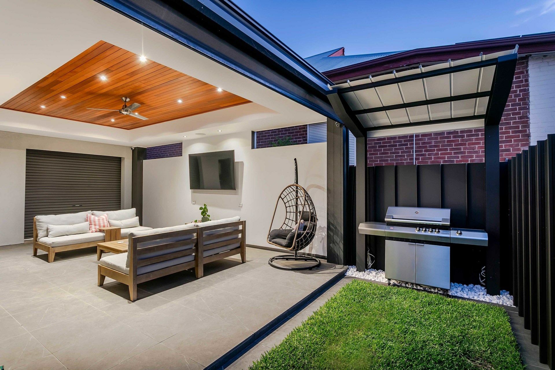 - Entertainer's alfresco with ceiling fan, Bose speakers & café blinds