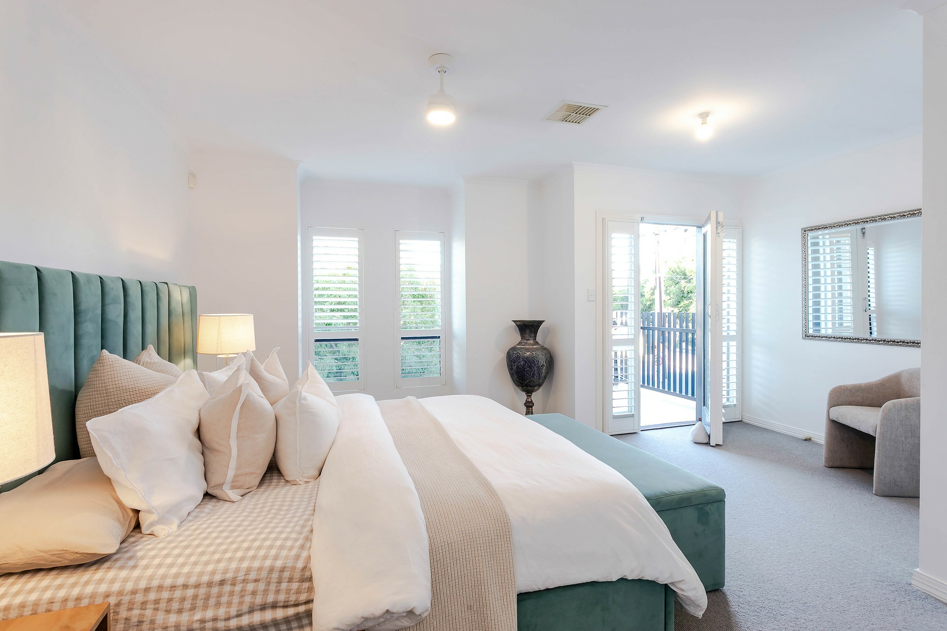 - Master suite with walk-in robe, ensuite & private balcony with built-in bench