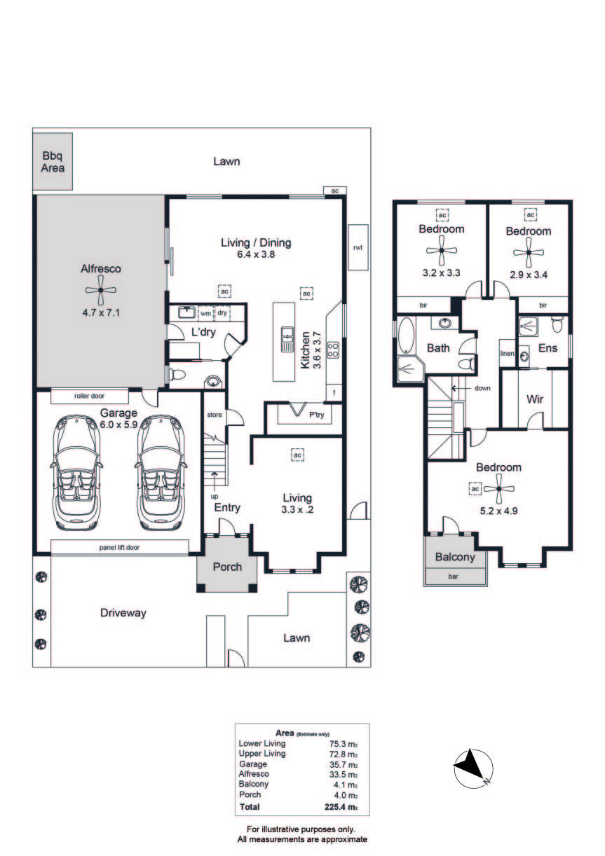 - Front and rear lawn areas