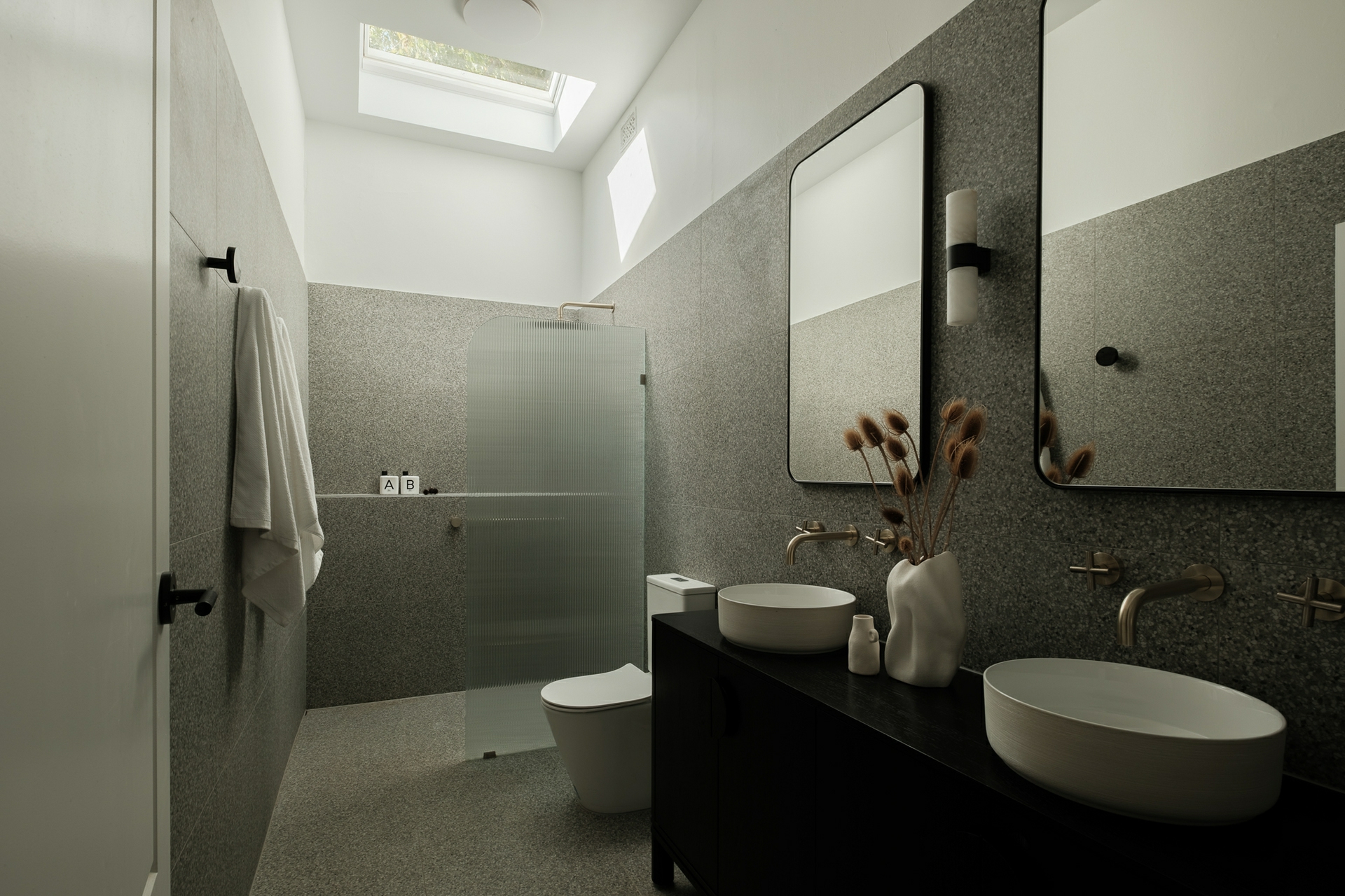Inside, the flexible floorplan offers four bedrooms or three with a formal lounge, catering to a variety of lifestyles. Natural light fills the home, with skylights enhancing both bathrooms and adding to the sense of openness and calm. Every detail has been carefully curated, from elegant cabinetry to the seamless integration of heritage elements with minimalist modern finishes.