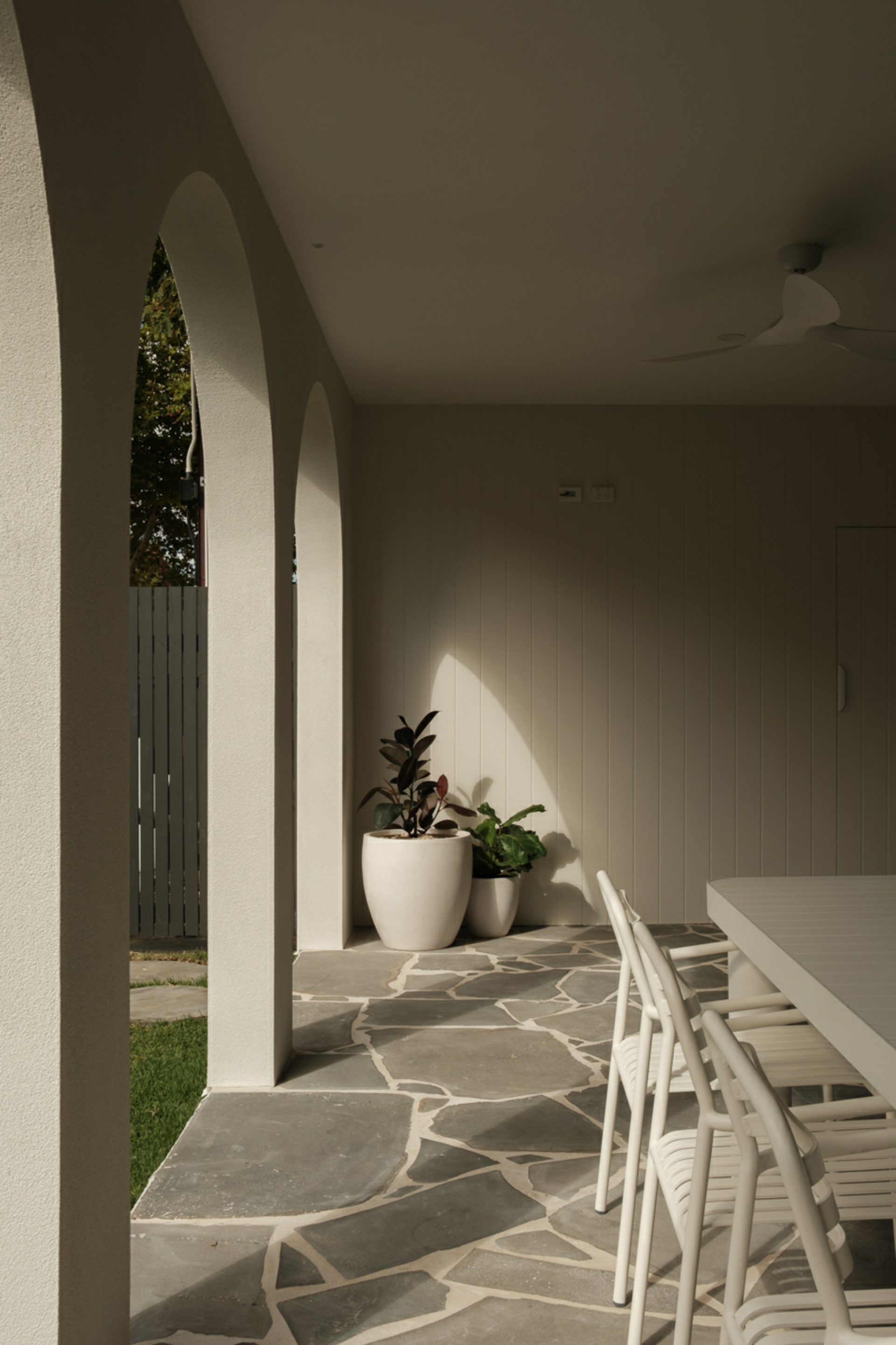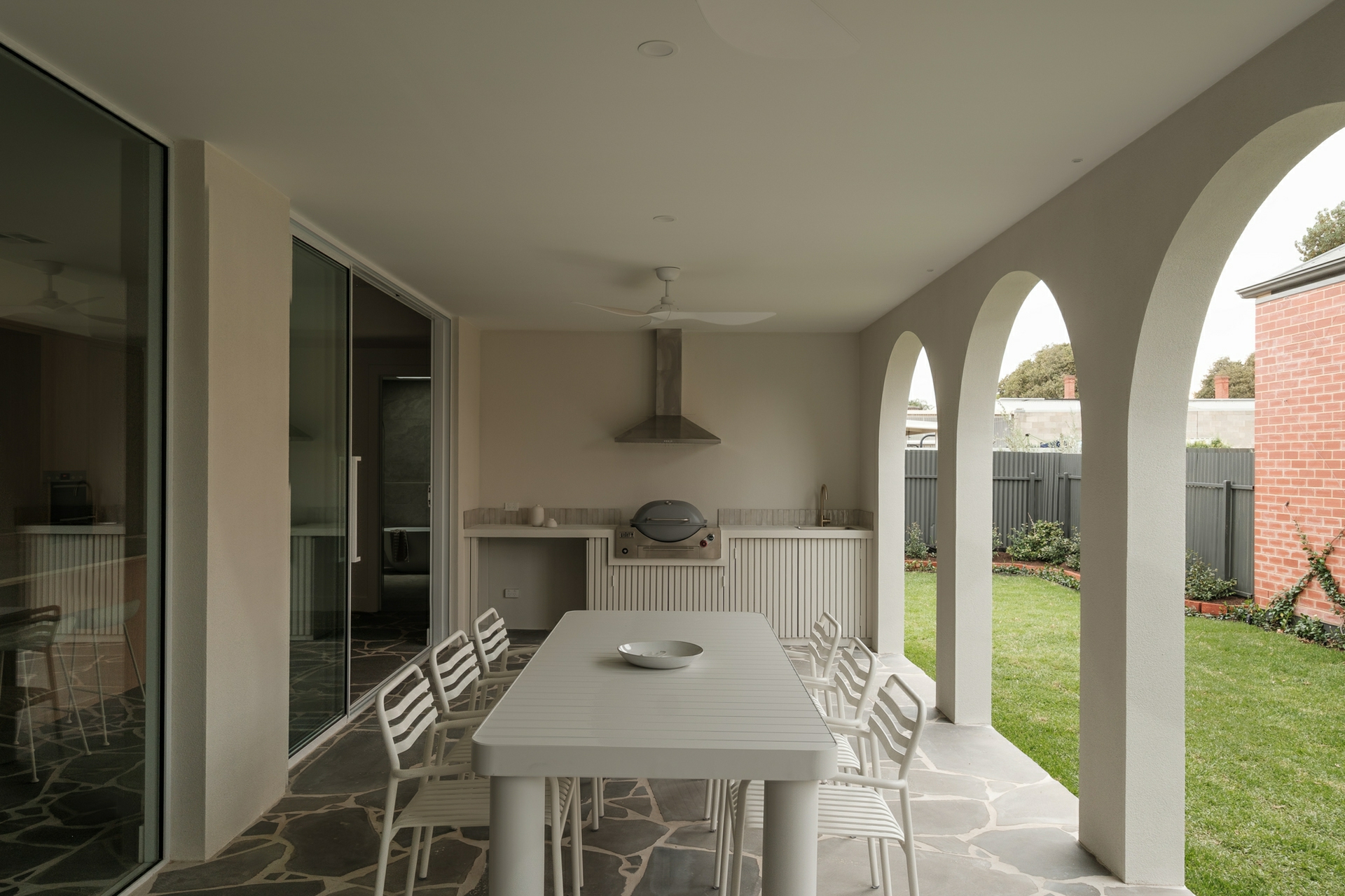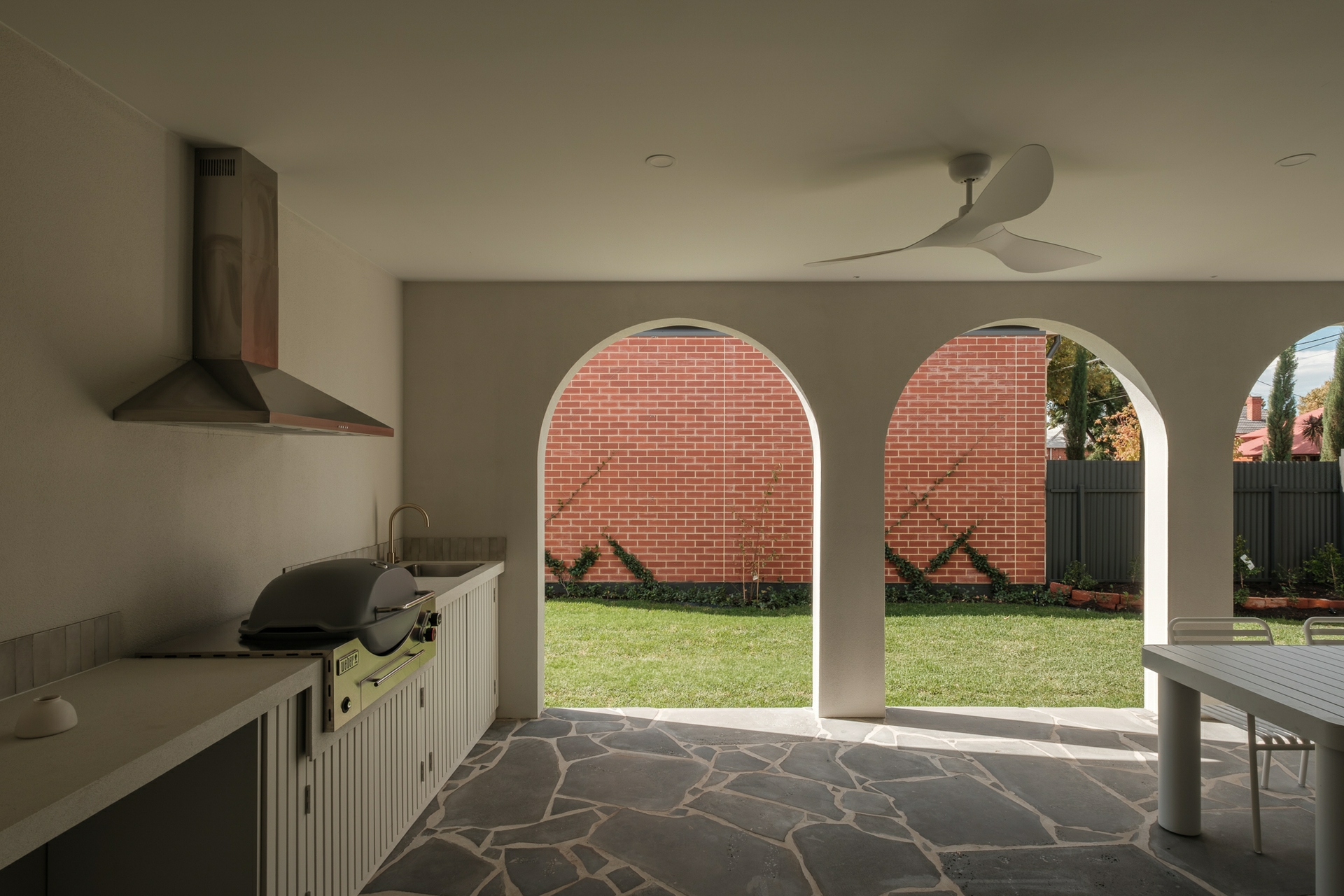 Behind its charming bluestone shopfront and distinctive red brick quoins lies a home of undeniable character. Elegant archways, both original and newly introduced in the Mediterranean-inspired alfresco, create a cohesive dialogue between old and new, celebrating the home's history while elevating its liveability.