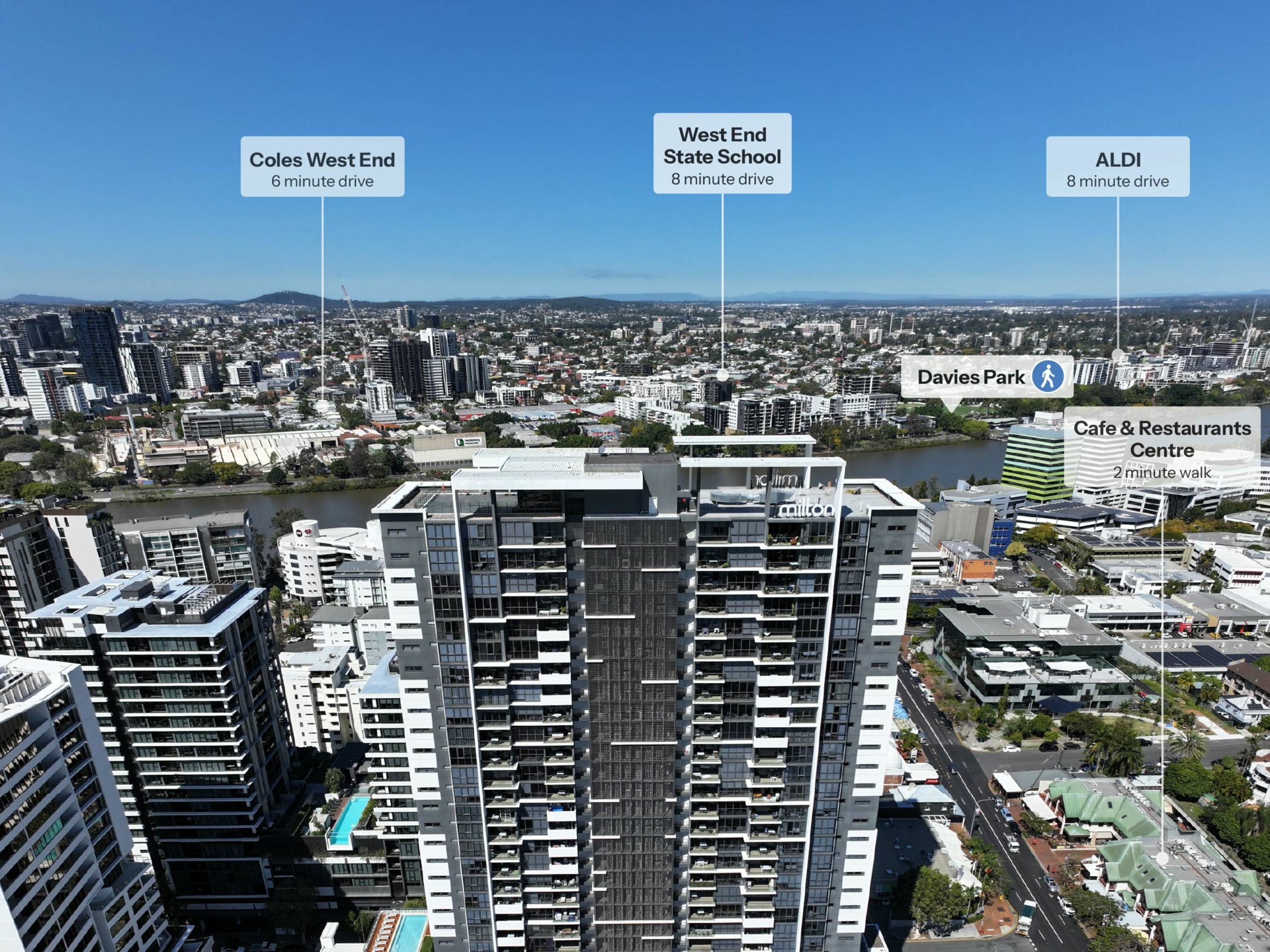 With its walk-everywhere location and luxurious resort-level on-site amenities - the star of which has to the spectacular Level 31 Sky Terrace, from which you are rewarded with 360-degree views over the city and river - The Milton is a highly desirable apartment complex.