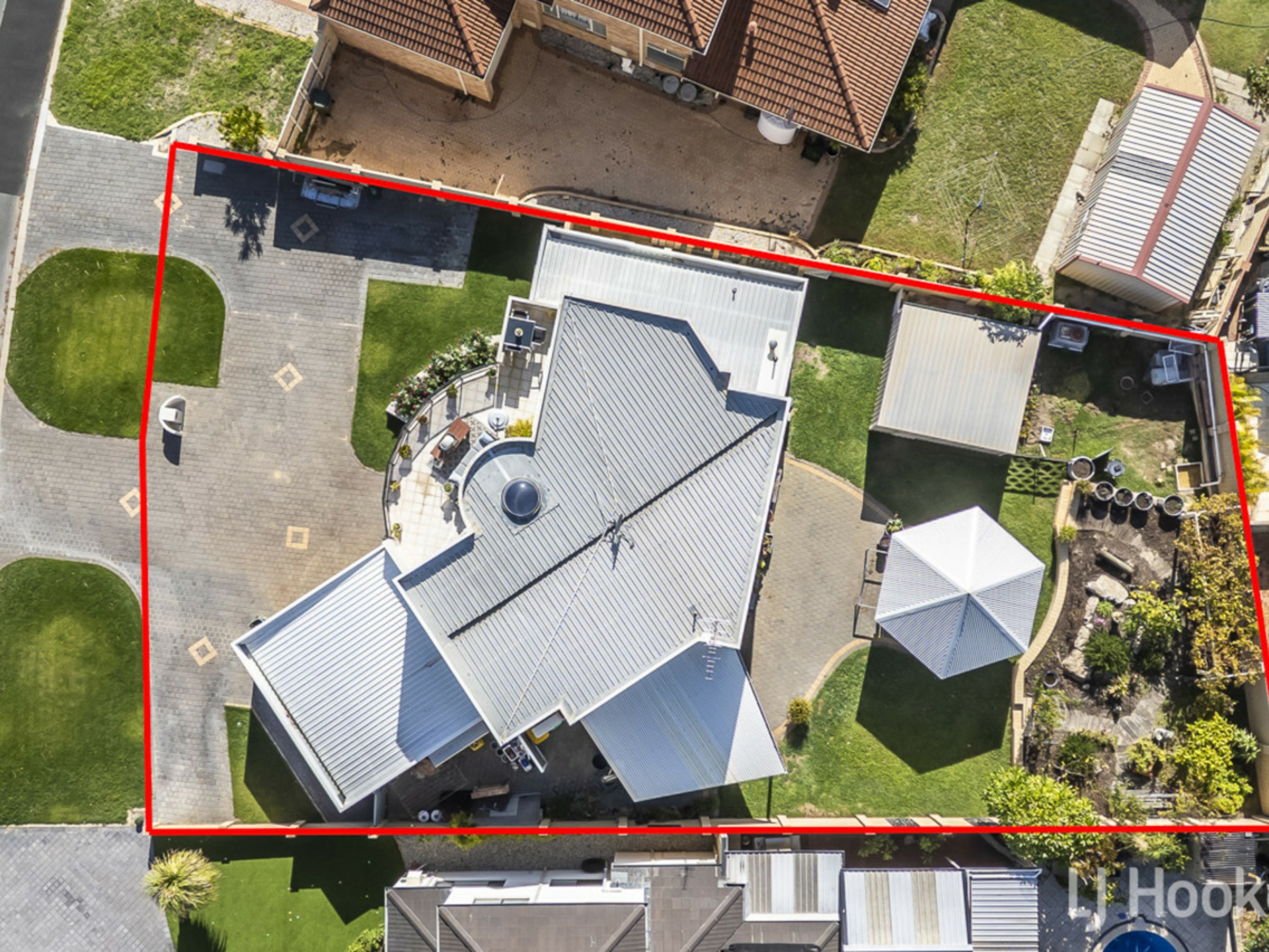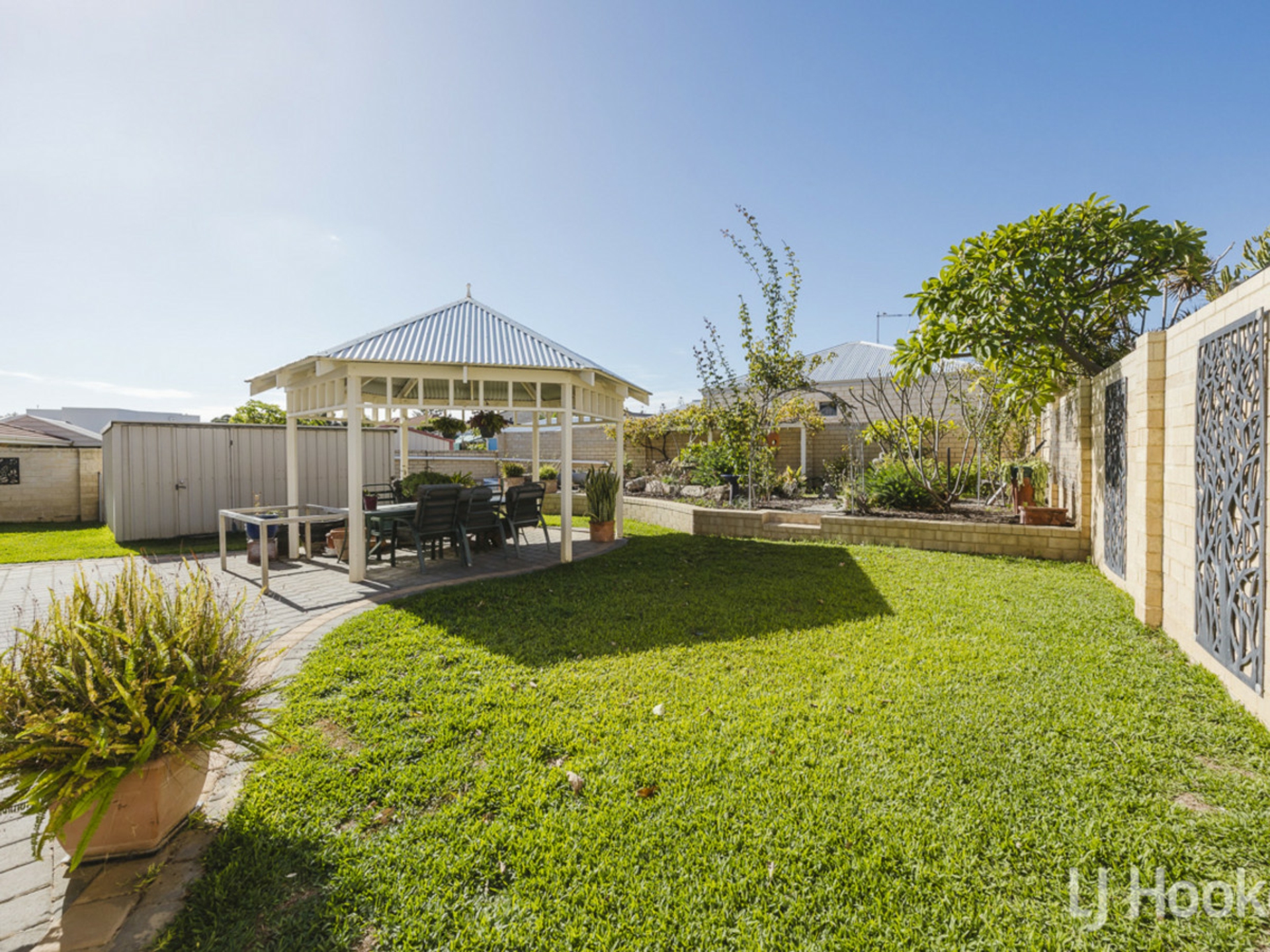 DOWNSTAIRS Master suite with walk in robe and ensuite, shower & bath, three further bedrooms which share the family bathroom, laundry and access out to the beautiful established gardens, entertaining area and gazebo, with room for a pool (STSA).