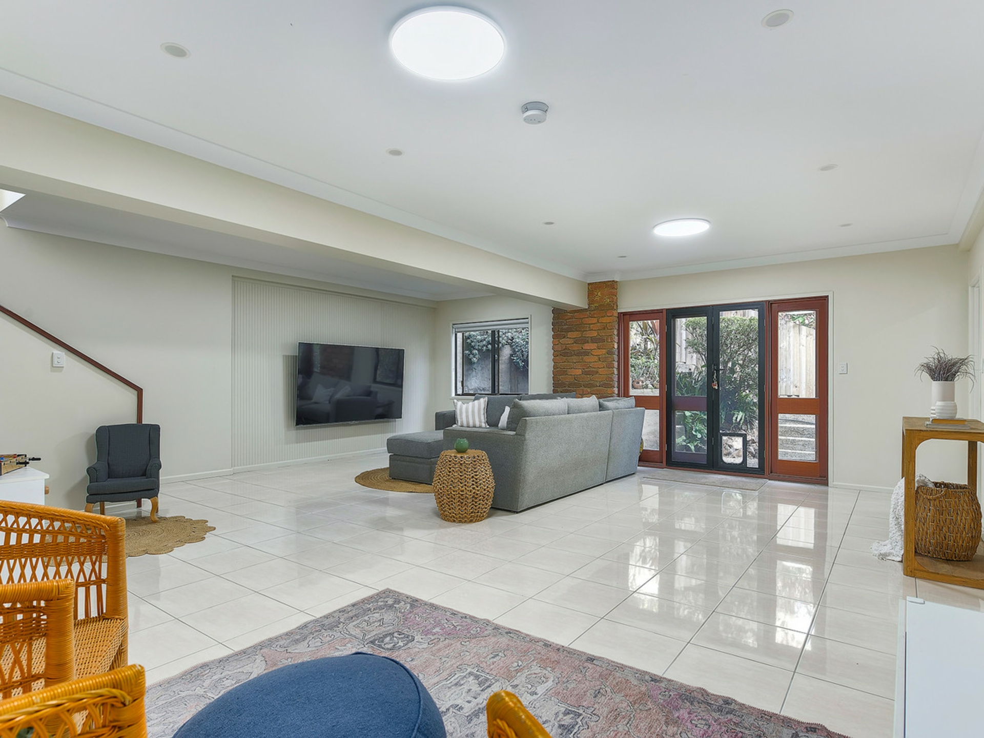 Downstairs, a timber staircase leads to an oversized additional living area that anchors the lower level. This flexible space is surrounded by three well-proportioned bedrooms, each with built-in robes, split-system air-conditioning and direct access to a covered timber deck that wraps around the eastern side of the home. This level also includes a large multipurpose room, ideal for storage, hobbies or a home gym, along with an additional bathroom suited to guests or older children seeking separation.