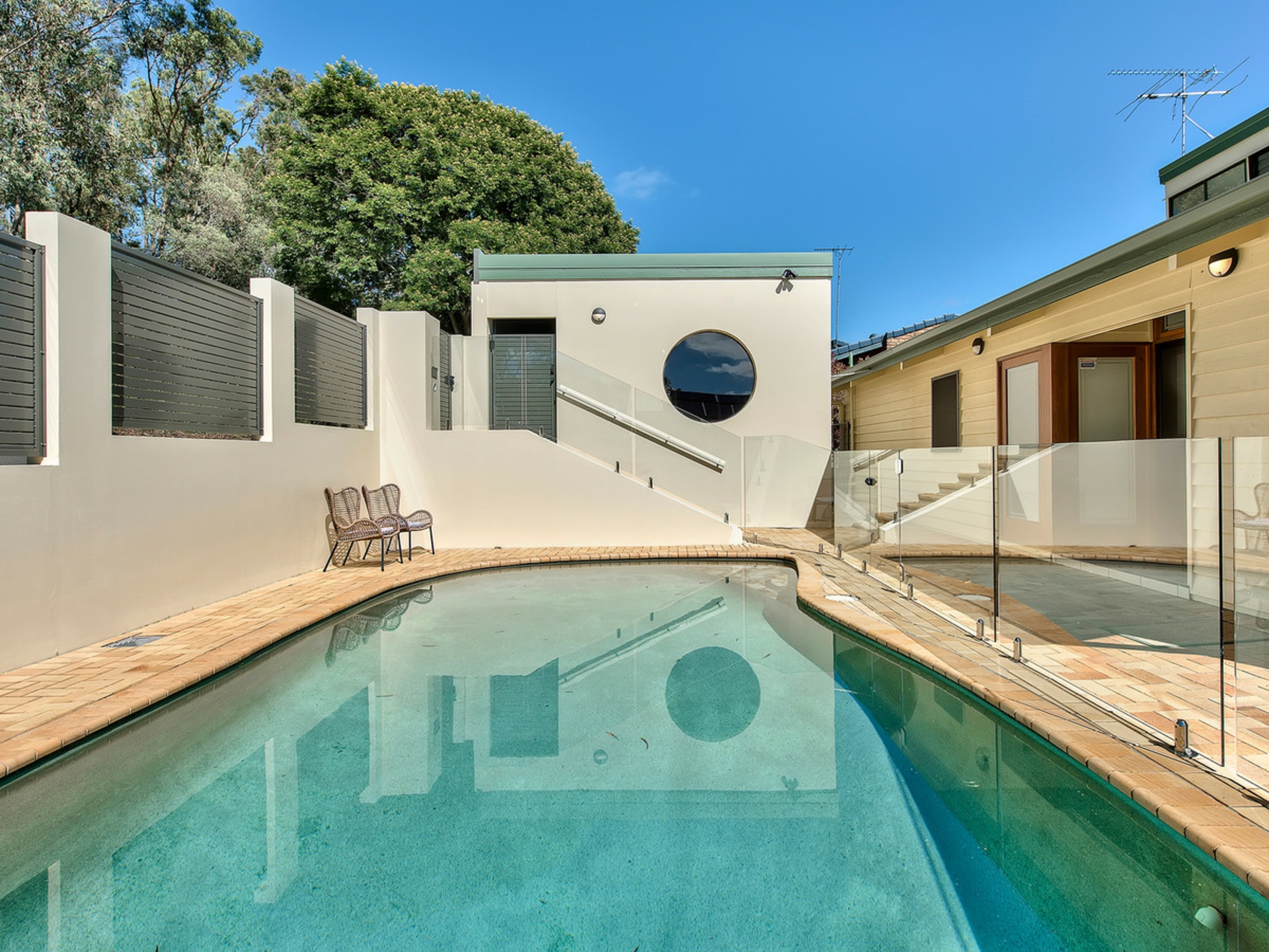 - In-ground swimming pool with adjoining tiled alfresco.