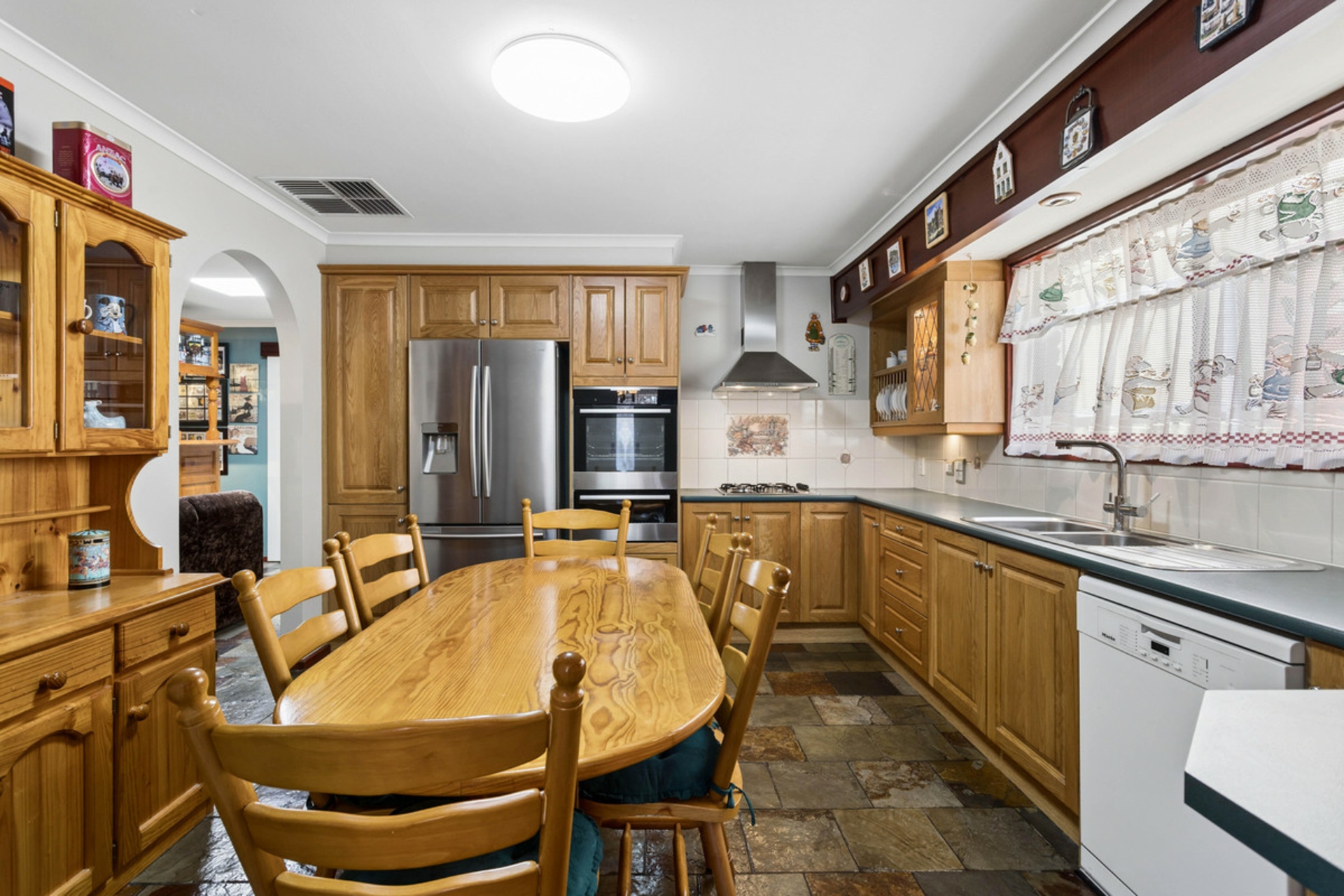 • Country-style timber kitchen with gas cooktop, updated oven and dishwasher