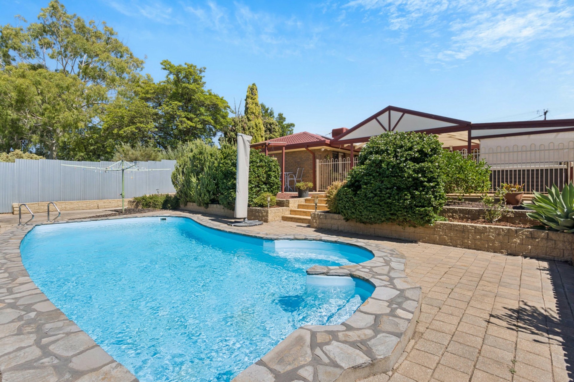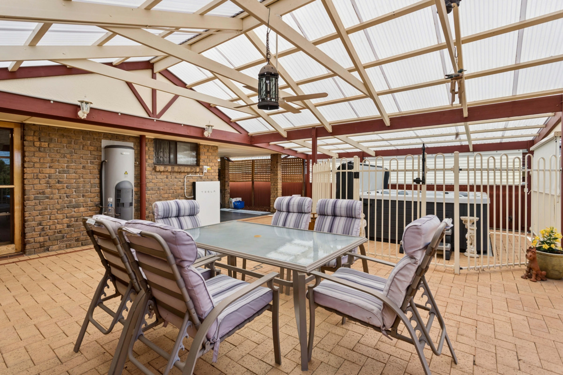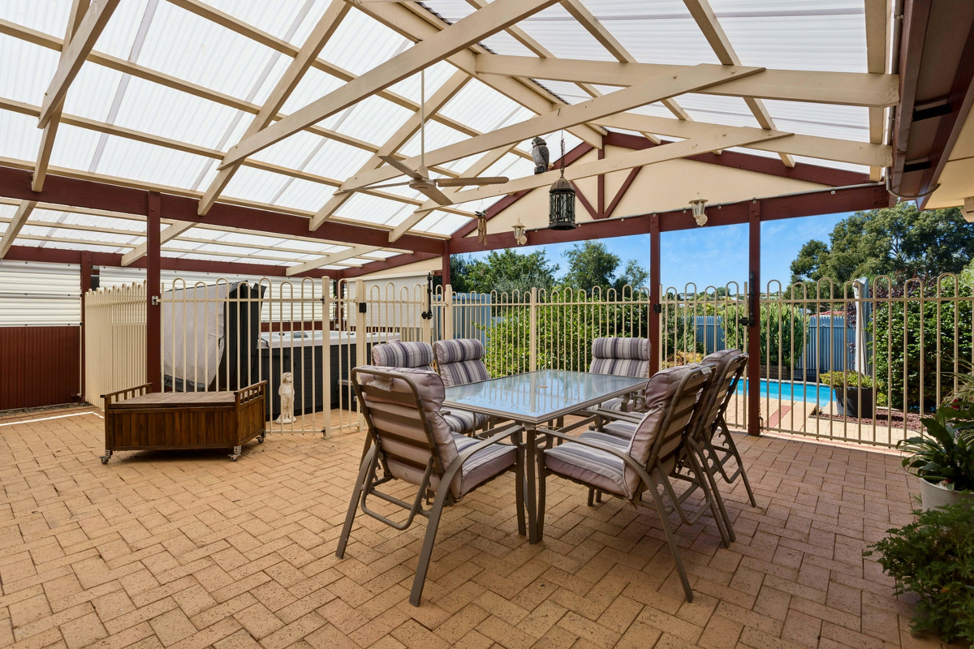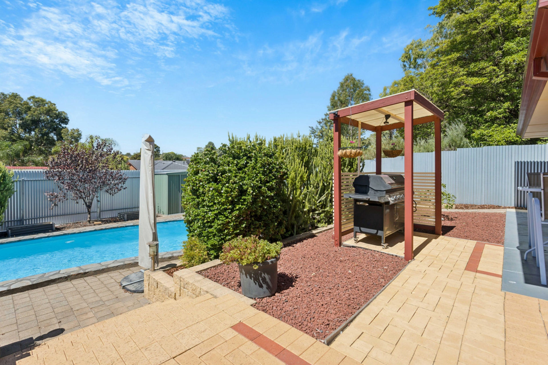 • Large pitched pergola outdoor entertaining area