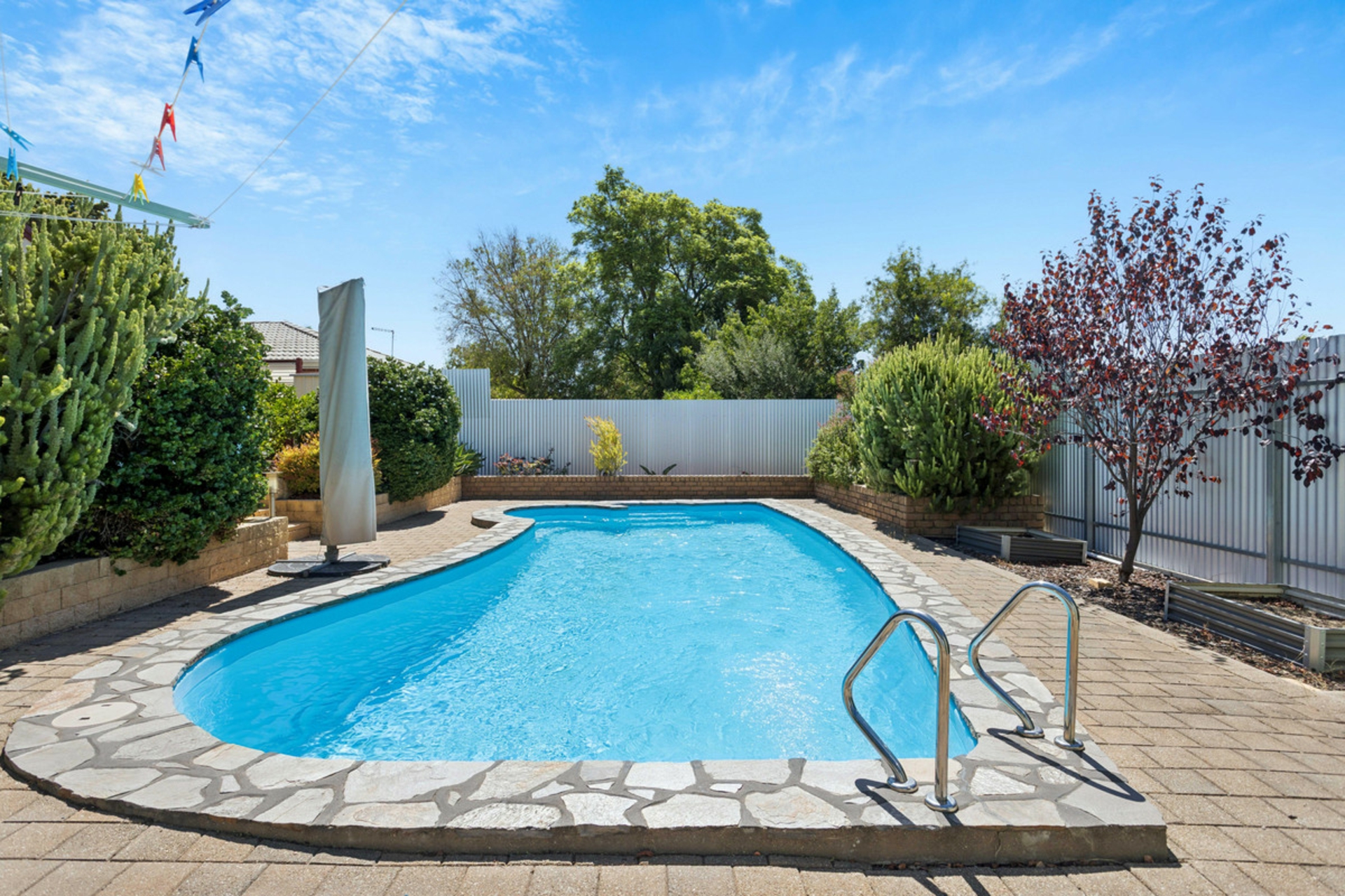 • Immaculate in-ground, fibreglass, salt water swimming pool with automatic robotic cleaner included