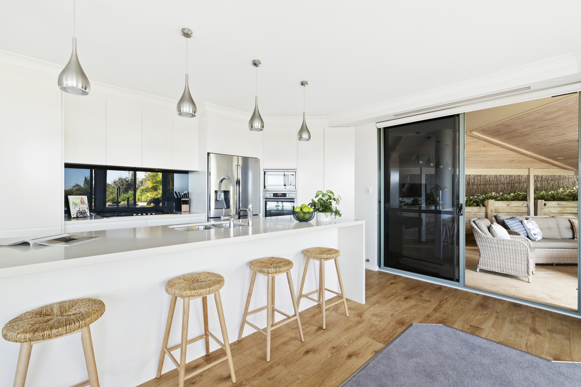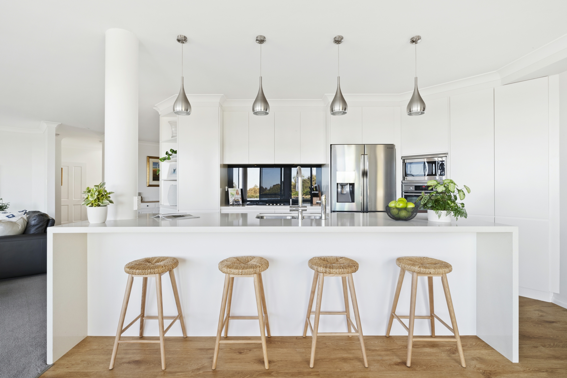 • Contemporary main kitchen appointed with stone benchtops, quality appliances and a large island bench with breakfast seating