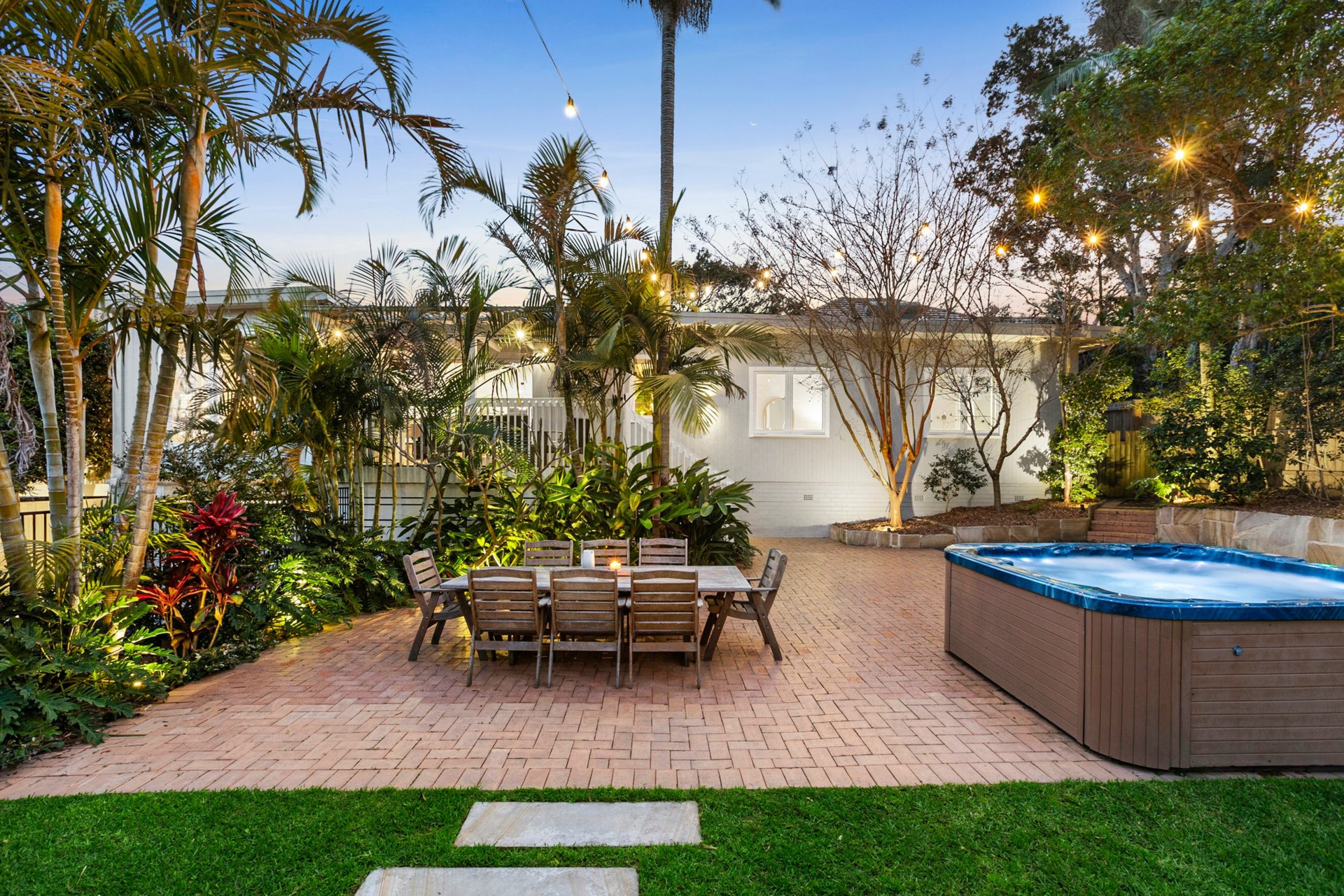 • Sunny outdoor entertaining area with patio and hot tub spa