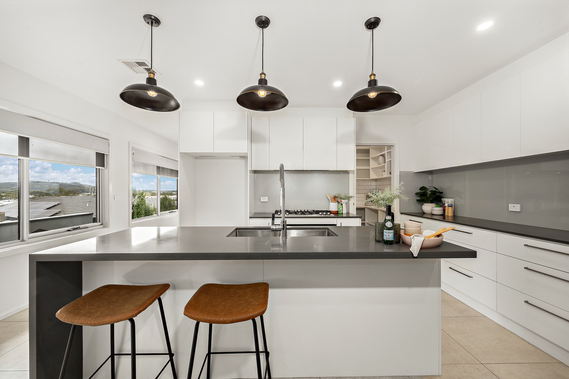 At the centre, the kitchen brings everything together. It's both functional and inviting, flowing seamlessly into the living and dining so that everyday life happens without interruption. The addition of a butler's pantry - complete with integrated microwave and room for appliances and storage - keeps the main space clean while giving you that extra layer of practicality that makes a real difference.