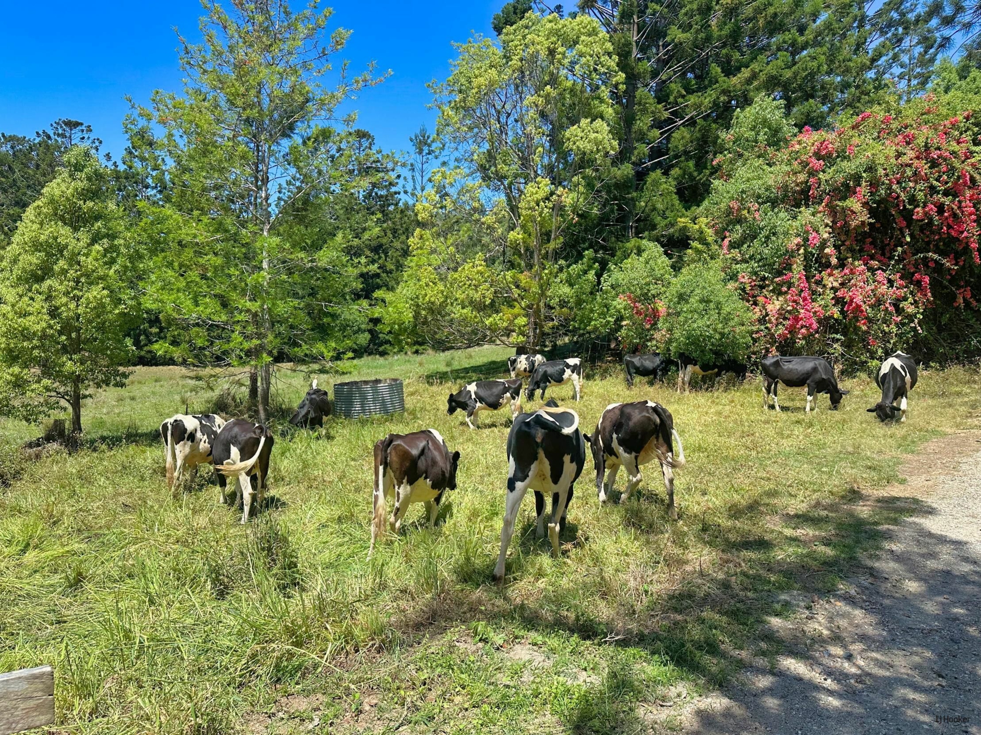 Currently operating as a cattle farm rearing dairy heifers and steers, the land is fenced and ideally suited for cattle, horses, or other livestock. The ridge lines of the property offer sweeping ocean views, and the north-facing aspect ensures sun-drenched days and spectacular sunsets.