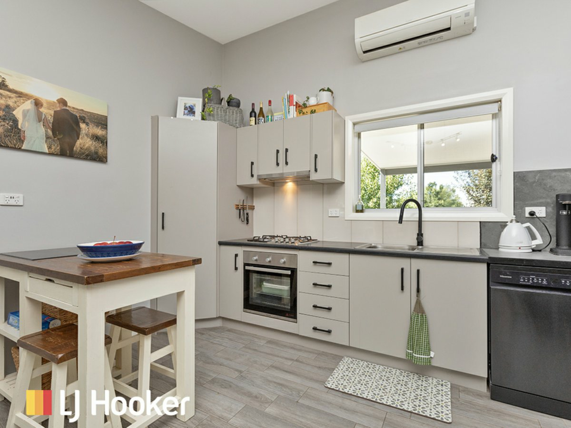 Inside, you’ll find a modern layout designed for comfort and practicality. Both bedrooms include built-in wardrobes and ceiling fans, while the reverse cycle split system ensures year-round climate control. The light-filled living spaces create a welcoming feel, making it easy to settle in and enjoy.