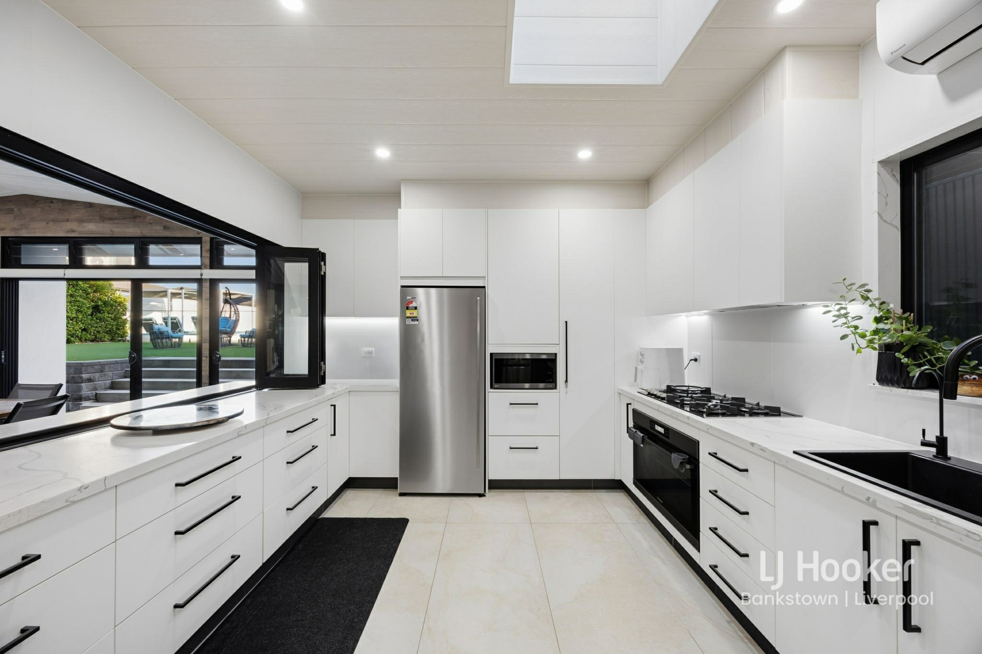 Showcasing an exceptional level of luxury, space and design, this breathtaking residence in sought-after Moorebank stands as one of the suburb's most impressive homes. Crafted for large families and those who love to entertain, this premium property offers an unparalleled lifestyle with grand proportions, high-end finishes and resort-style outdoor living.