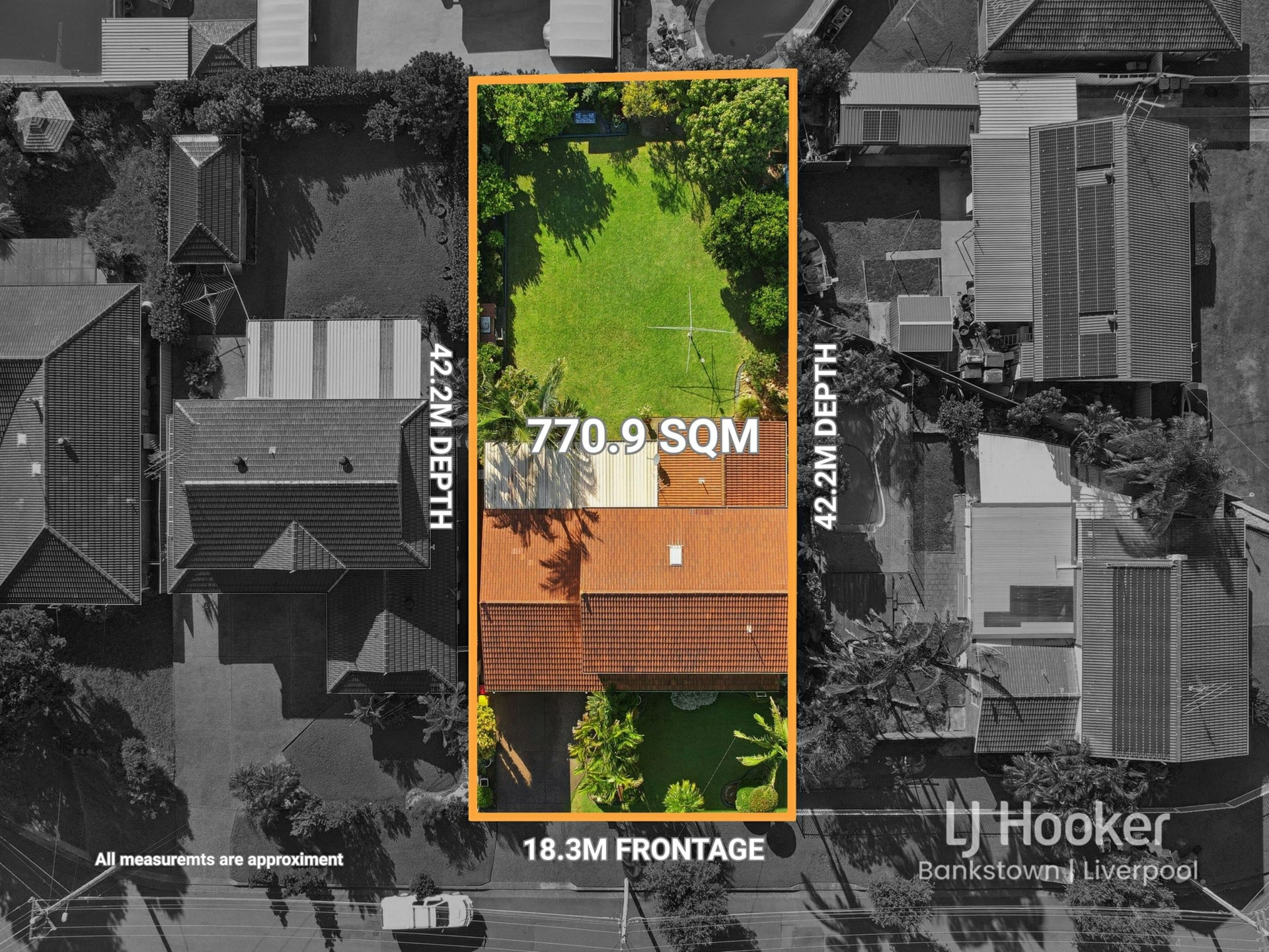 - Large 770.9sqm block with 18.3 metre frontage and approximately 42.2 metre depth