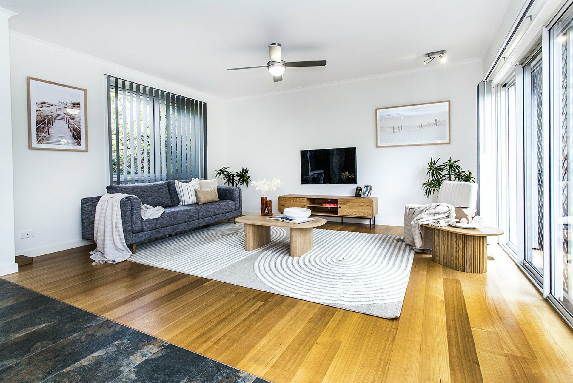 All three bedrooms are well-proportioned and supported by two spotless bathrooms, including a privately placed master suite. A side-positioned Merbau deck extends the living space outdoors, offering a sunny spot for morning coffee or quiet unwinding later in the day.