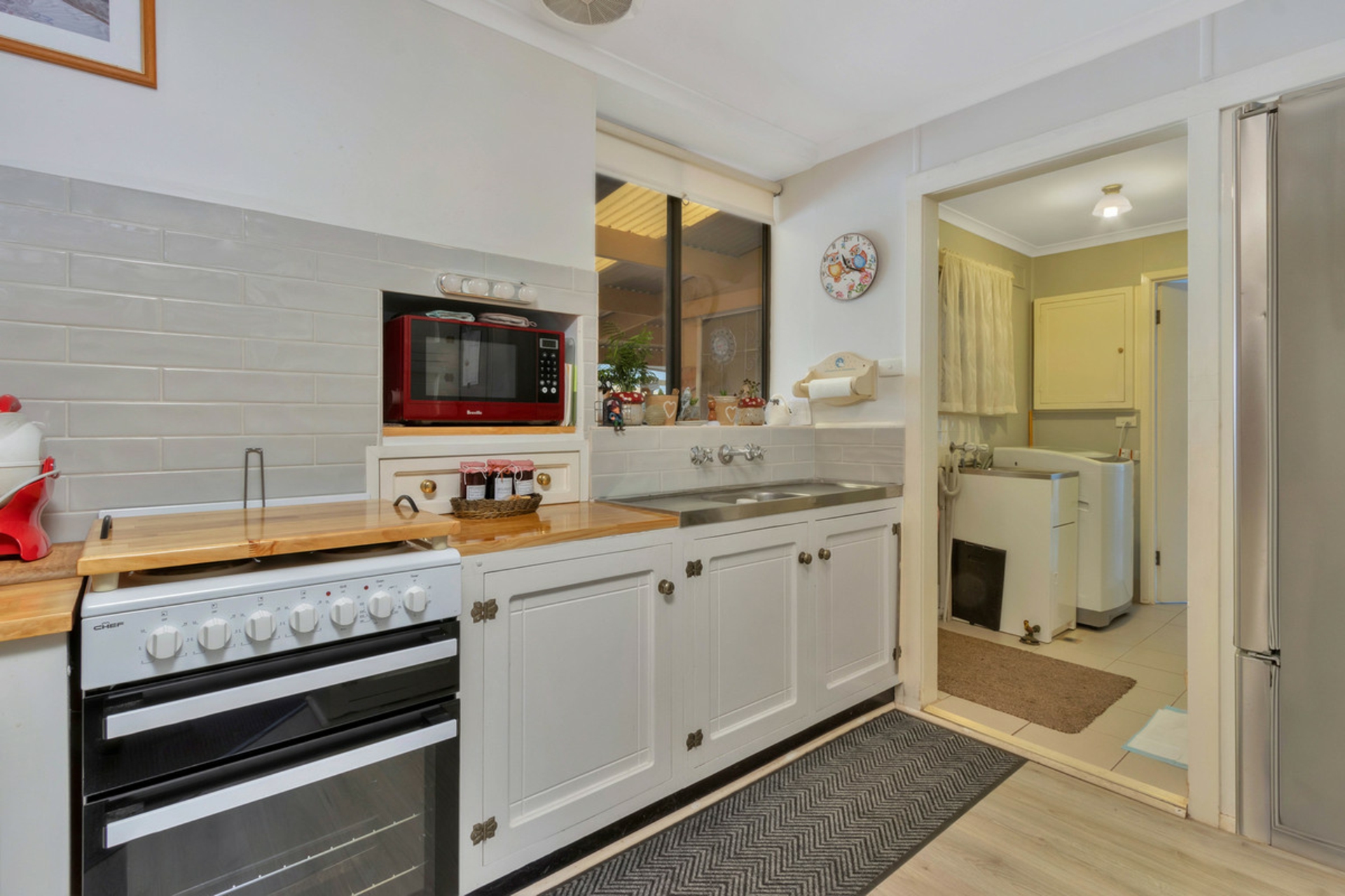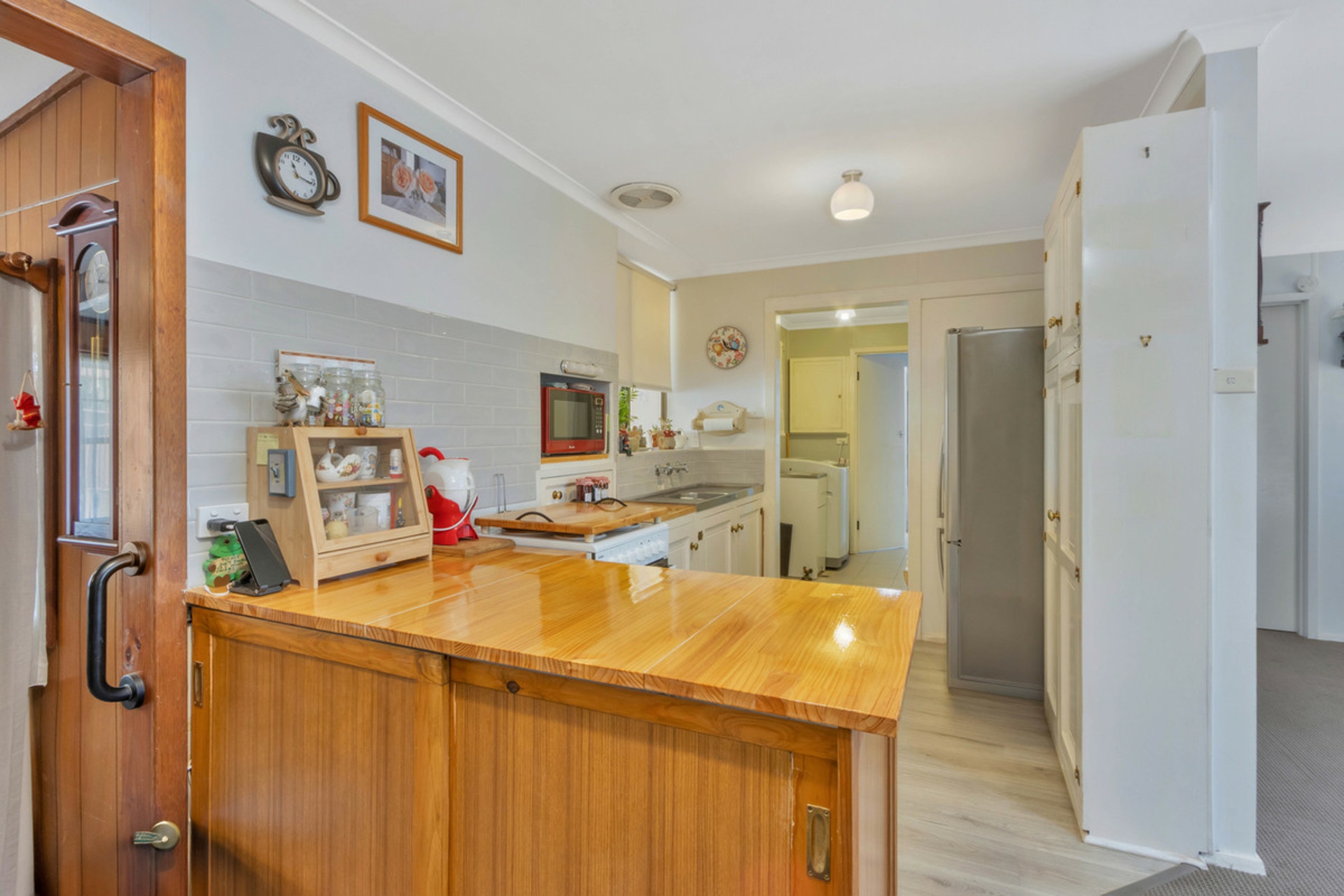 • Updated kitchen with ample cabinetry and bench space.