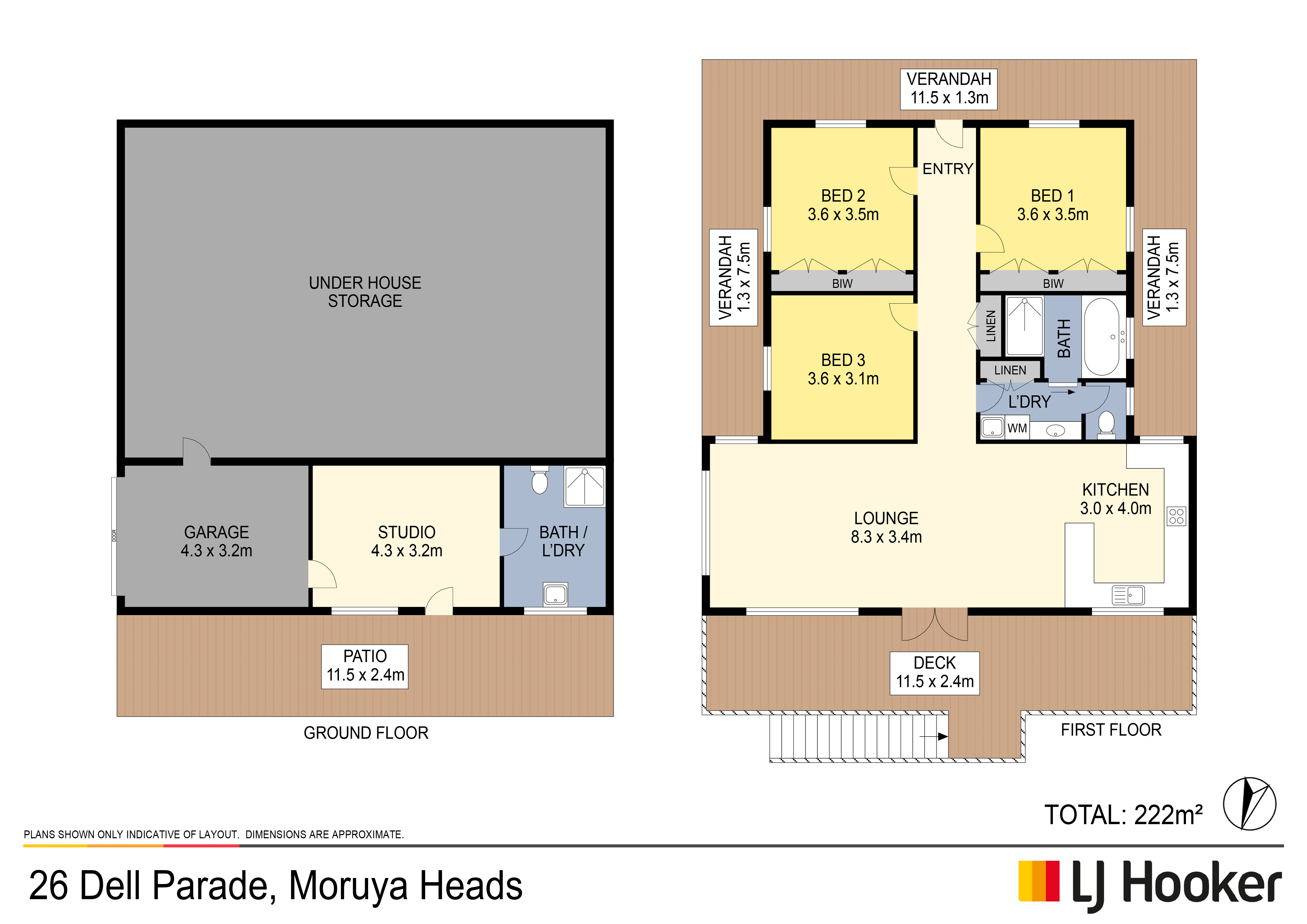 Downstairs includes a single garage, a versatile studio space and a second bathroom/laundry combo ideal for guests, hobby use or extra storage. The under-house storage room also adds practicality to the layout.