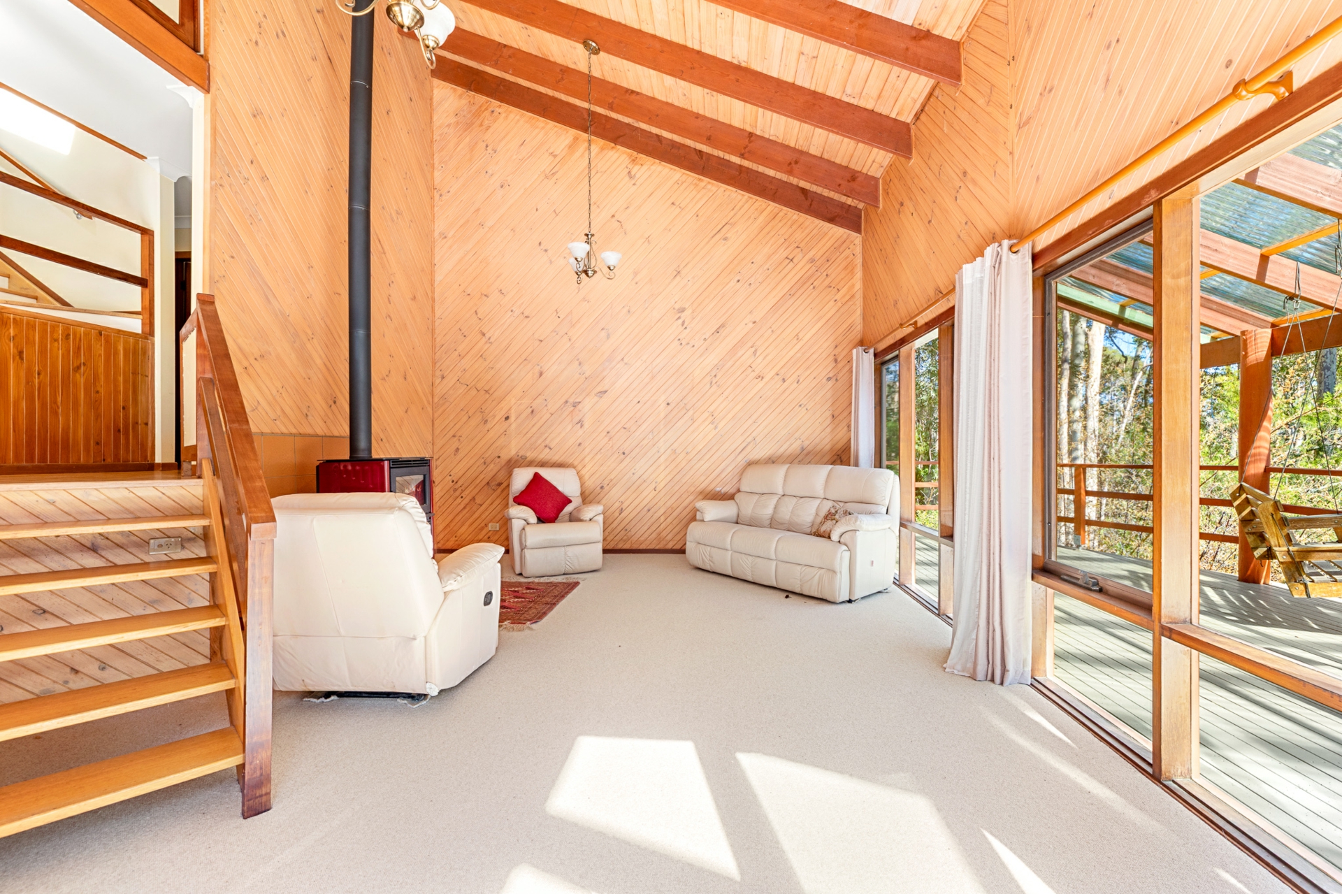 Elevated to capture views of the river and surrounding mountains, the home is complemented by a large entertaining deck, creating a great space to take in the outlook and enjoy the setting.