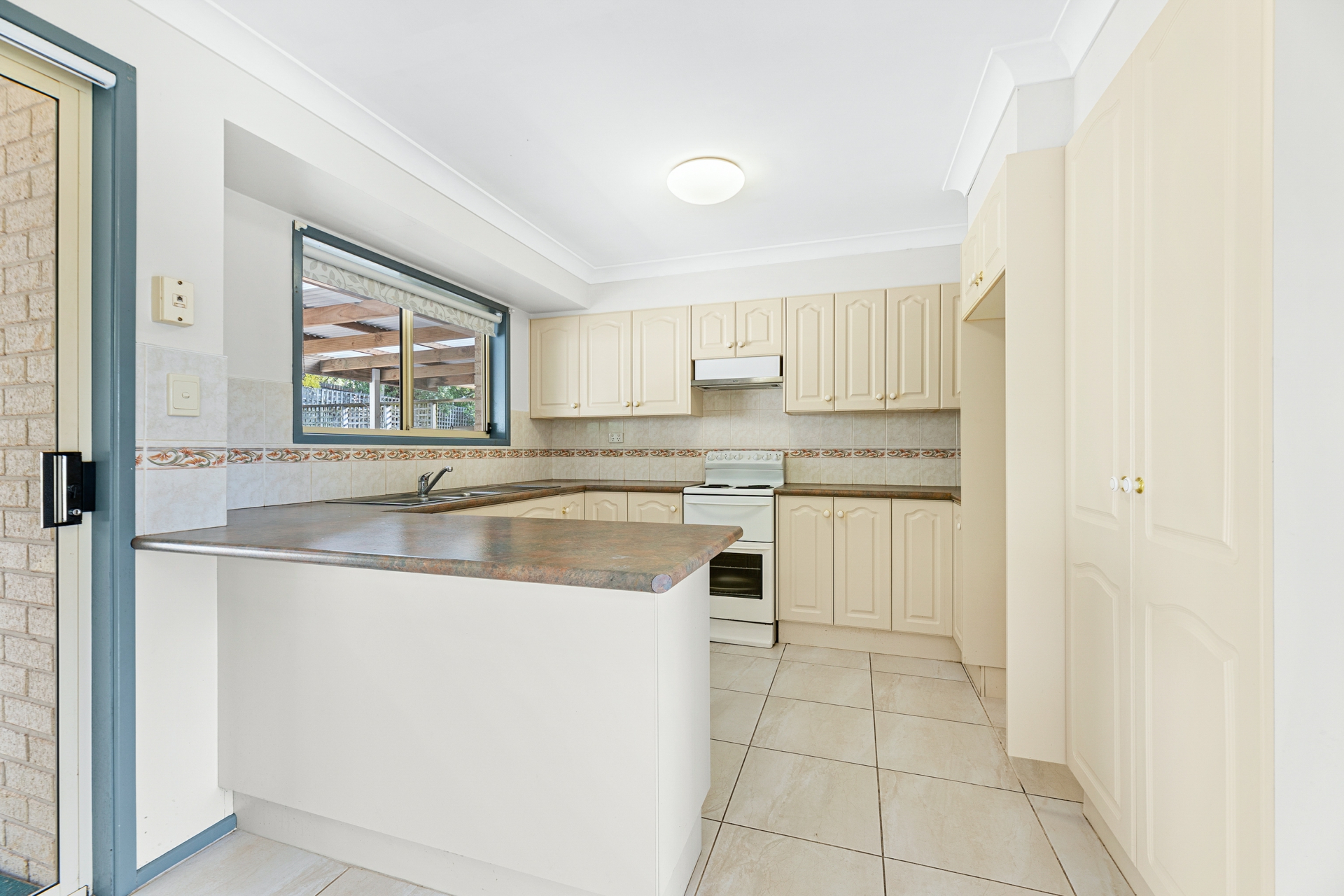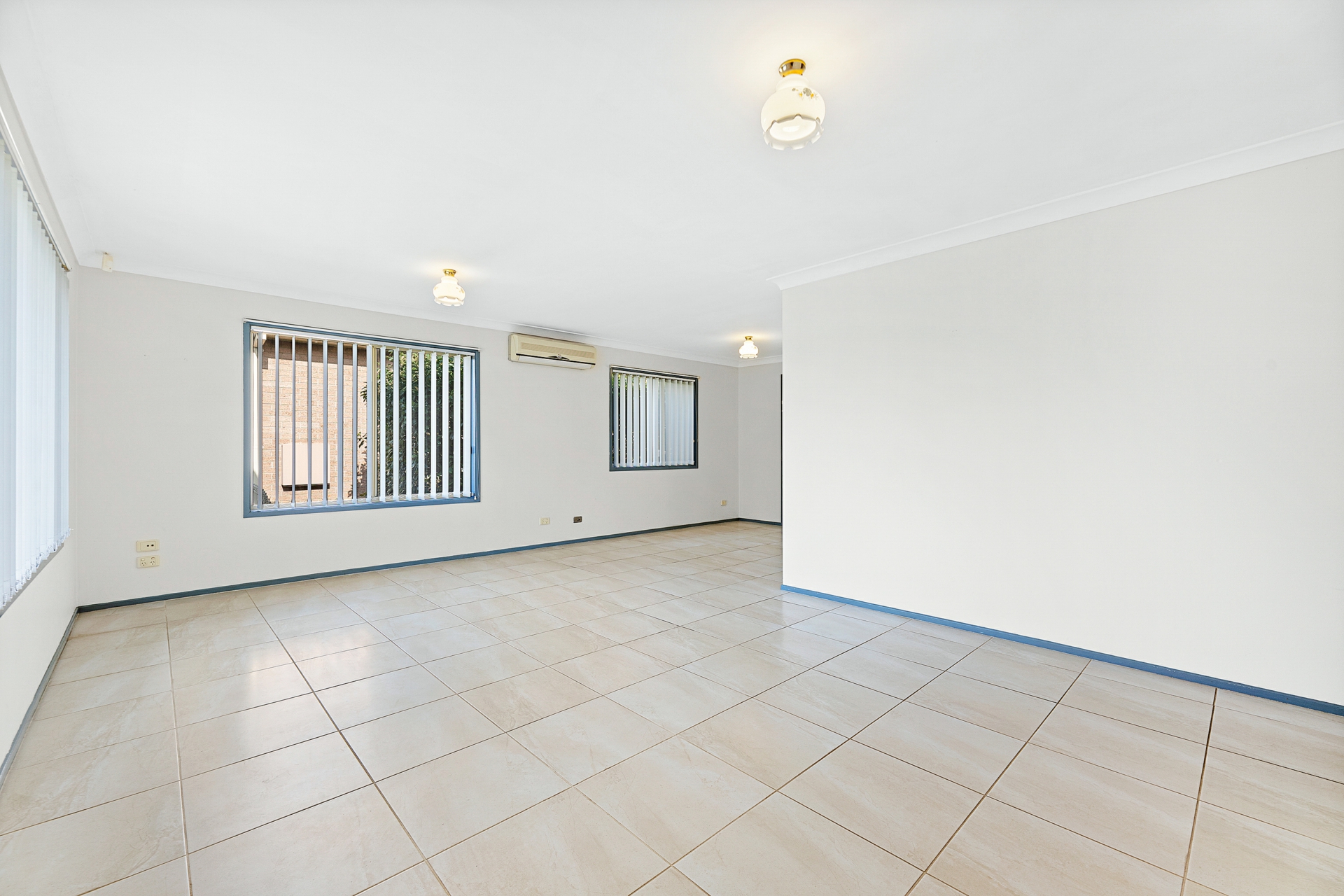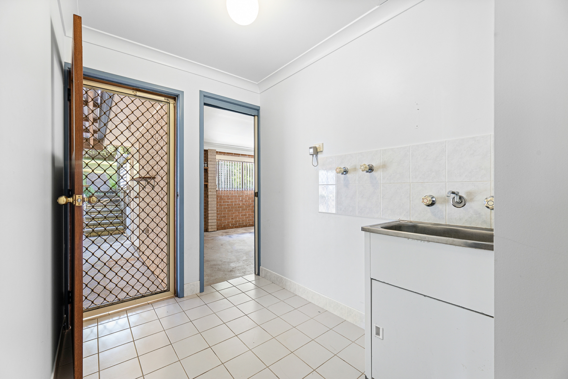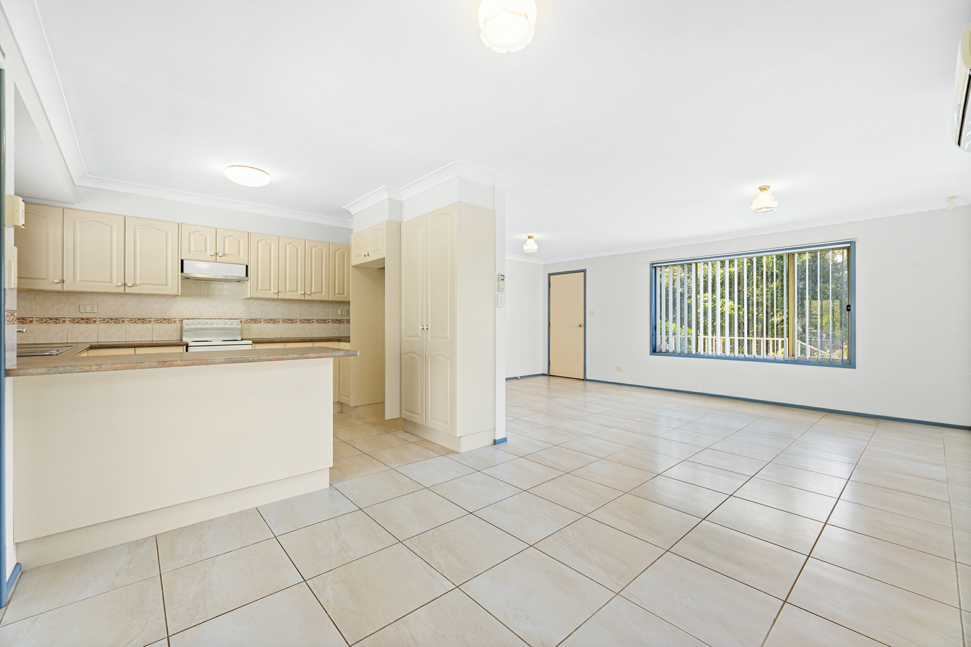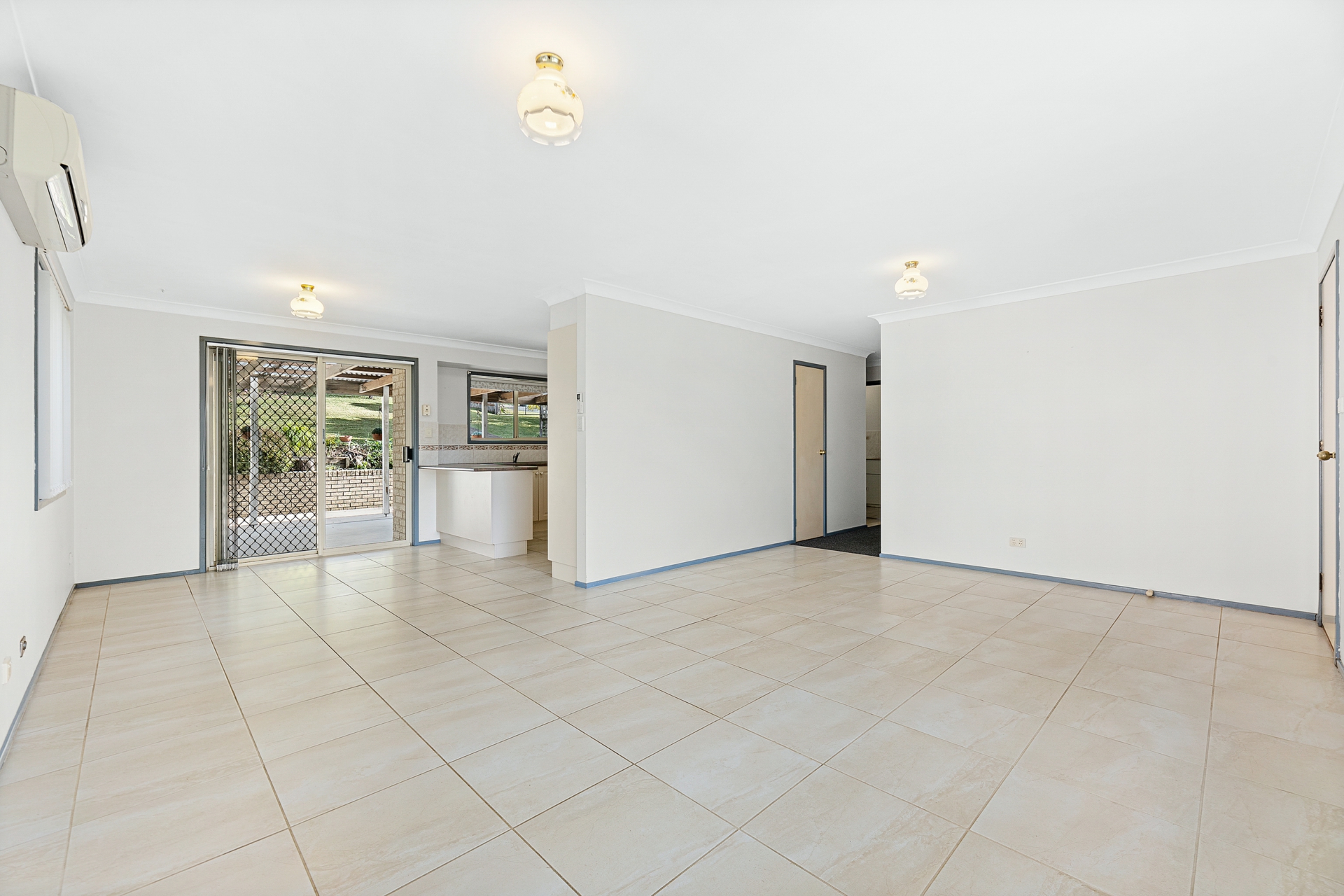 Tiled living spaces lead out to covered Alfresco area.