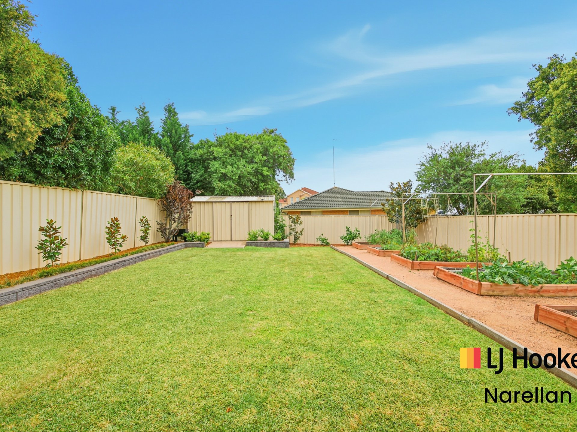 - Fully fenced level yard, shed and raised garden beds