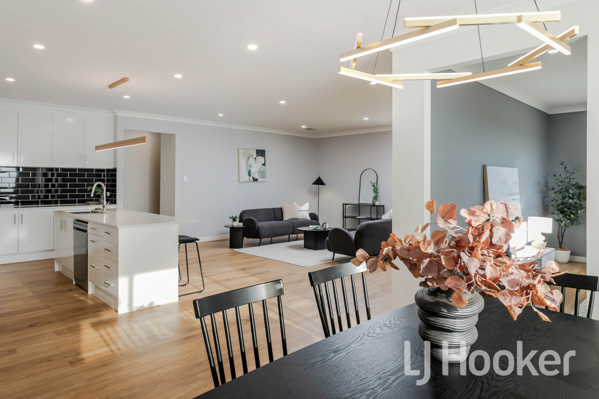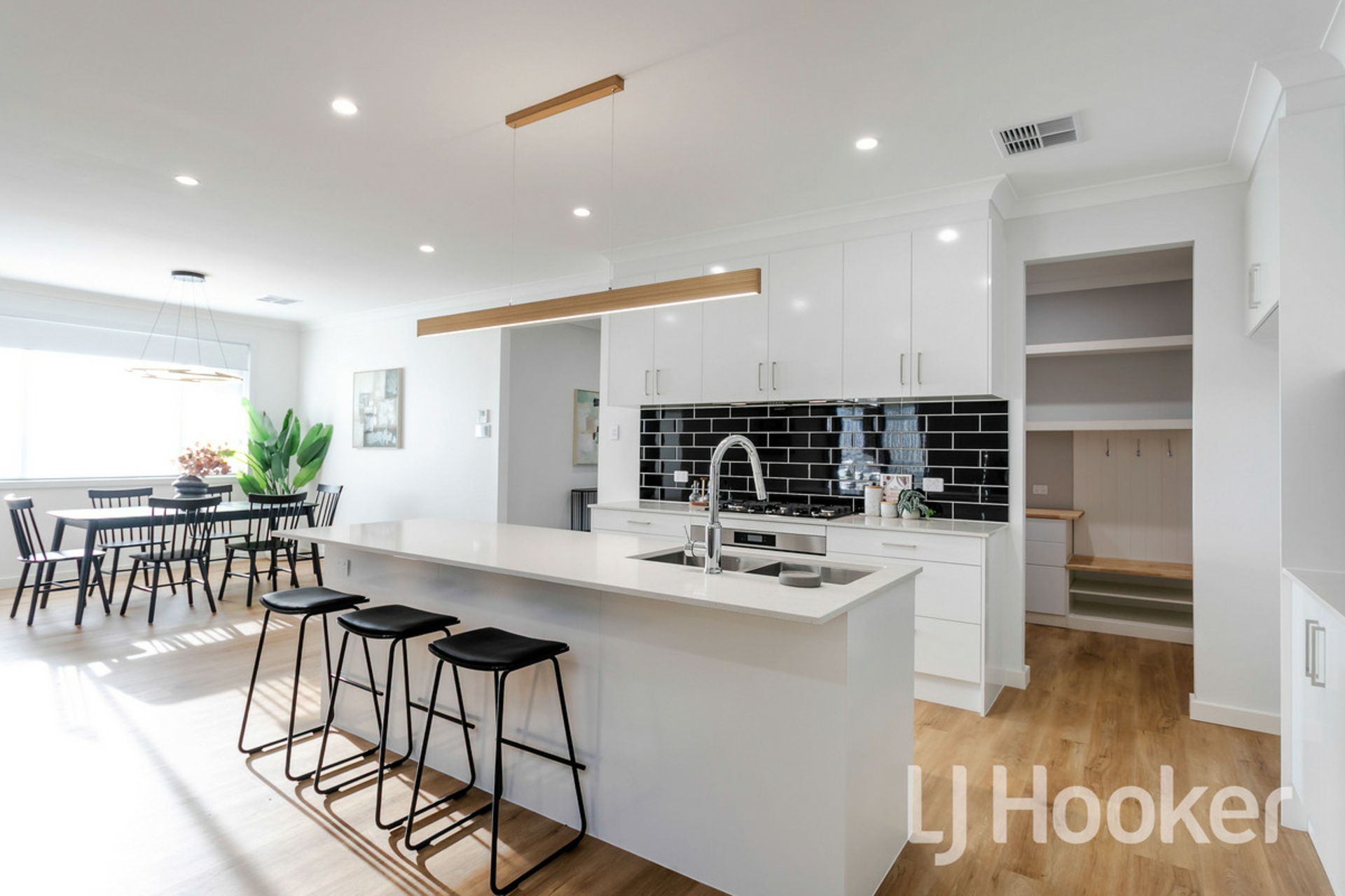 Step inside and you're immediately welcomed by a thoughtfully designed floorplan centered around a large open-plan living, dining and kitchen area. This expansive space forms the true heart of the home, flooded with natural light and designed for both everyday family living and entertaining. The modern kitchen is both stylish and practical, complete with a large island bench with a double sink, quality appliances, and a walk-in pantry that conveniently connects through to the garage, doubling as a functional mudroom