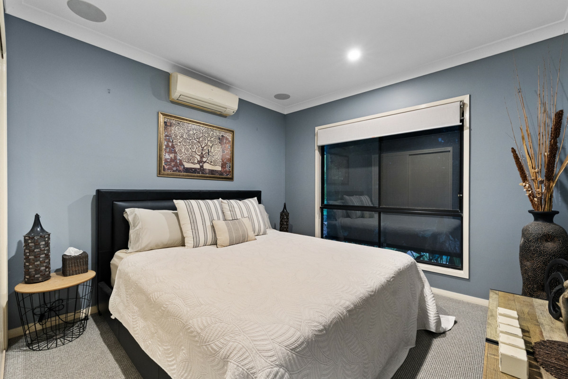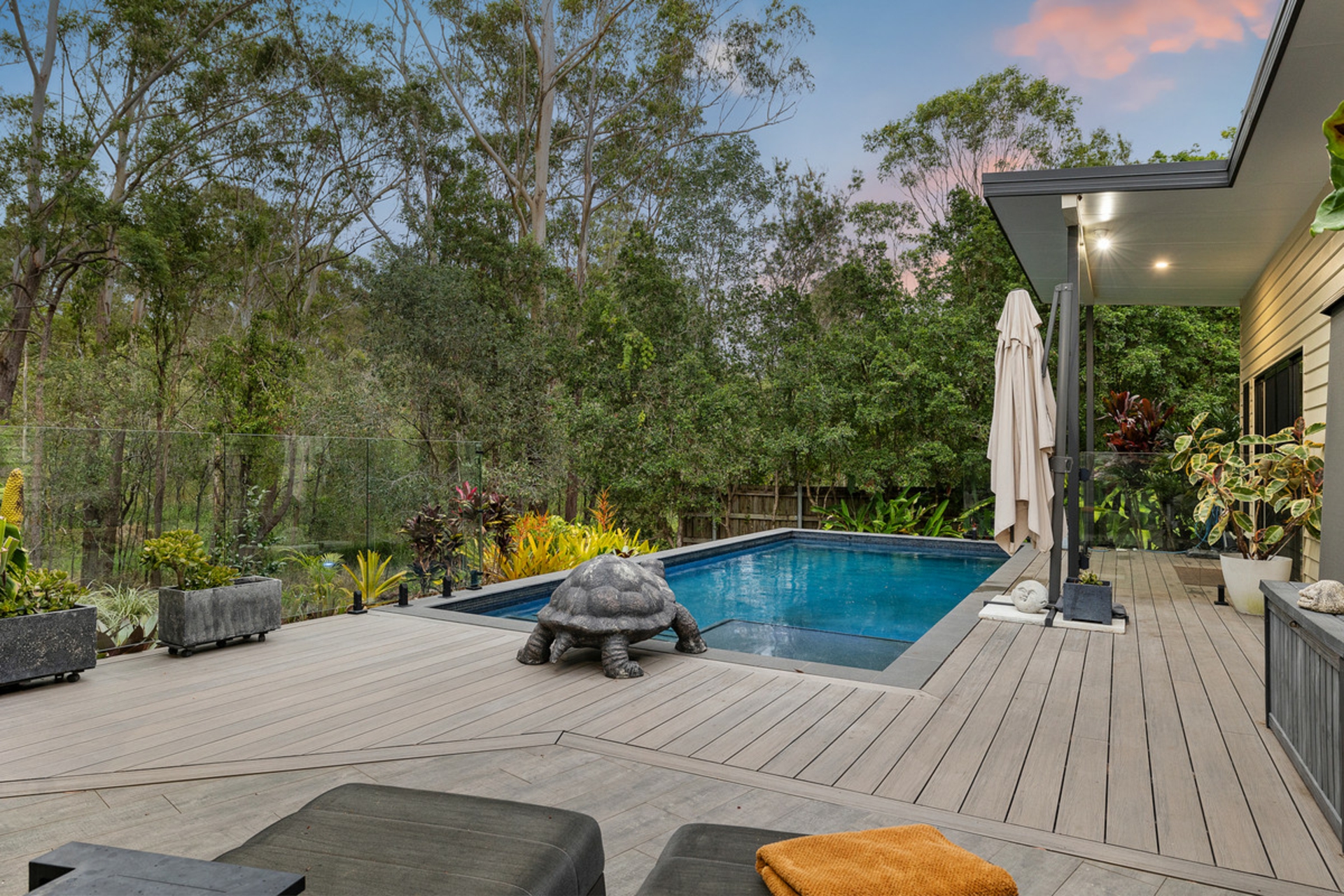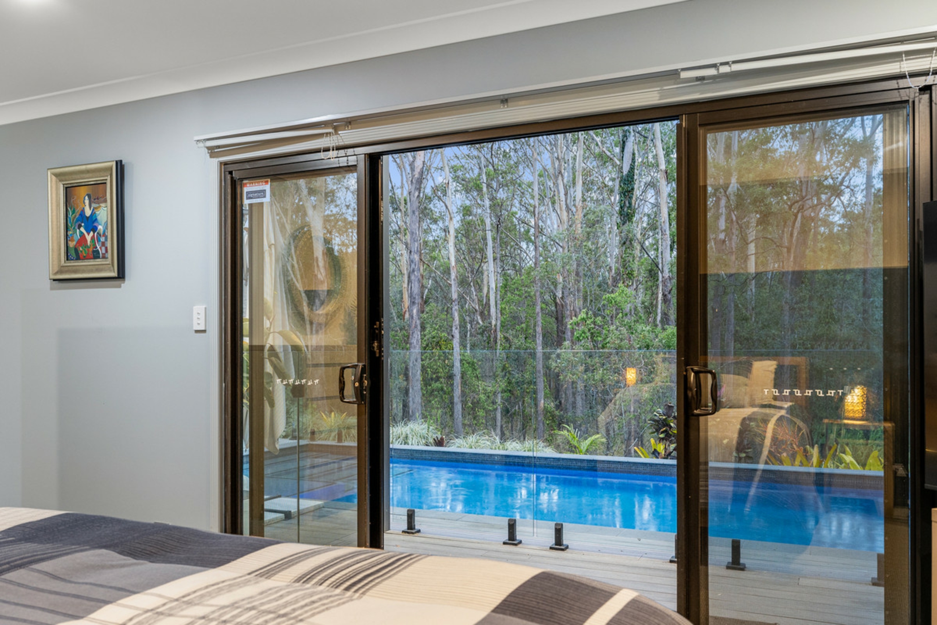 •Main bedroom with custom-built, walk through robe; huge ensuite with double vanity, spa bath, separate shower; direct pool access; bushland views