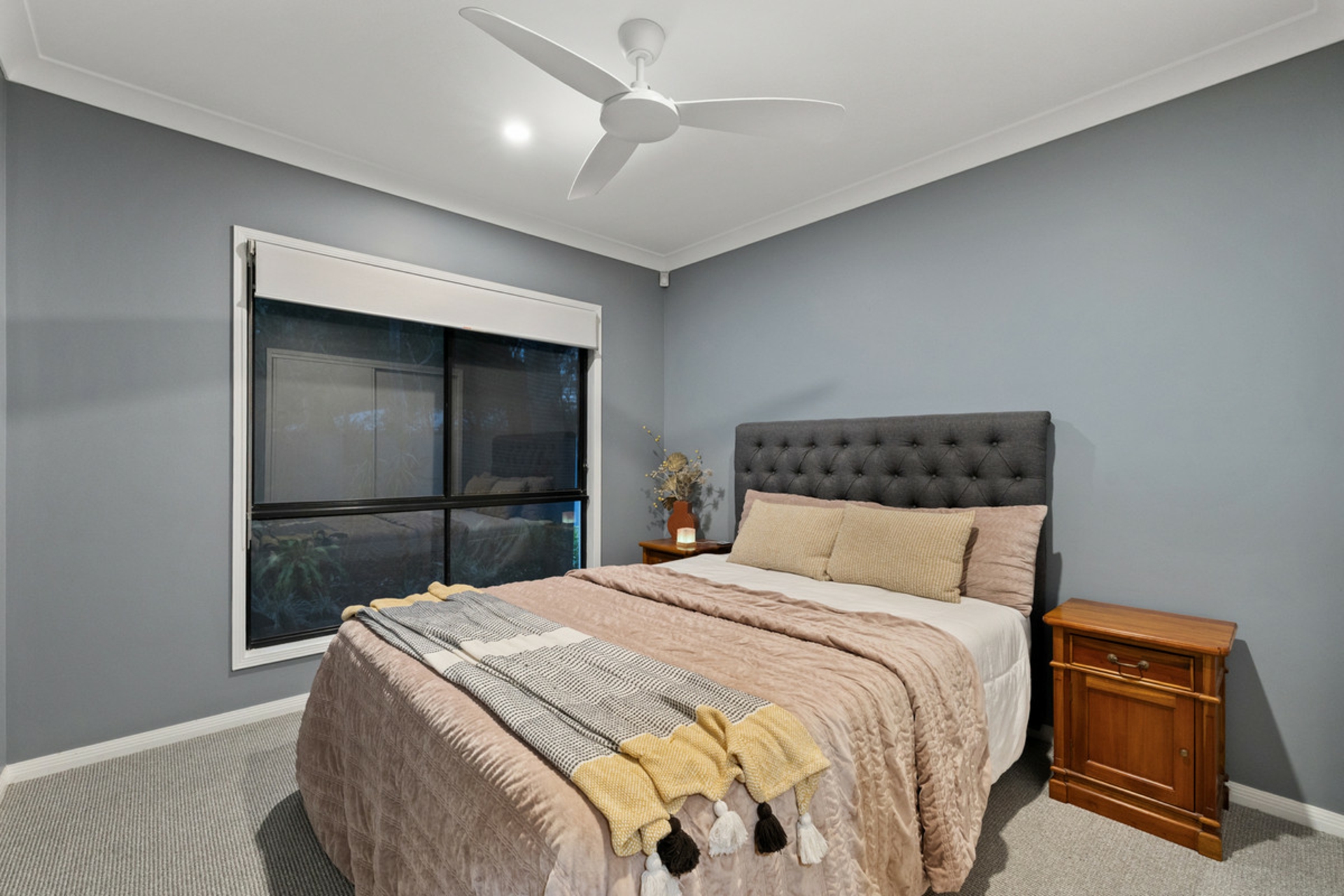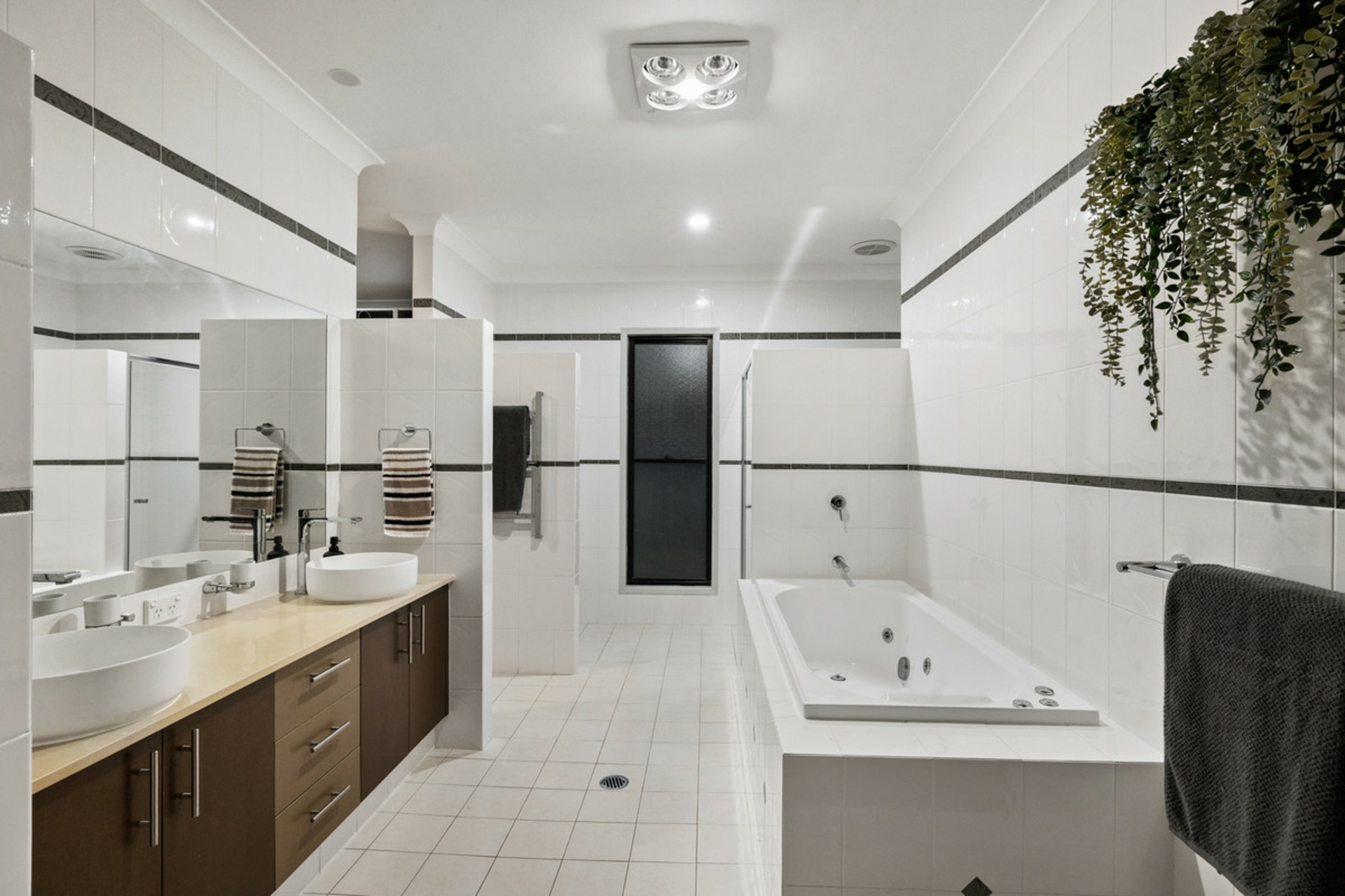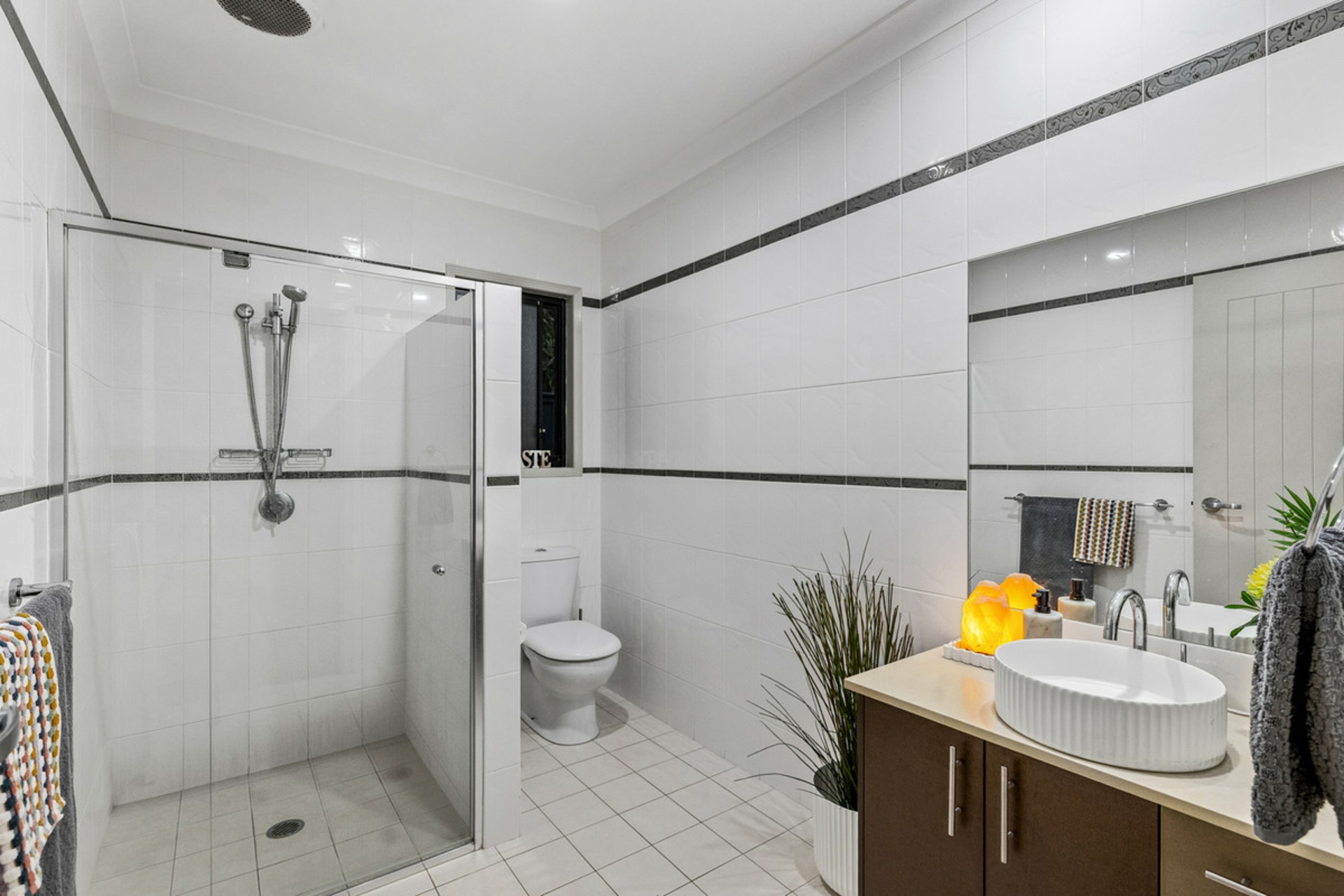 •Main bedroom with custom-built, walk through robe; huge ensuite with double vanity, spa bath, separate shower; direct pool access; bushland views