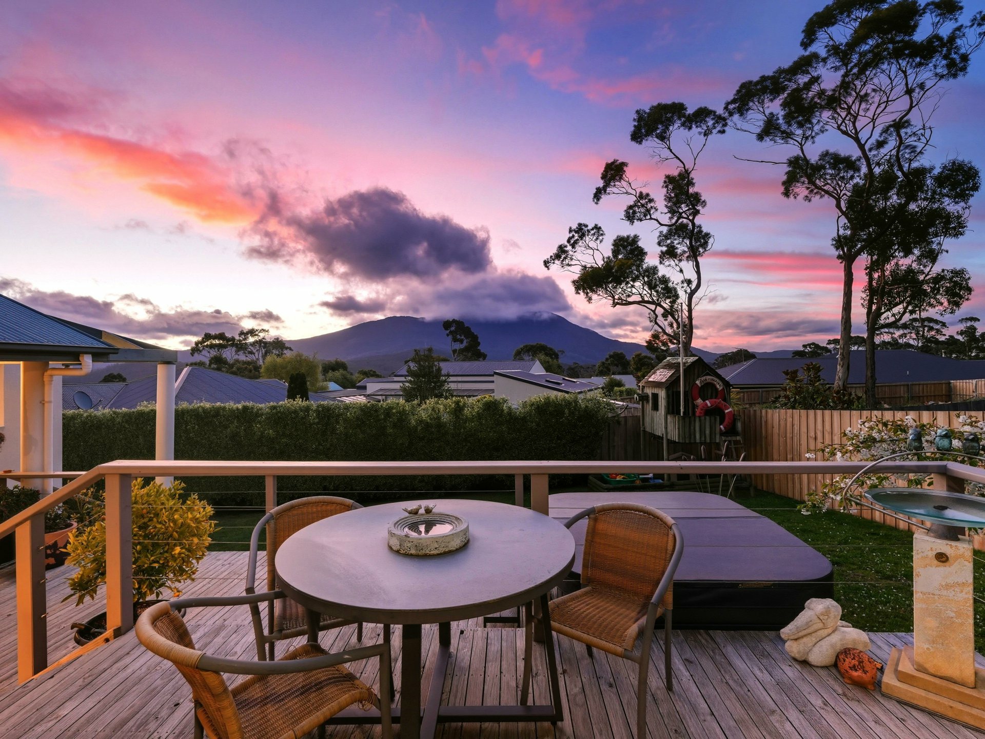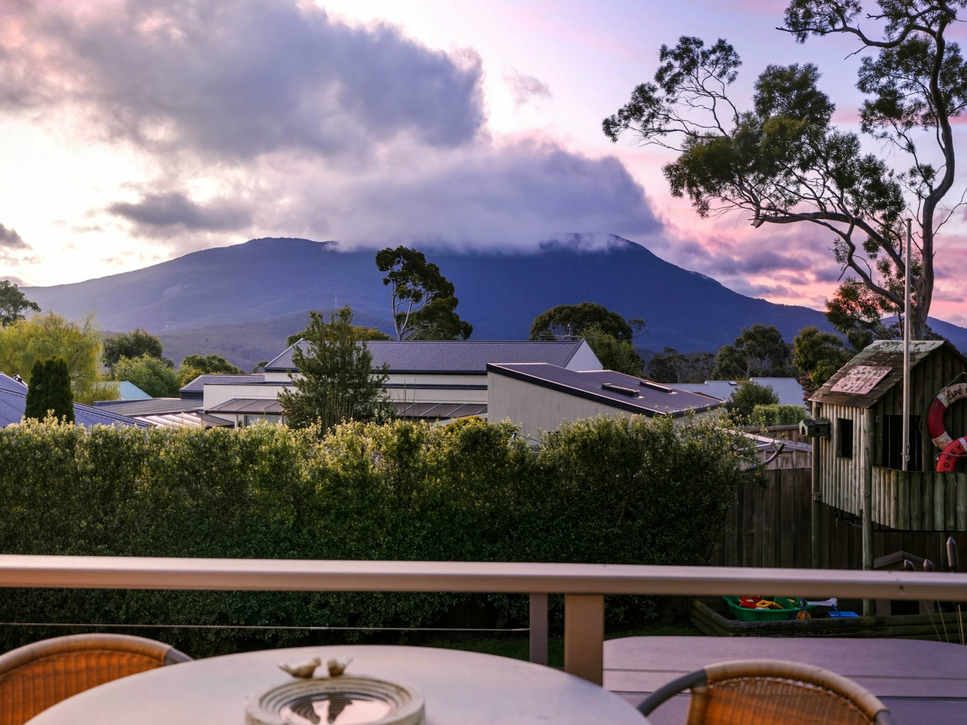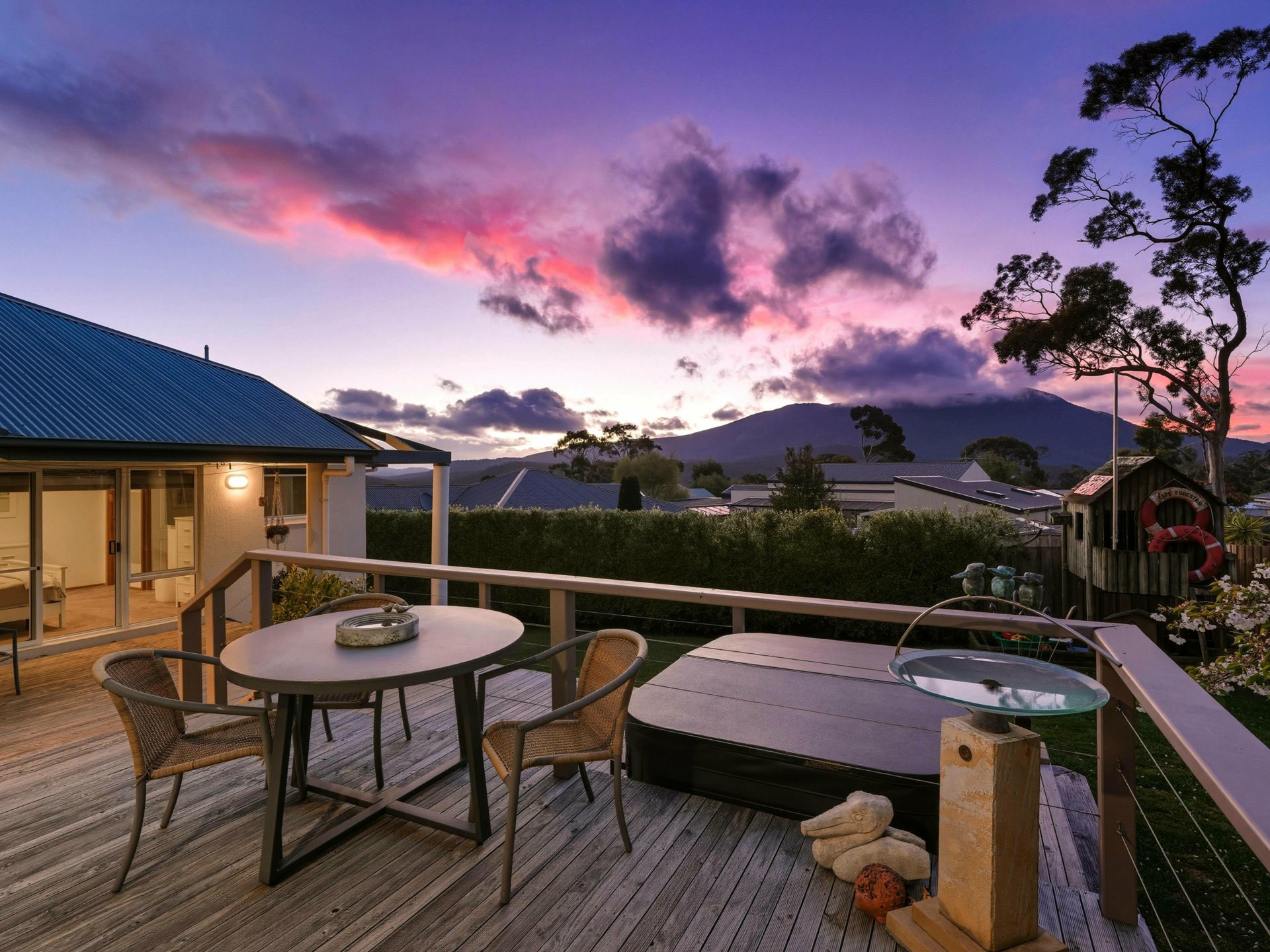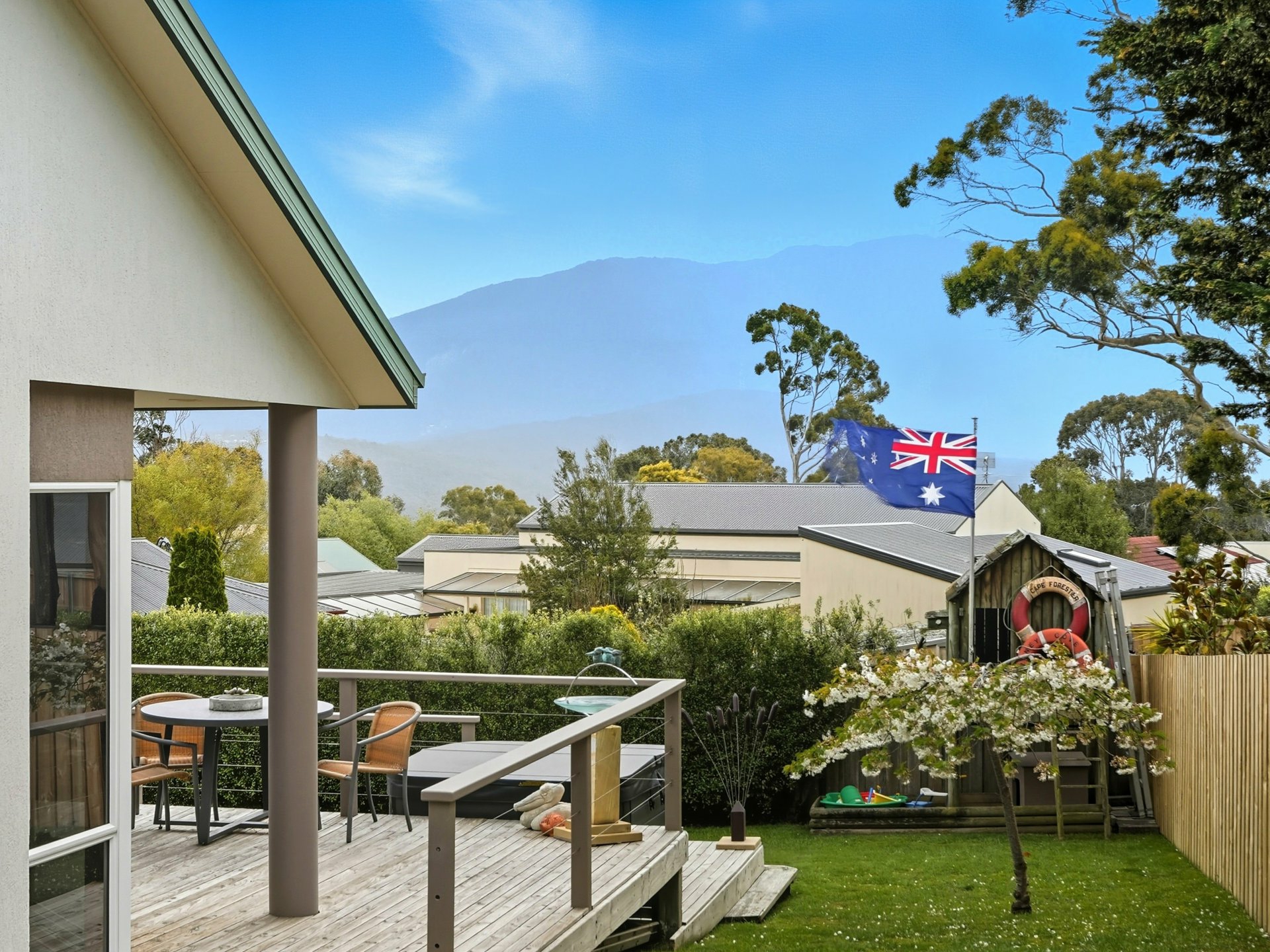 Expansive rear deck captures sunshine and privacy - ideal for a quiet morning coffee, weekend BBQs or lazy afternoons in the fresh Mount Nelson air.