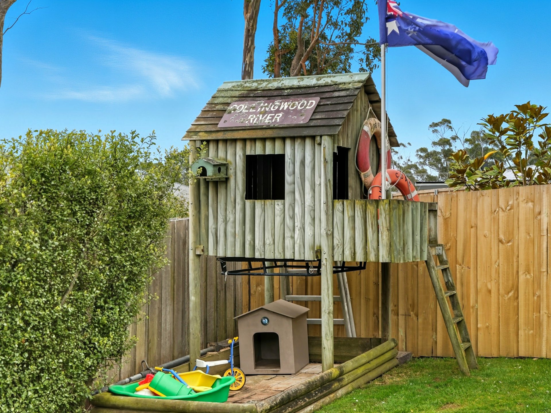 A secure yard, children's timber cubby house and established low-maintenance gardens make outdoor time a pleasure for kids, pets or green thumbs.