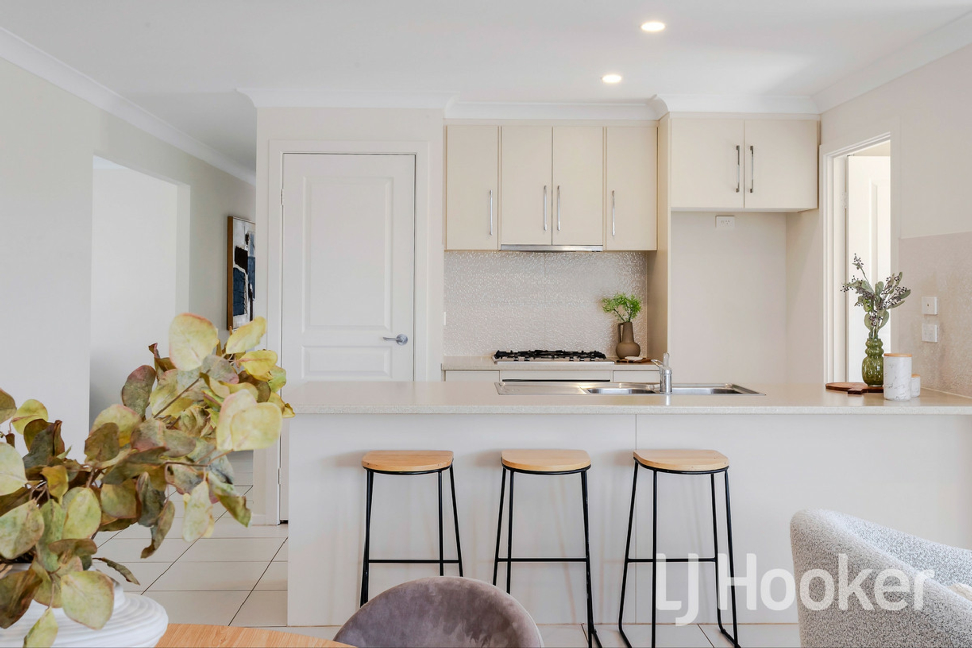 - The heart of the home is the open-plan kitchen which is equipped with stainless-steel appliances, a gas cooktop, dishwasher, and a large breakfast bar, perfect for both cooking and casual dining.