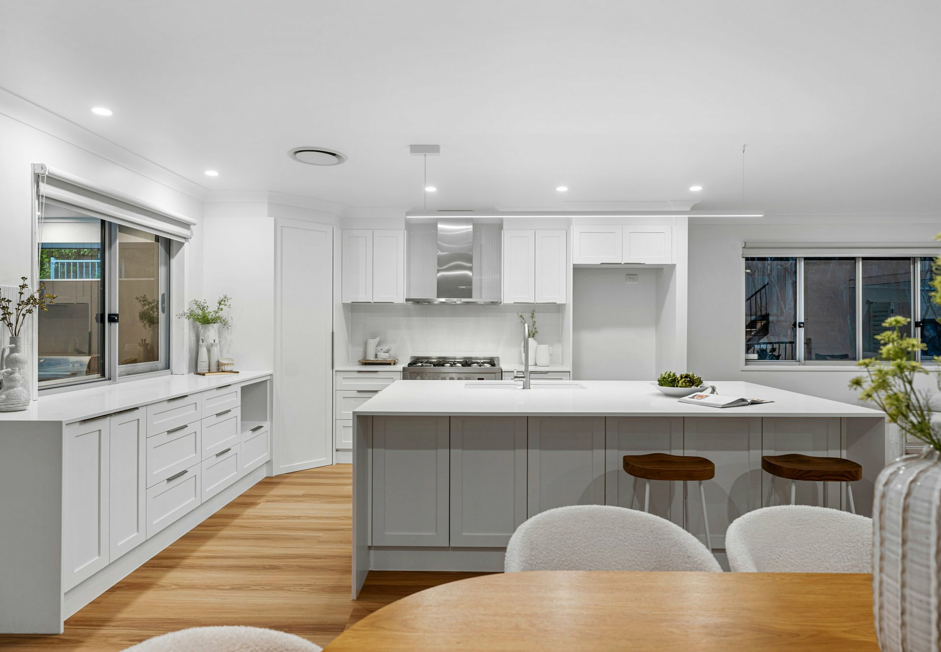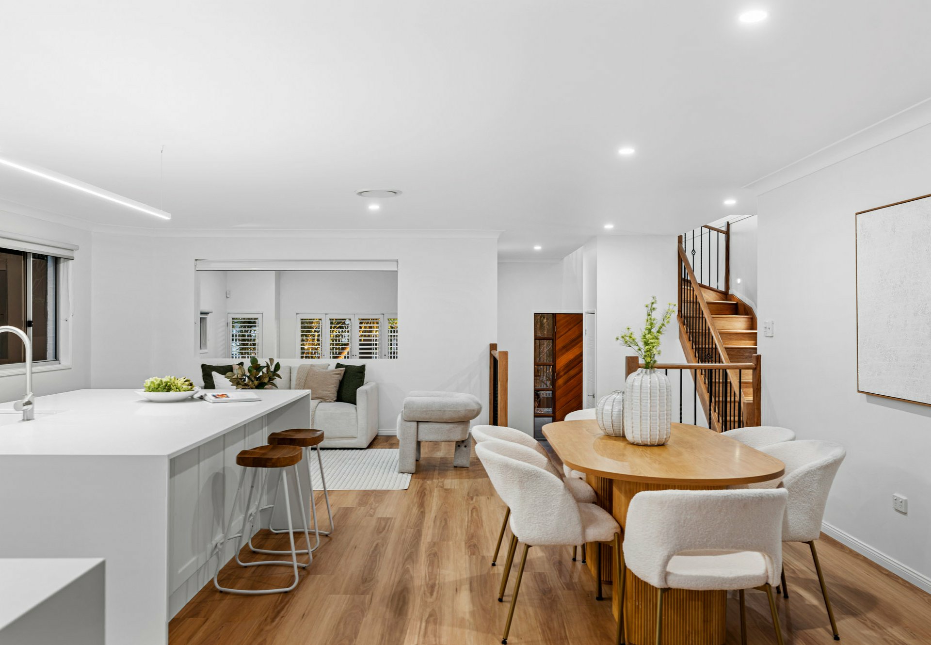 Designed for both everyday ease and elegant entertaining, the residence offers multiple living zones and seamless indoor–outdoor connection, allowing family life and social occasions to unfold effortlessly. Light-filled open-plan living forms the heart of the home, anchored by a sleek contemporary kitchen with premium appliances, generous bench space and refined finishes, creating an inviting centrepiece for both casual meals and hosting.
