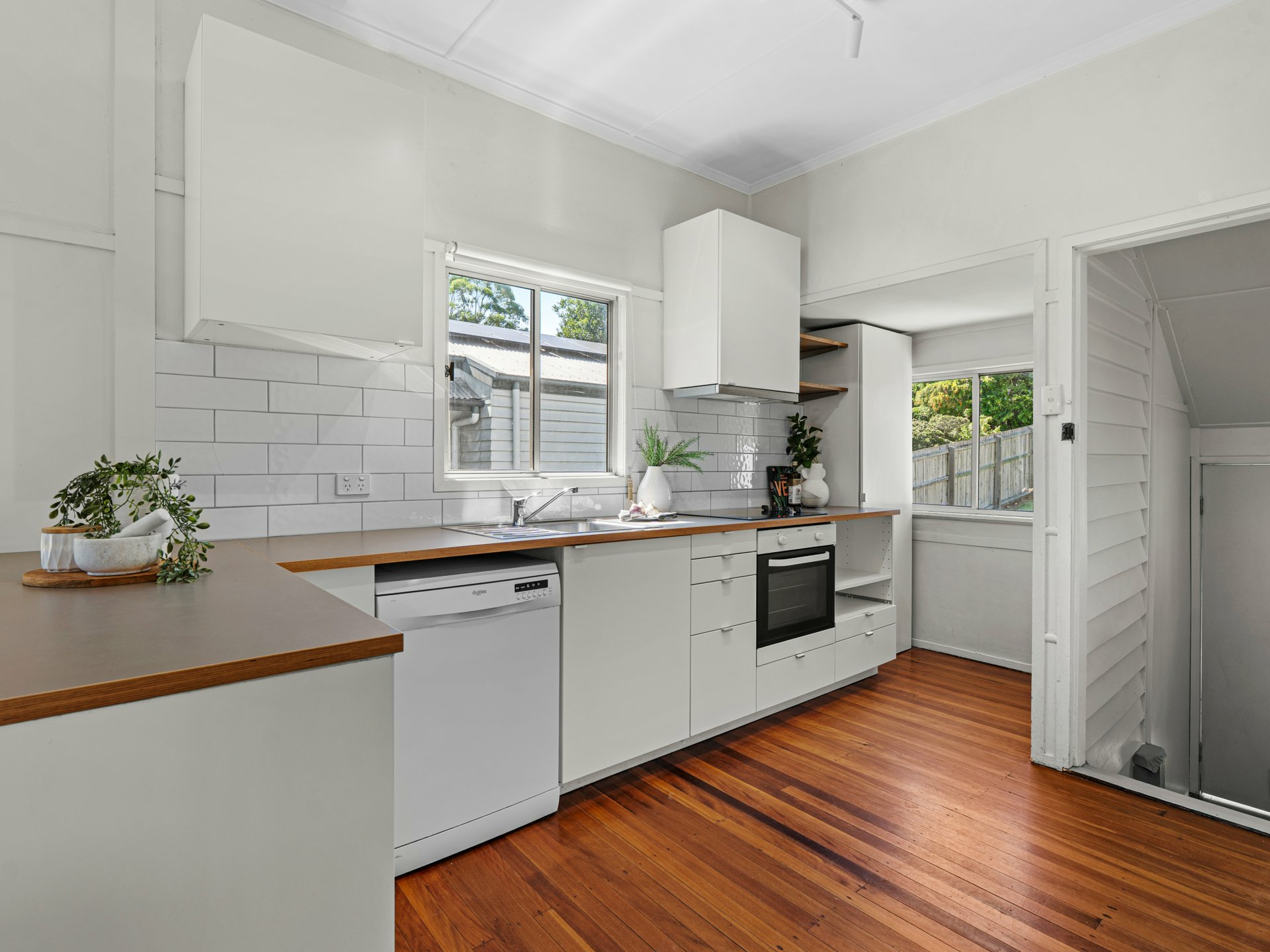 Updated kitchen with electric cooking, dishwasher and plenty of cupboard space
