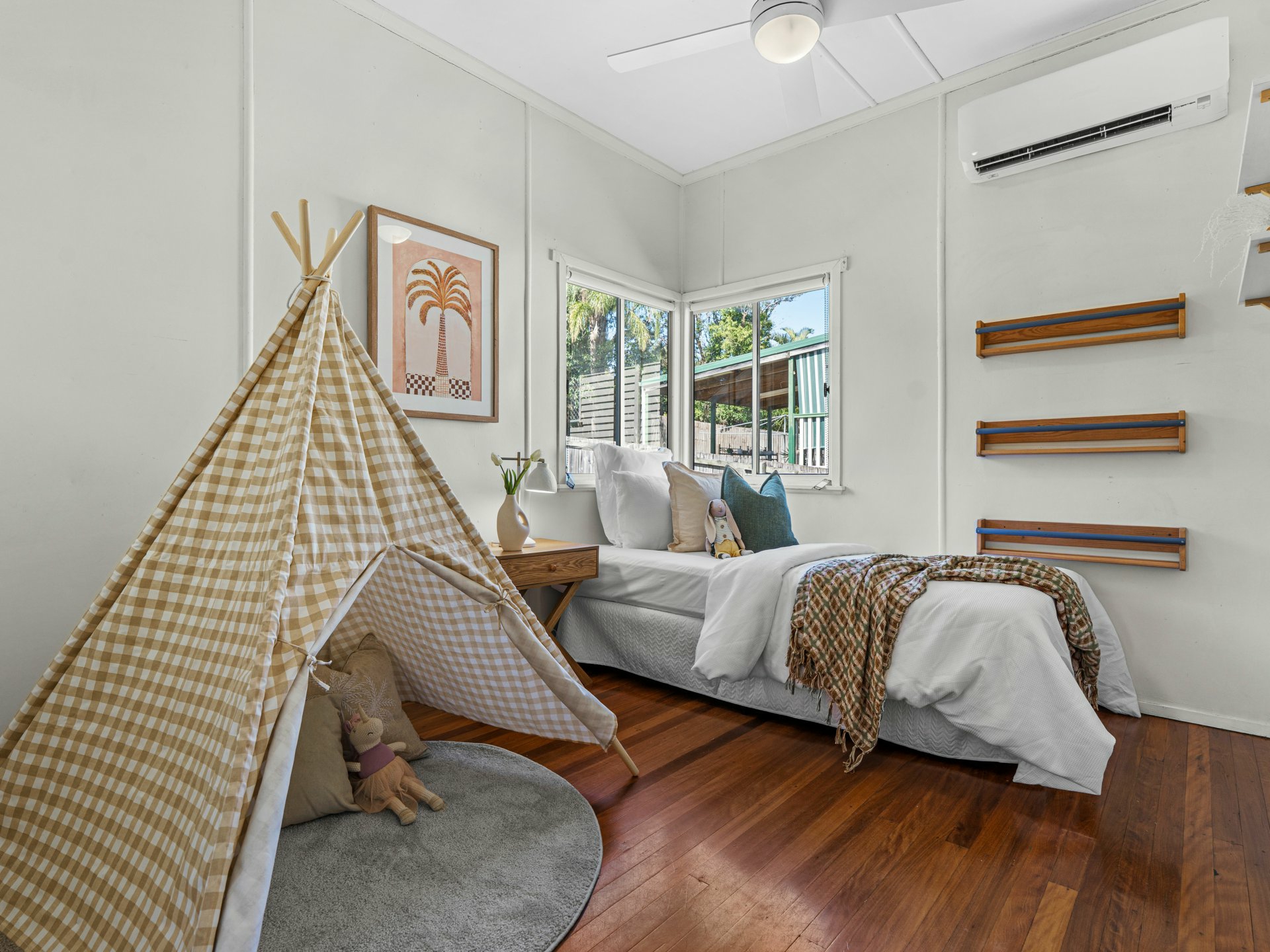 2 bedrooms with built ins & air-conditioning
