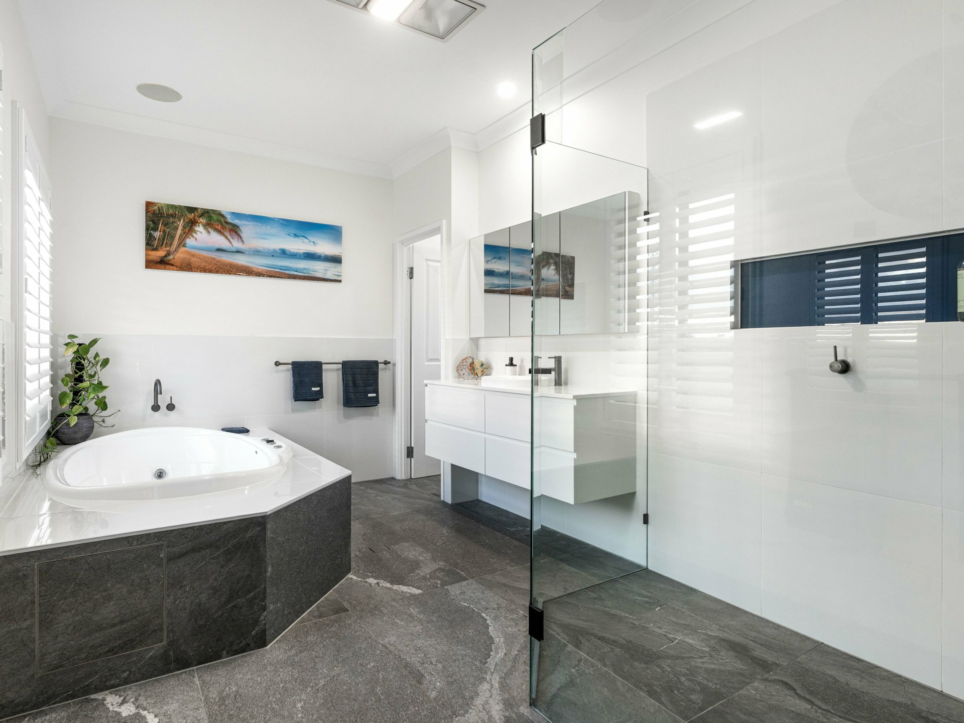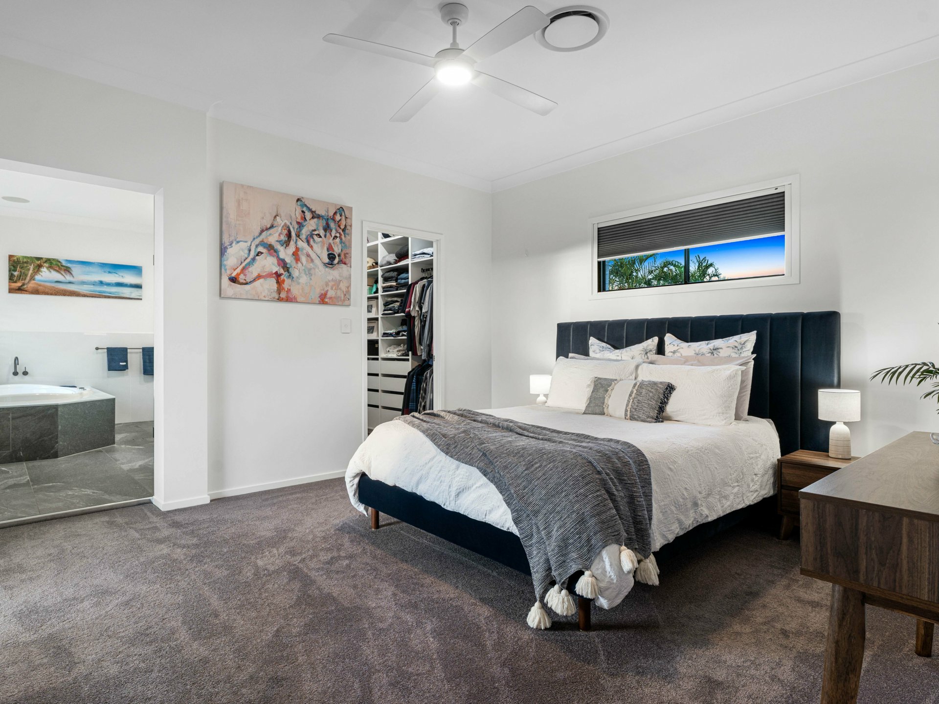 Impressive master suite with park views, walk-in robe, large ensuite with shower, spa, and separate toilet
